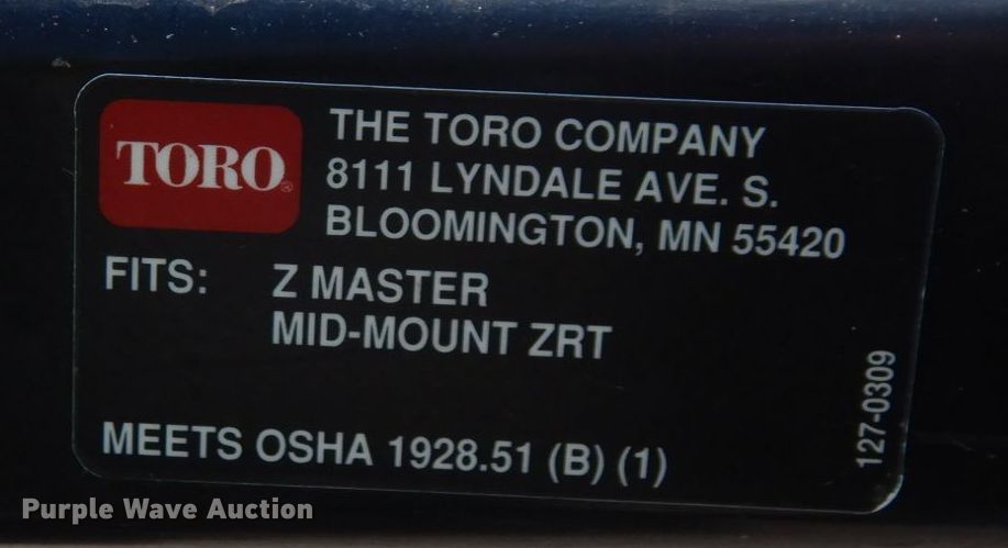 Purple Wave is selling a used Lawn Mower in Minnesota. This item is a Toro Z Master ZTR lawn mower with the following: Hours: 828 on meter, Cutting width: 52", Serial: 74266-313000122