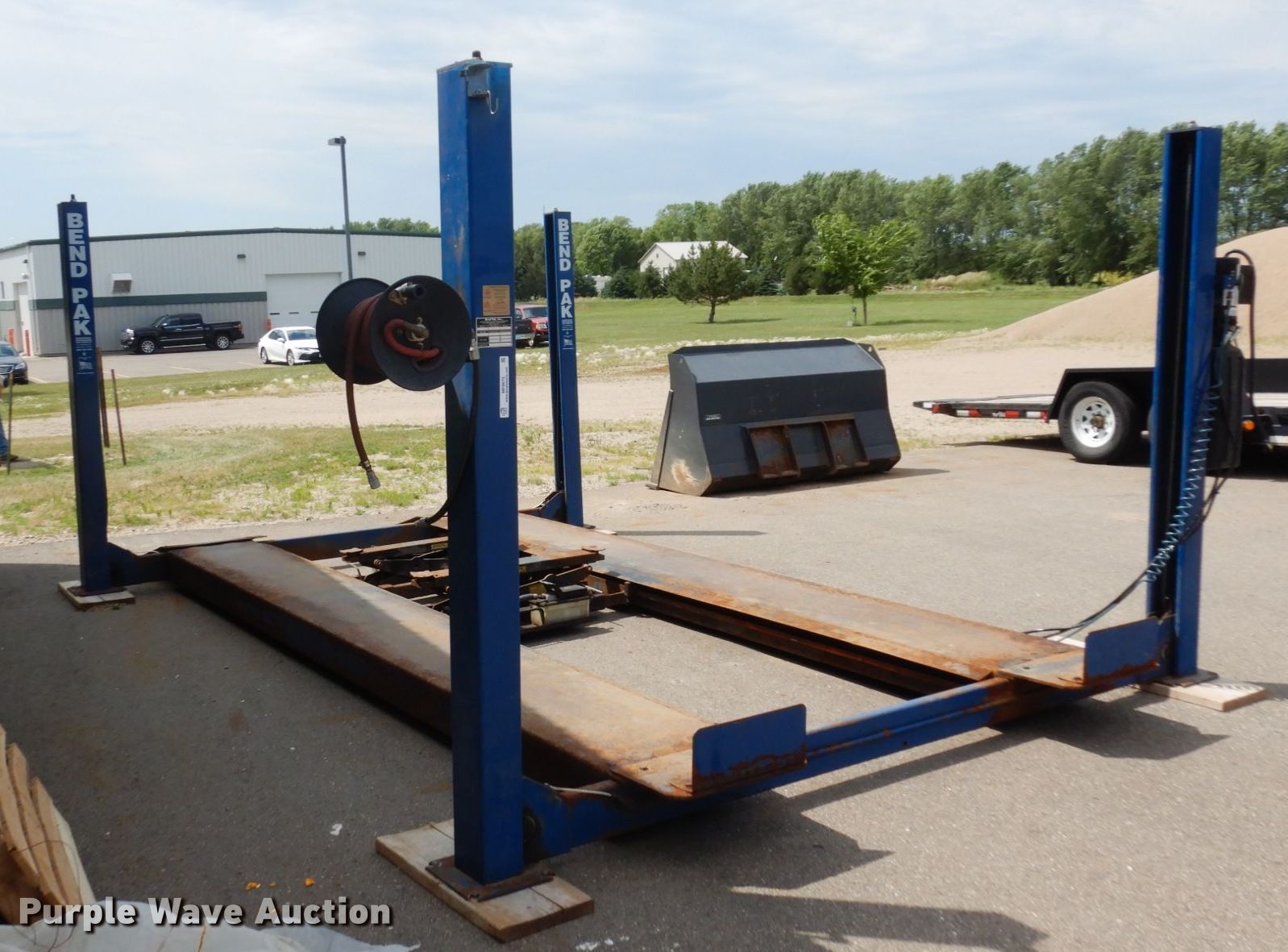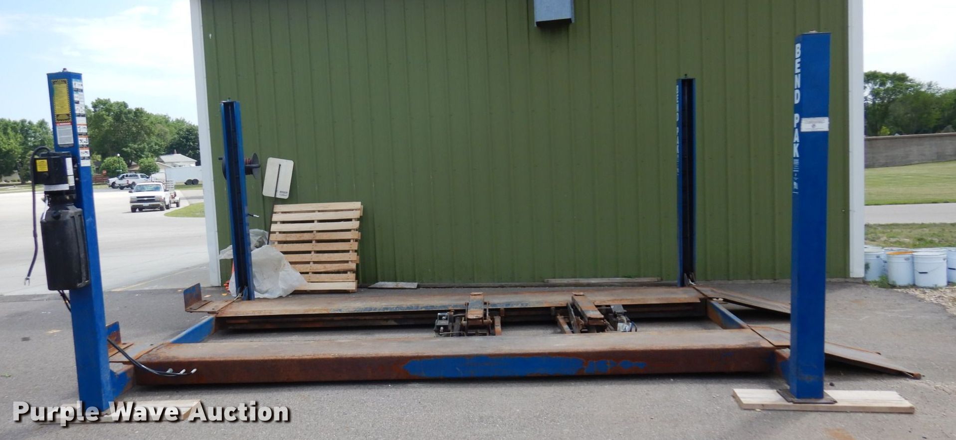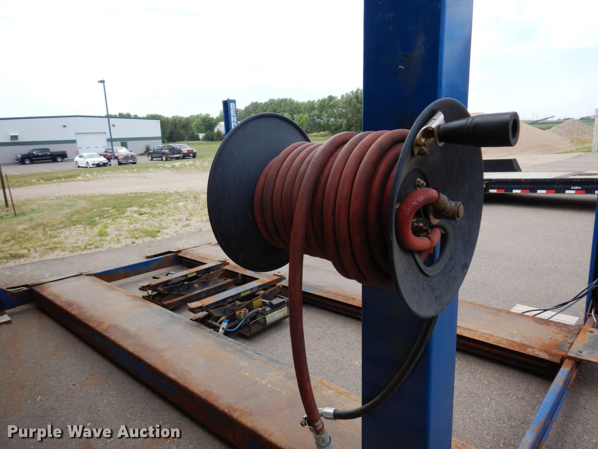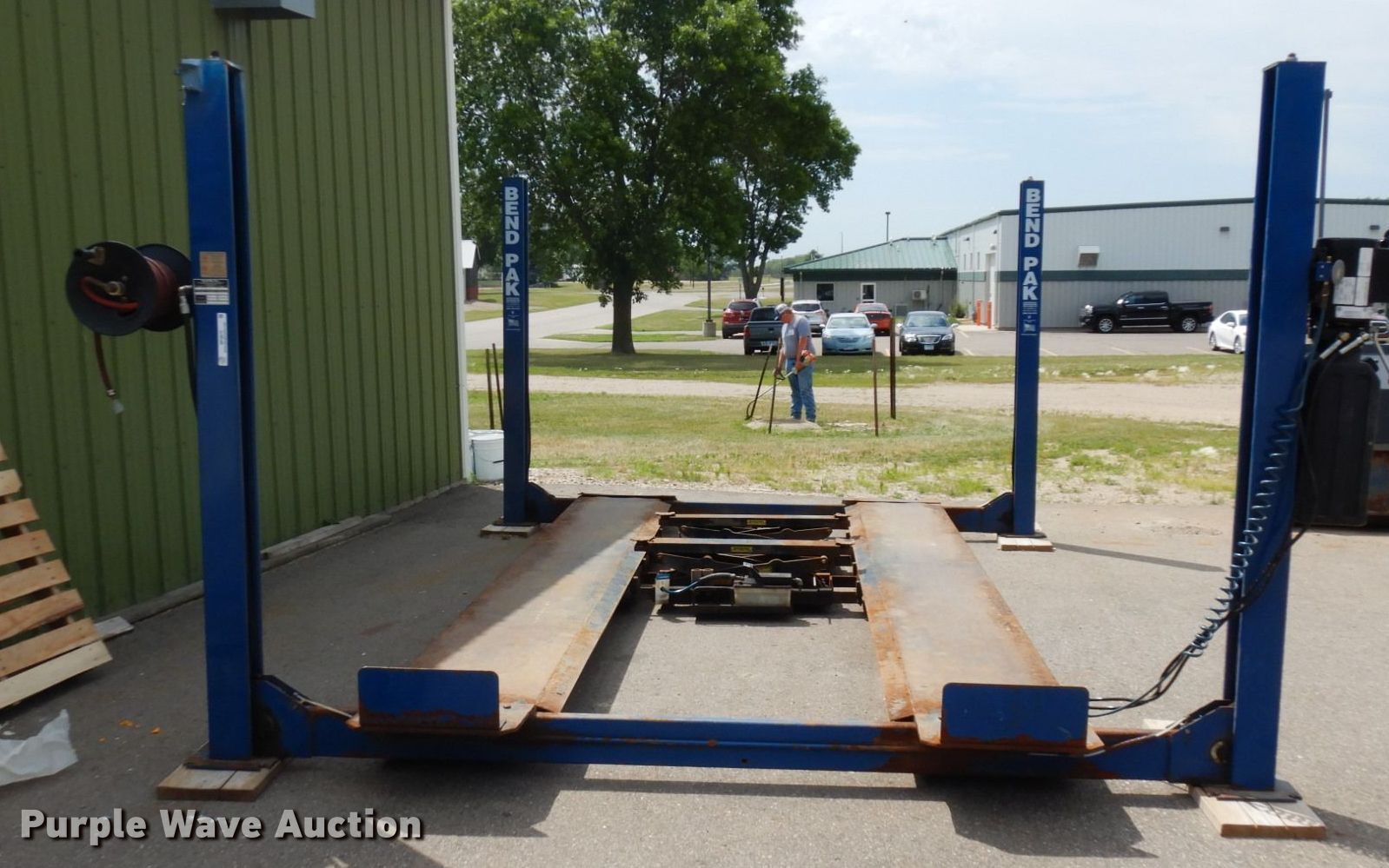 Purple Wave is selling a used Tools in Minnesota. This item is a 2004 Bend Pak HD-12SS four post automotive lift with the following: 12,000 lbs capacity, 220V, 18 amps, Hose reel, Pneumatic center sliding jacks, Serial: 50522