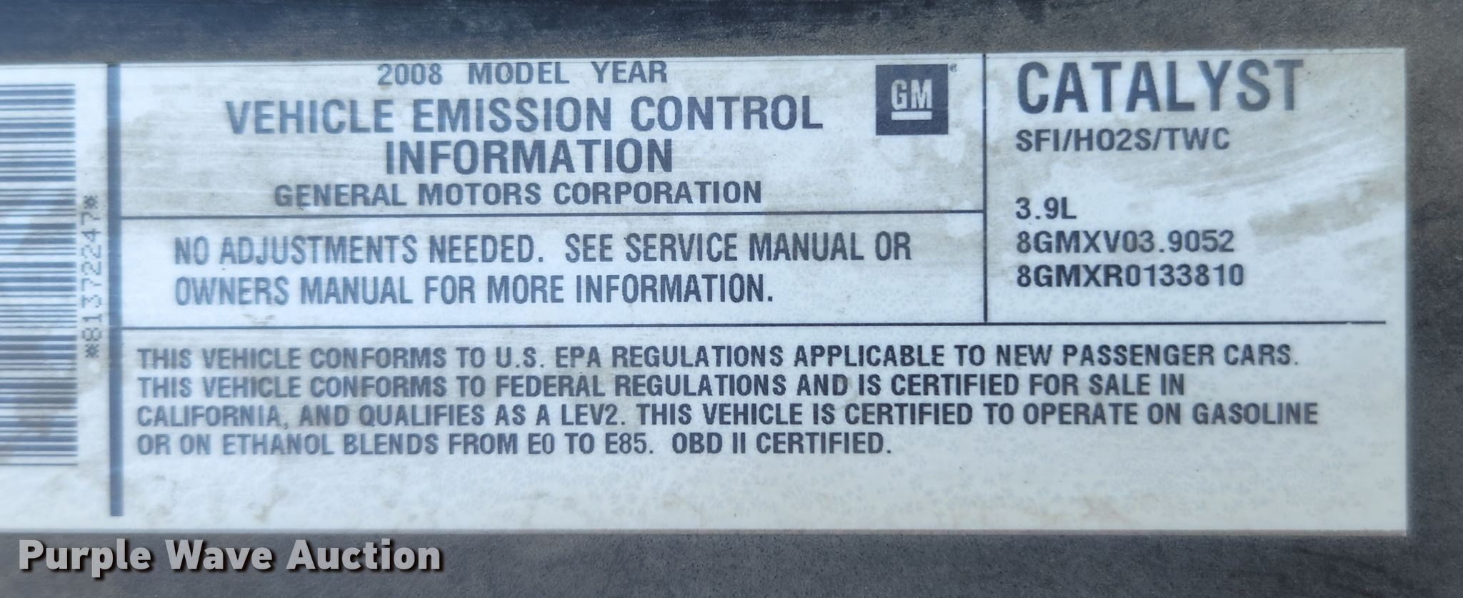 2008 Chevrolet Impala Police. Miles: 76,186 on odometer, VIN: 2G1WS583581372247. Engine Displacement: 3.9L V6 OHV, Cylinders: 6, Fuel type: Gas. Transmission Automatic. Interior AC, Heat, Seat: Power driver, Power passenger, Power windows, Power locks, Cruise control. Tires Size: 225/60R16. Notes CB radio not included, will be removed prior to auction. Missouri title. Franklin County, MO. 400 East Locust Street Room 203. Union, MO 63084