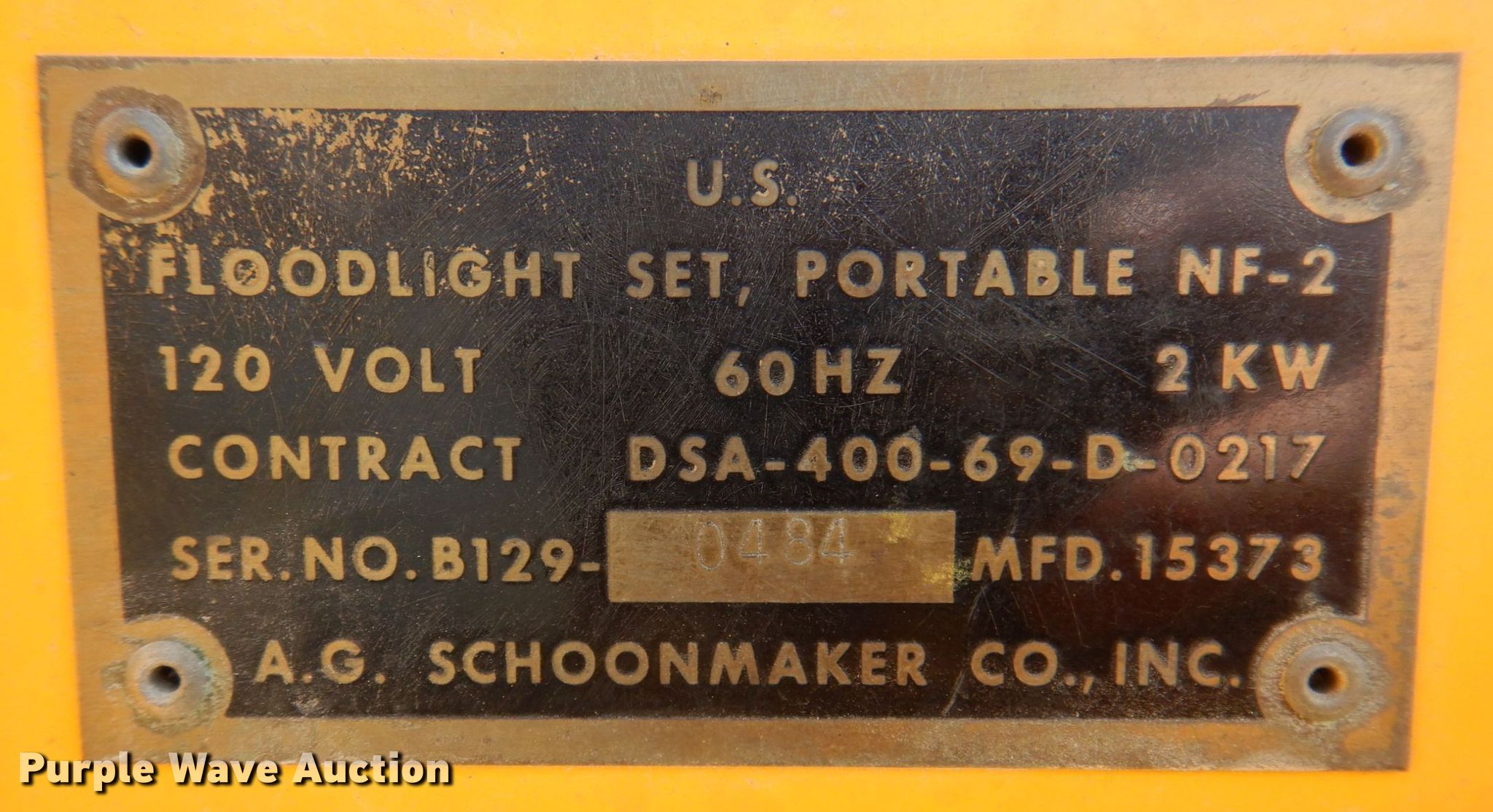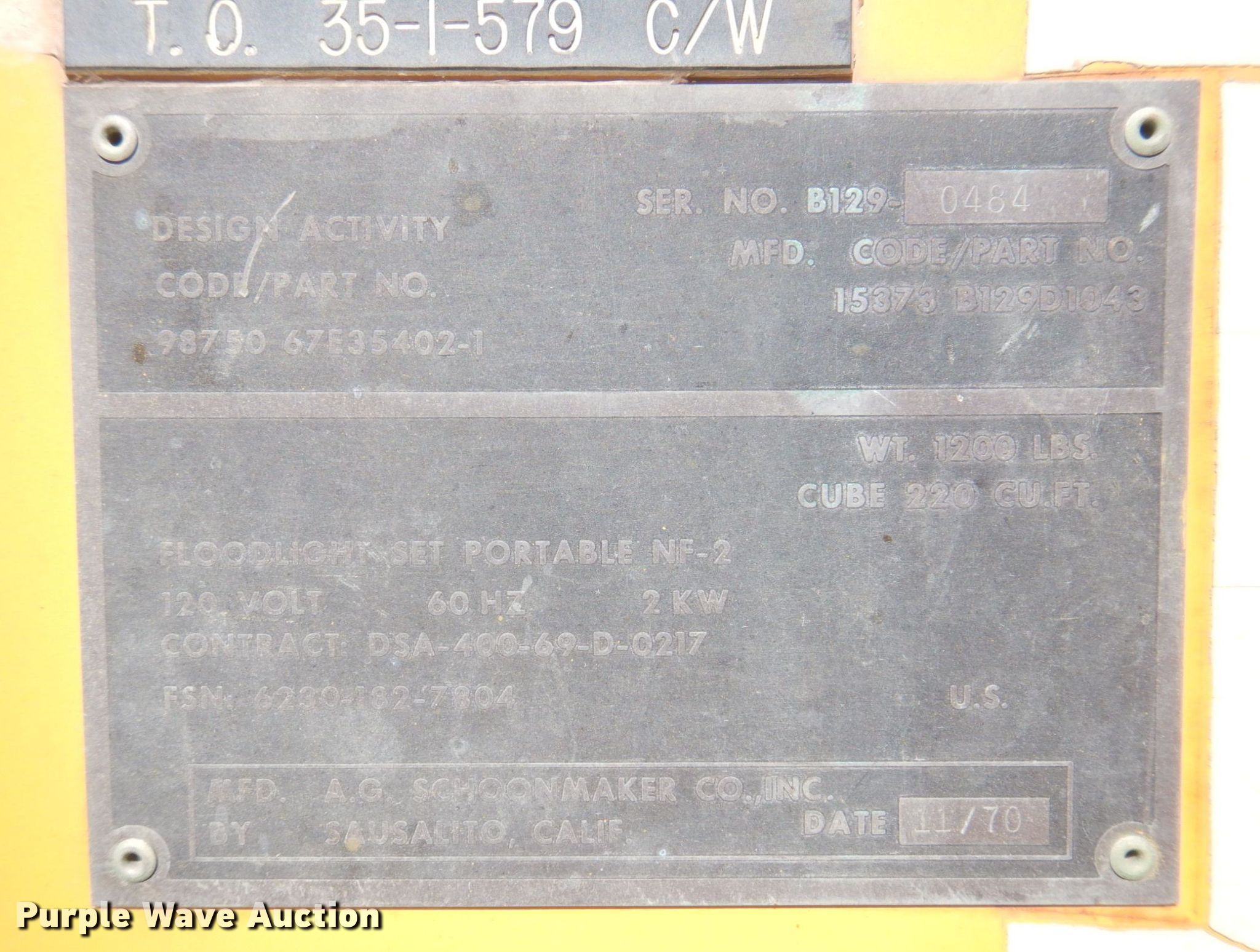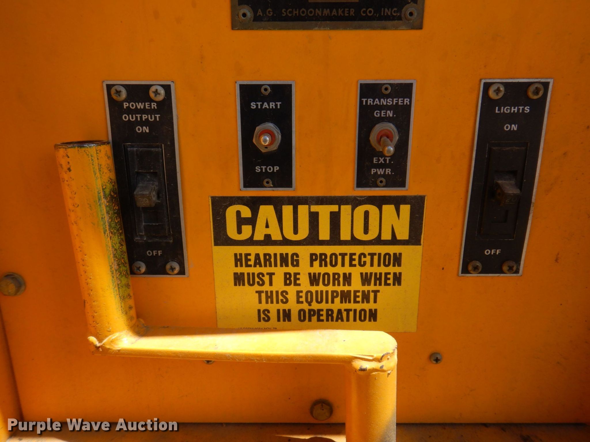 Purple Wave is selling a used Light Plant in Missouri. This item is a 1970 A.G. Schoonmaker light plant with the following: Hours: 106 on meter, Serial: 0484