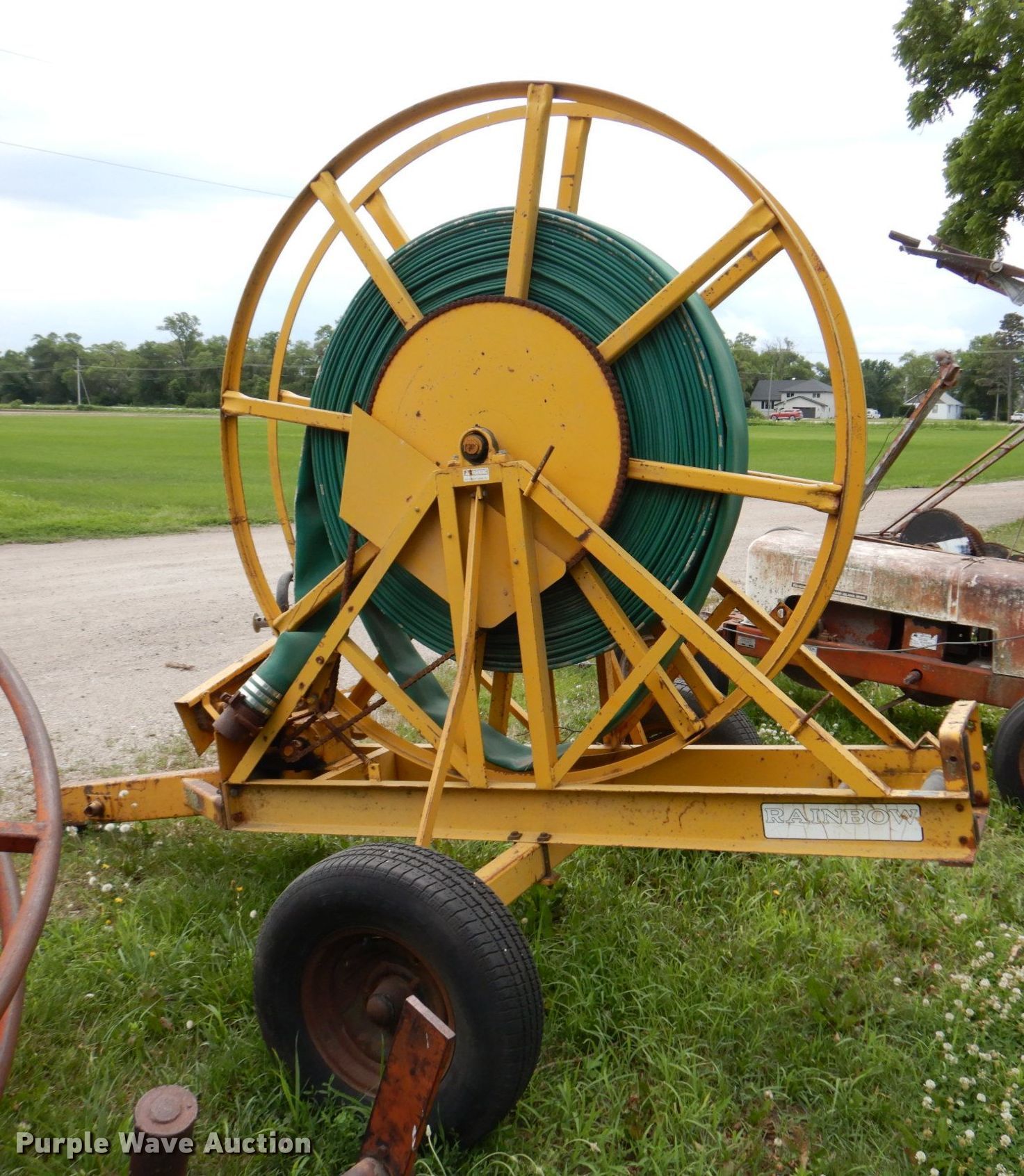 Purple Wave is selling a used Irrigation Equip. Attach. in Nebraska. This item is a Rainbow irrigation gun with hose reel trailer with the following: Rainbow gun, Model: 550, Serial: 5160, 6" inlet, Tires: 7.50-14, One tire flat,, Rainbow hose reel, Model: 2700, Serial: 3588, Hose reel diameter 76", Tires: 215/75R14