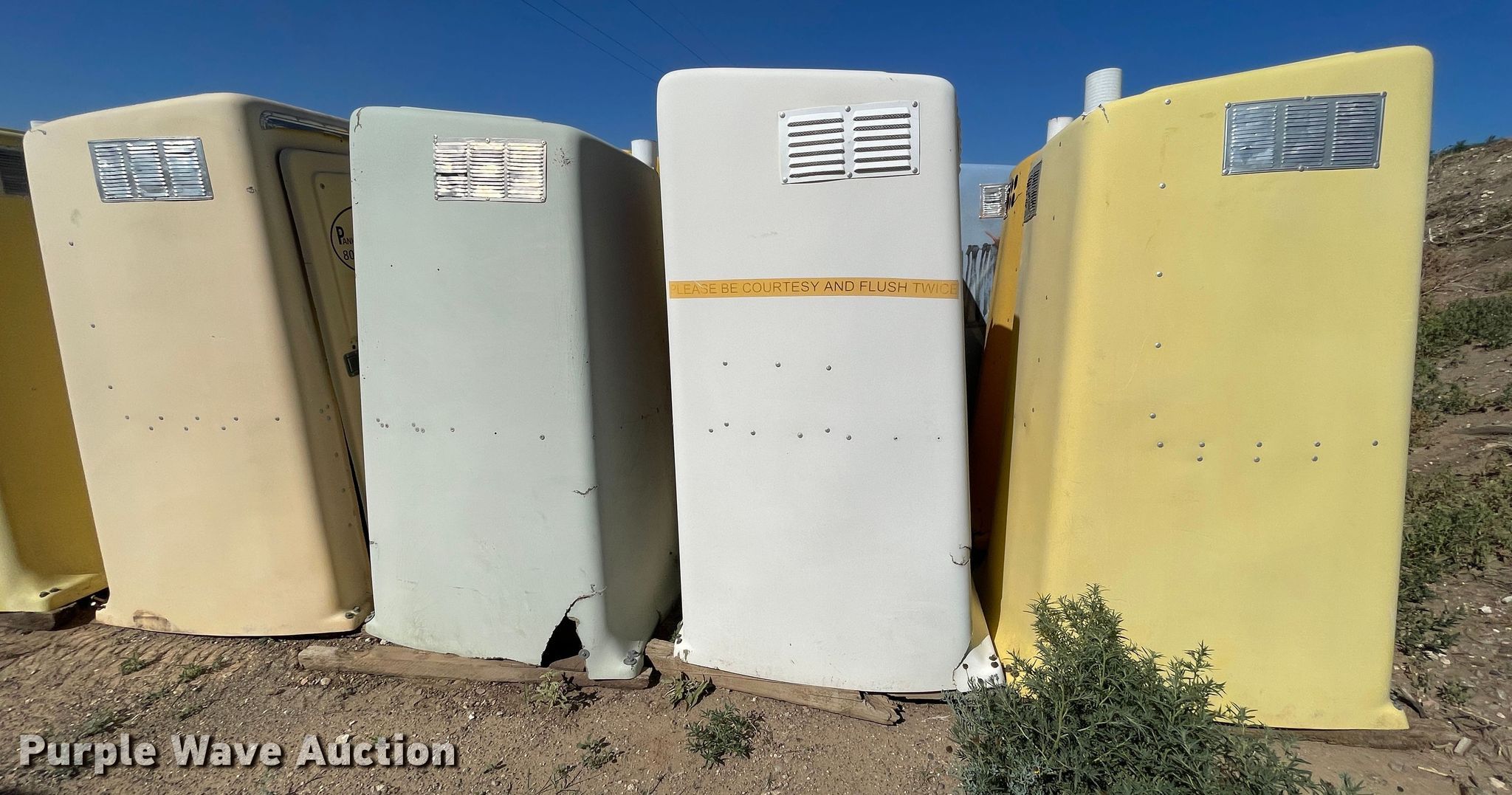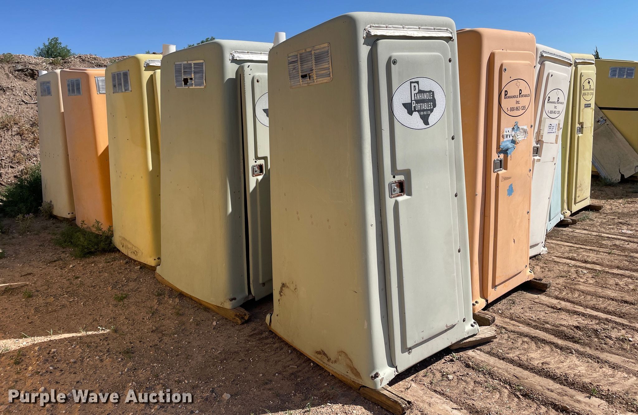Purple Wave is selling a used Other Industrial or Business in Texas. This item is a (25) portable restrooms with the following: (25) portable restrooms. Panhandle Portables Inc.. 1365 U.S. 60. Panhandle, TX 79068
