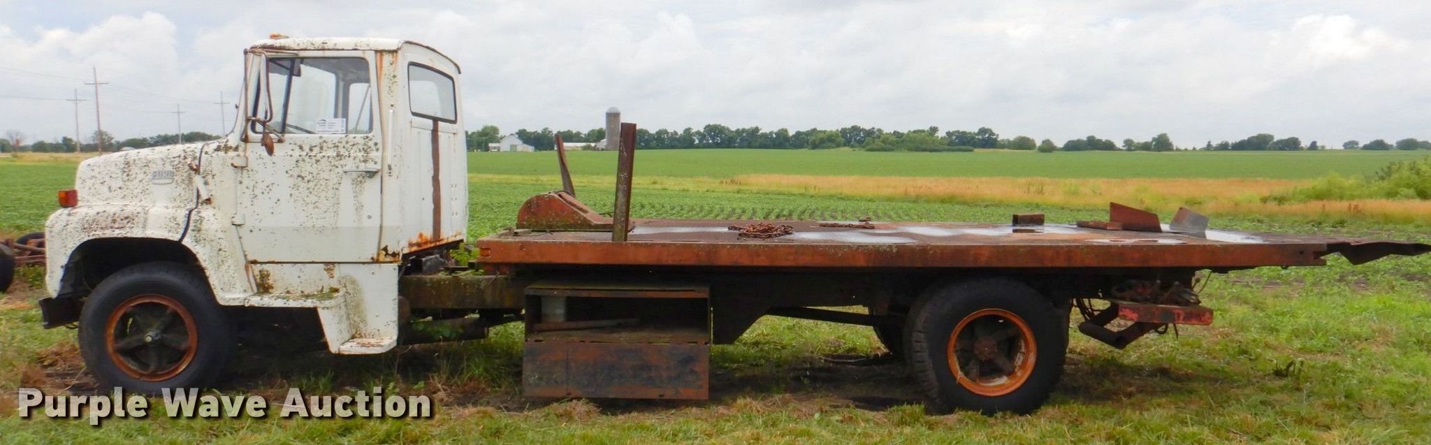 1974 Ford 700 rollback truck. Miles: 70,050 on odometer, VIN: N70EVT89355. Engine No engine. Transmission No transmission. Chassis Axles: Single, Suspension: Spring, Brakes: Hydraulic. Features Rollback bed 16' 6" L x 96" W, Winch. Tires Size: 9.00-20. Notes Non-operational unit. Kansas title. Mileage has not been verified. Exempt will be written in the odometer disclosure on the title. Title distribution may be delayed up to 14 days from verification of funds. Stricker Farms. 18150 Cedar Niles Road. Gardner, KS 66030