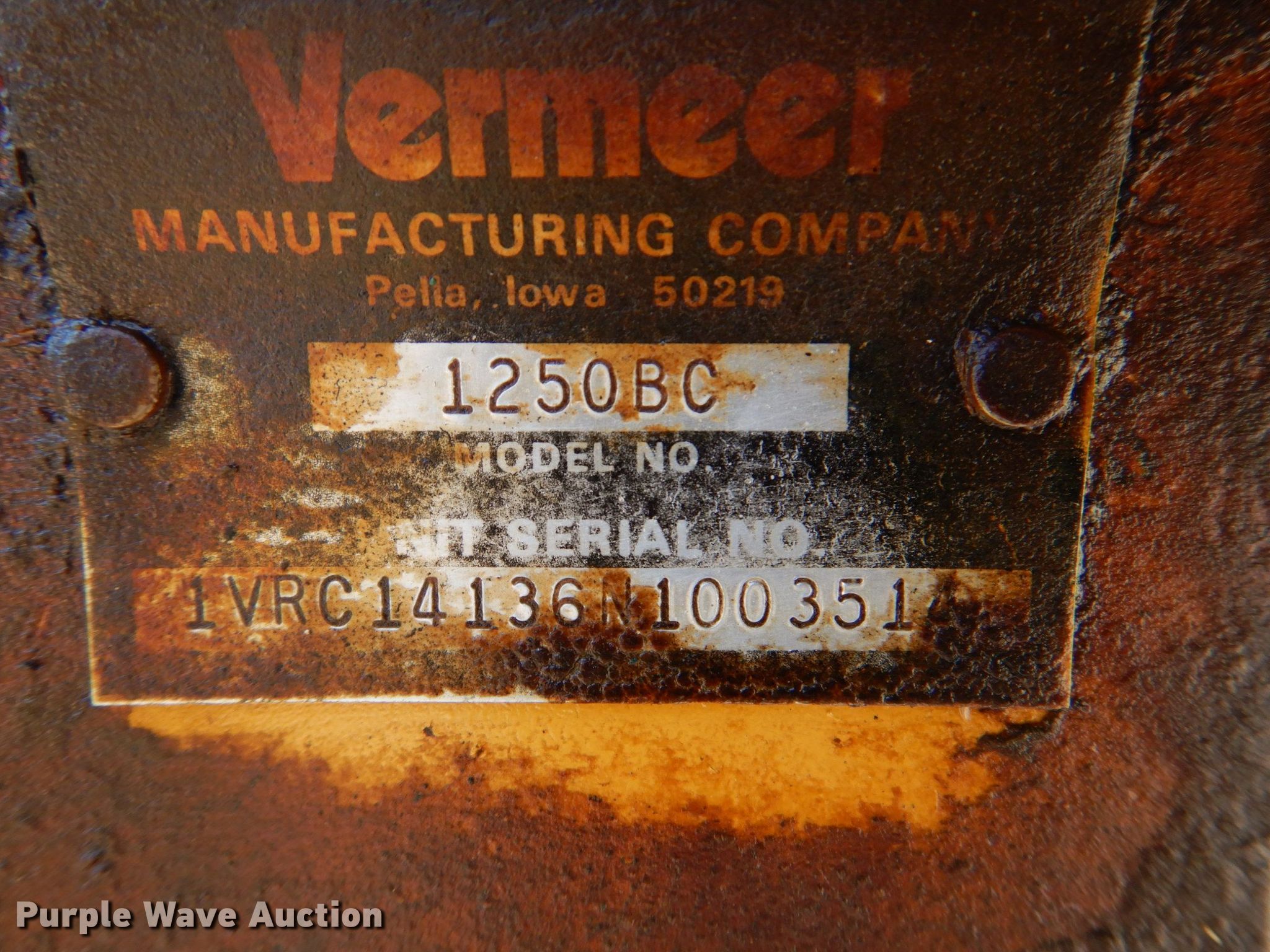 Purple Wave is selling a used Wood Chipper or Stump Grinder in Texas. This item is a 1992 Vermeer 1250BC wood chipper with the following: Hours: 2,006 on meter, Serial: 1VRC14136N1003514