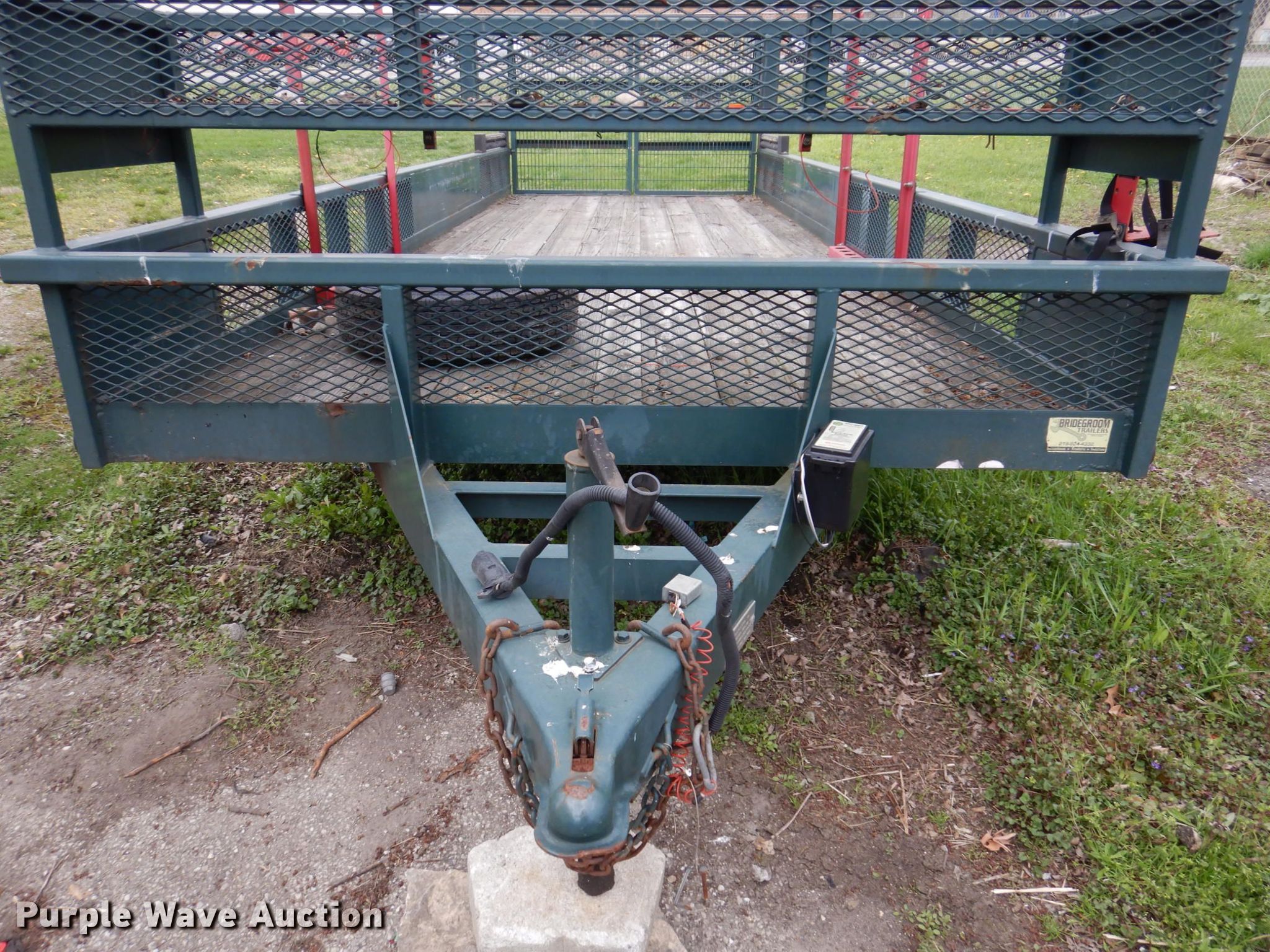 2011 Bridegroom Service Inc equipment trailer. VIN: BS104201120GR0467. Dimensions Overall: 24' L x 86" W, Deck: 20' 1" L x 79" W, Ramps: Manual Length: 53". Features Deck type: Wood. Chassis Ball hitch: 2 5/16", Landing gear: Single, Suspension: Spring, Brakes: Electric, Axles: Tandem, GVWR: 7,000 lbs. Tires Steel wheels, Size: 205/75R15. Indiana title. McVea's Landscaping and Garden Center, Inc. 255 E 61st Ave. Merrillville, IN 46410