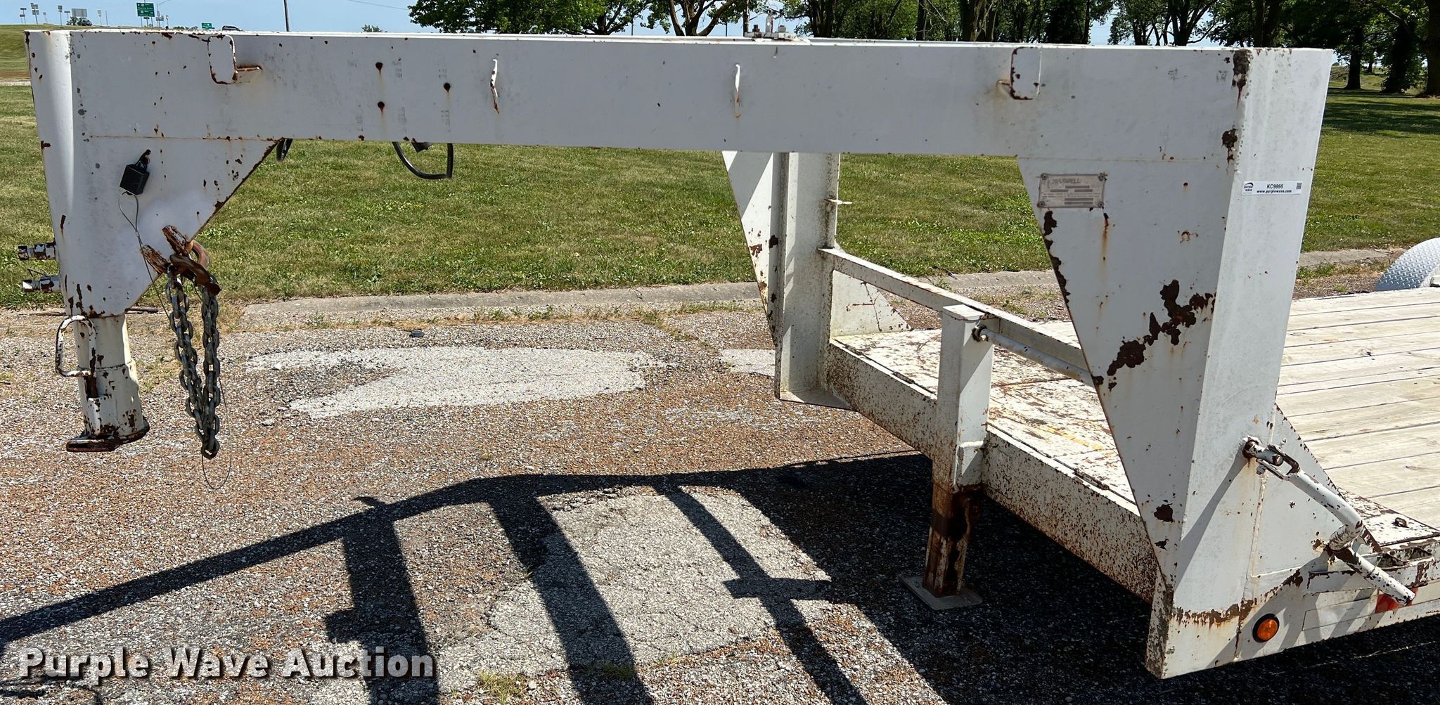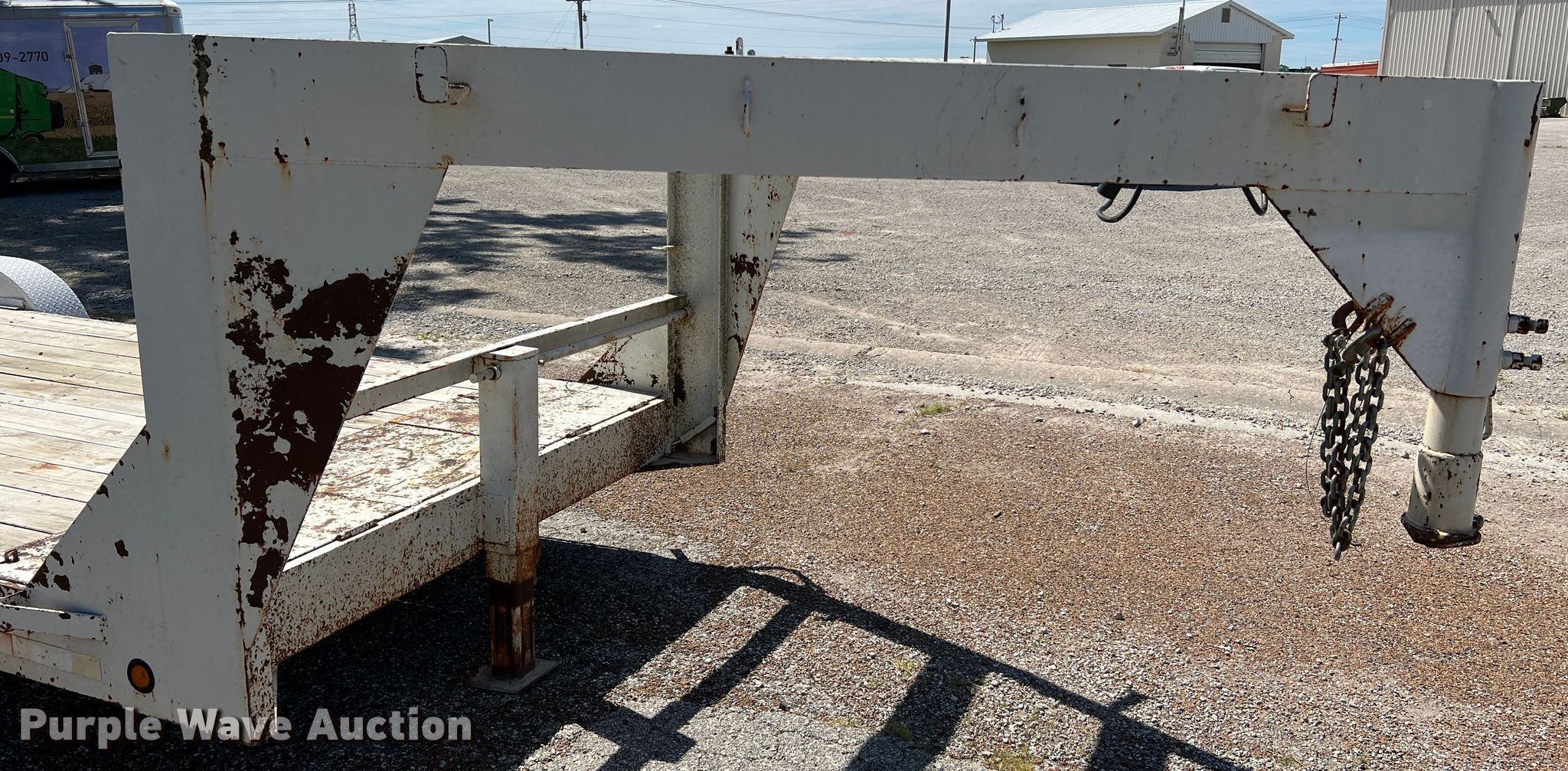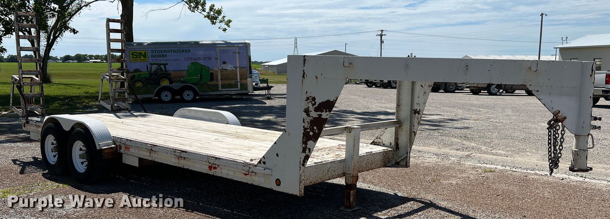 1994 Maxwell equipment trailer. VIN: 4MPUG2024R1001044. Dimensions Overall: 30' L x 101" W, Deck: 20' 2" L x 82" W, Ramps: Manual Length: 72". Features Deck type: Wood. Chassis Hitch: Gooseneck, Landing gear: Single, Suspension: Spring, Brakes: Electric, Axles: Tandem, GVWR: 10,400 lbs. Tires Steel wheels, Size: ST235/85R16. Notes Additional ramp 6' 8" L. Missouri title. Sydenstricker Nobbe Partners. 4803 South Clark Street. Mexico, MO 65265