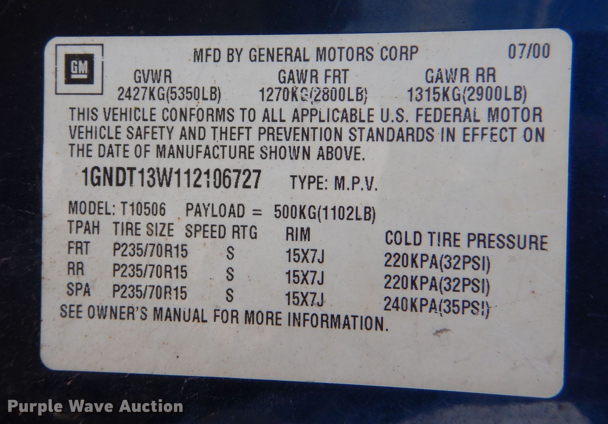 Take a look at this used 2001 Chevrolet Blazer SUV being sold on July 27th, 2022 in the SOLD! July 27 Vehicles and Equipment Auction made by Chevrolet. Take a look at all of the item information below or take a look at similar auctions for Passenger Vehicles.