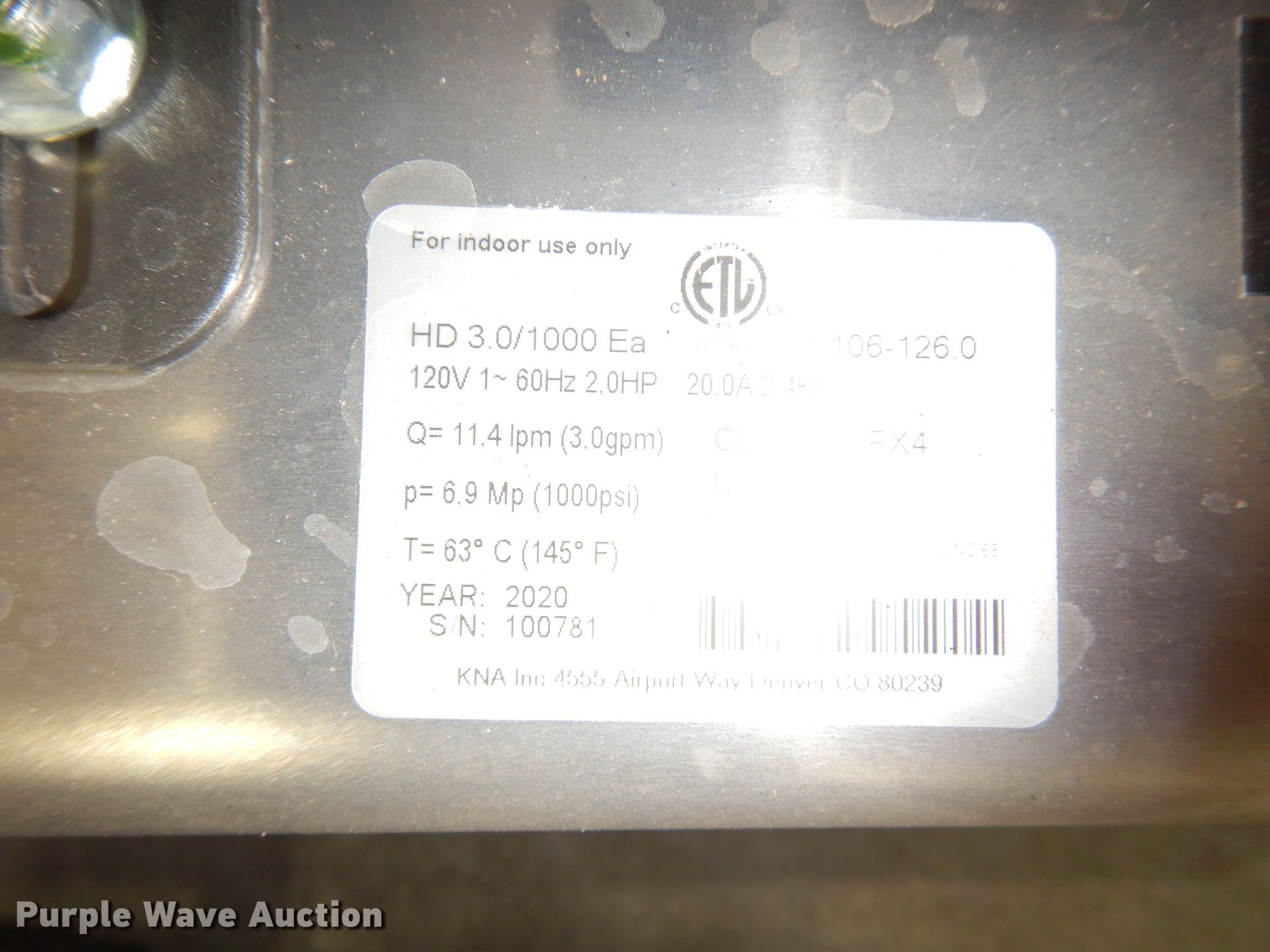 Purple Wave is selling a used Pressure Washer in Colorado. This item is a 2020 Hotsy LF2830S pressure washer with the following: 50'L hose, Wand, (4) nozzles, 3 GPM, 120V, 2HP, Serial: 100781