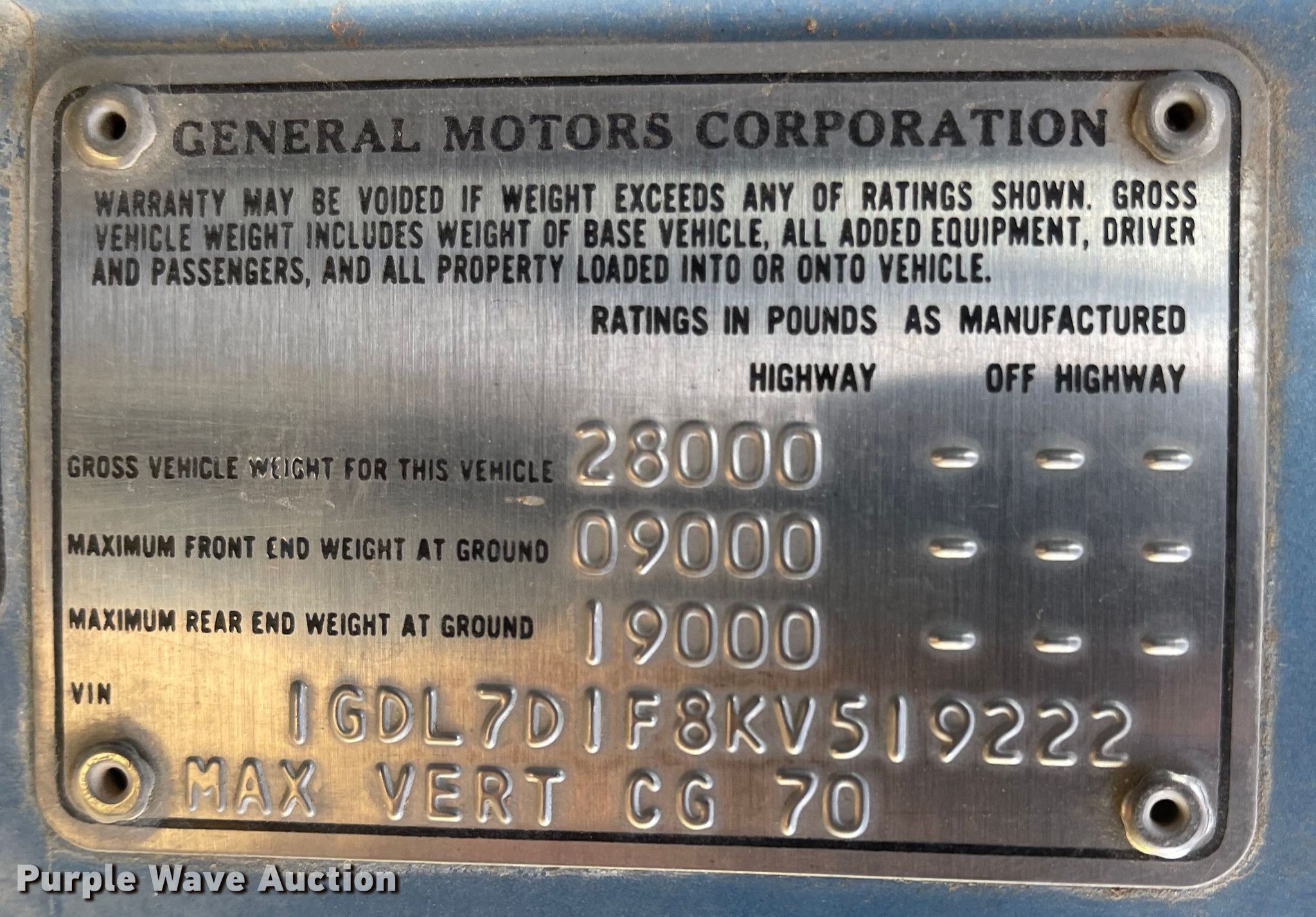 - VIN: 1GDL7D1F8KV519222