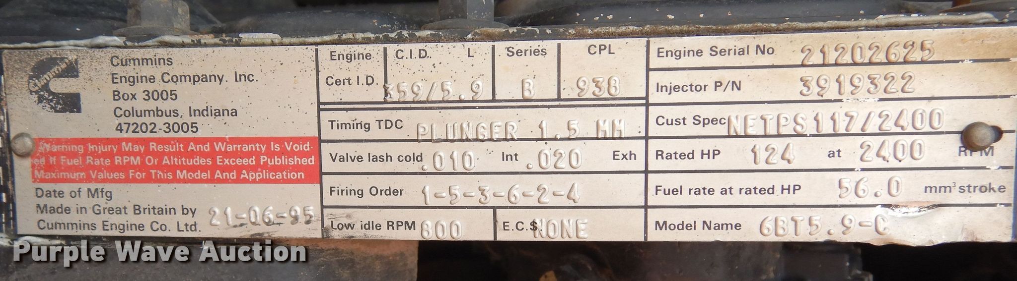 1996 Samsung SL120-2 wheel loader. Hours: 6,193 on meter, Serial: LBY0309. Engine Cummins, Displacement: 5.9L, Cylinders: 6, Fuel type: Diesel. Transmission Powershift, 4F - 3R. Operators station Enclosed cab, AC, Heat, Bucket controls: Two-lever. Features Auxiliary hydraulics: Front, Quick coupler: Hydraulic, Bucket Samsung, Capacity: 2.25 cu.yd., Width: 101", Cutting edge: Bolt-on. Tires Size: 17.5-25L-2. Notes Windshield will be replaced prior to auction, Glass cracked, Unknown operating condition of AC. Hoke Transport. 1125 D St. Gering, NE 69341