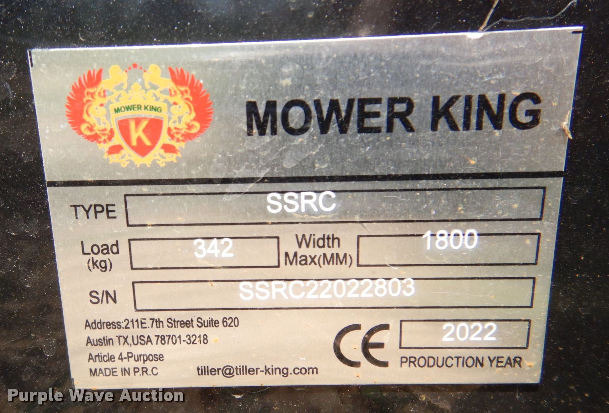 Purple Wave is selling a used Skid Steer Attach. in Texas. This item is a 2022 Mower King skid steer rotary mower with the following: Serial: SSRC22022803, Width: 72", Unused