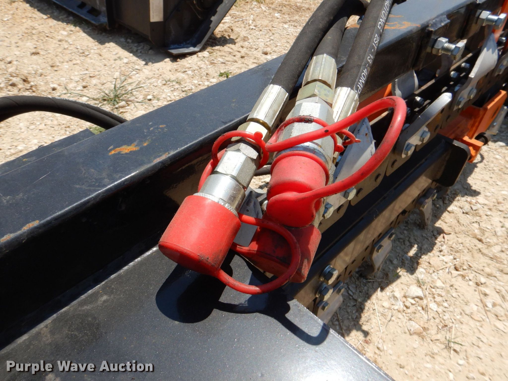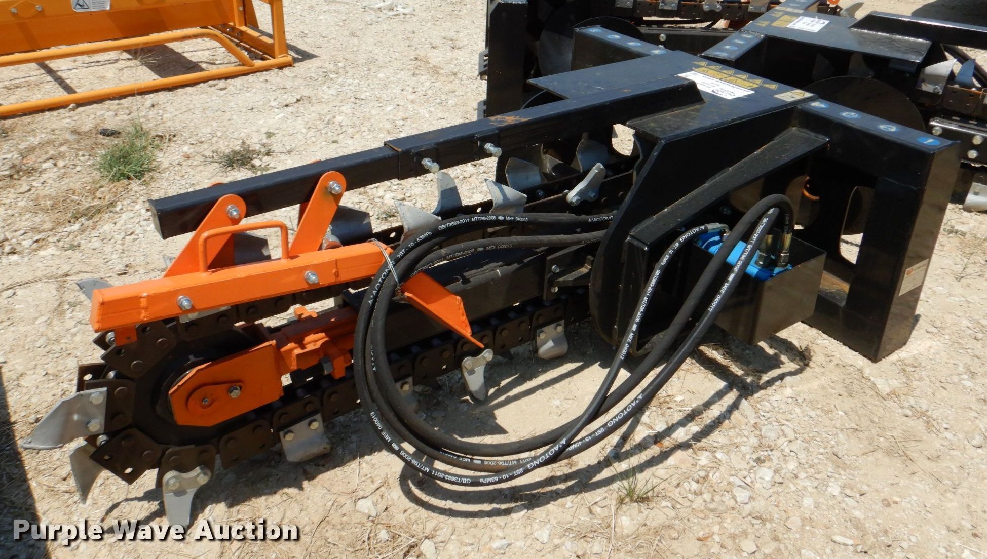 Purple Wave is selling a used Skid Steer Attach. in Texas. This item is a Mower King skid steer trencher with the following: Serial: ECSSCT7222022802, Cutting width: 6", Estimated digging depth: 48", Unused