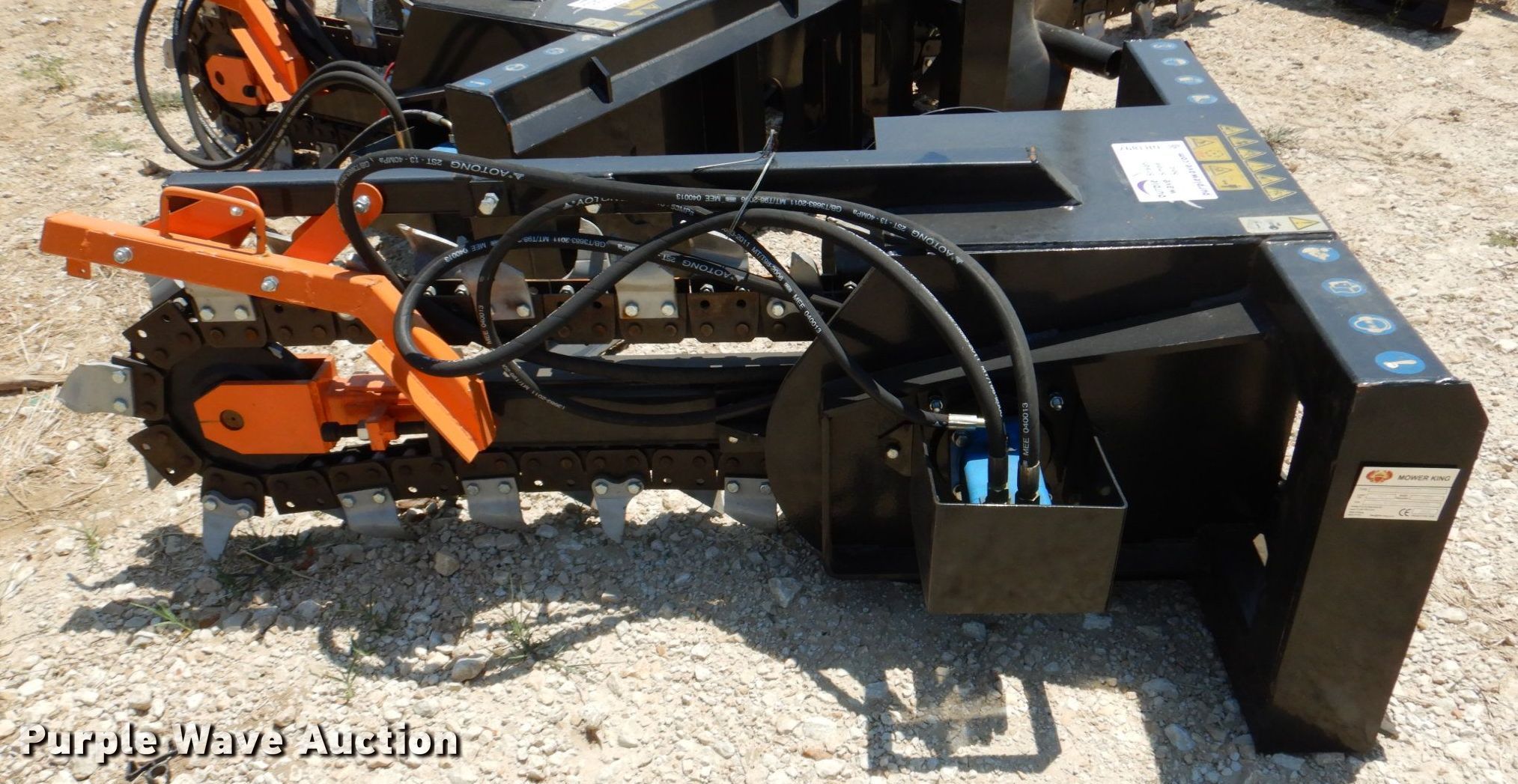 Purple Wave is selling a used Skid Steer Attach. in Texas. This item is a 2022 Mower King skid steer trencher with the following: Serial: ECSSCT7222022805, Cutting width: 6", Estimated digging depth: 48"