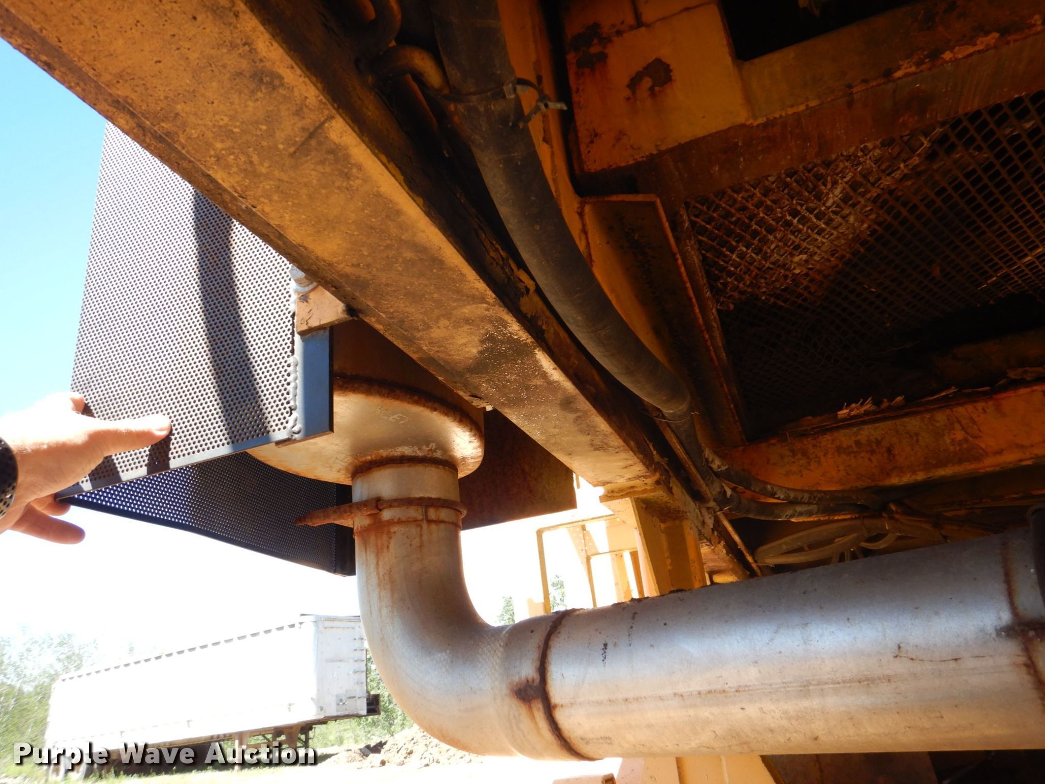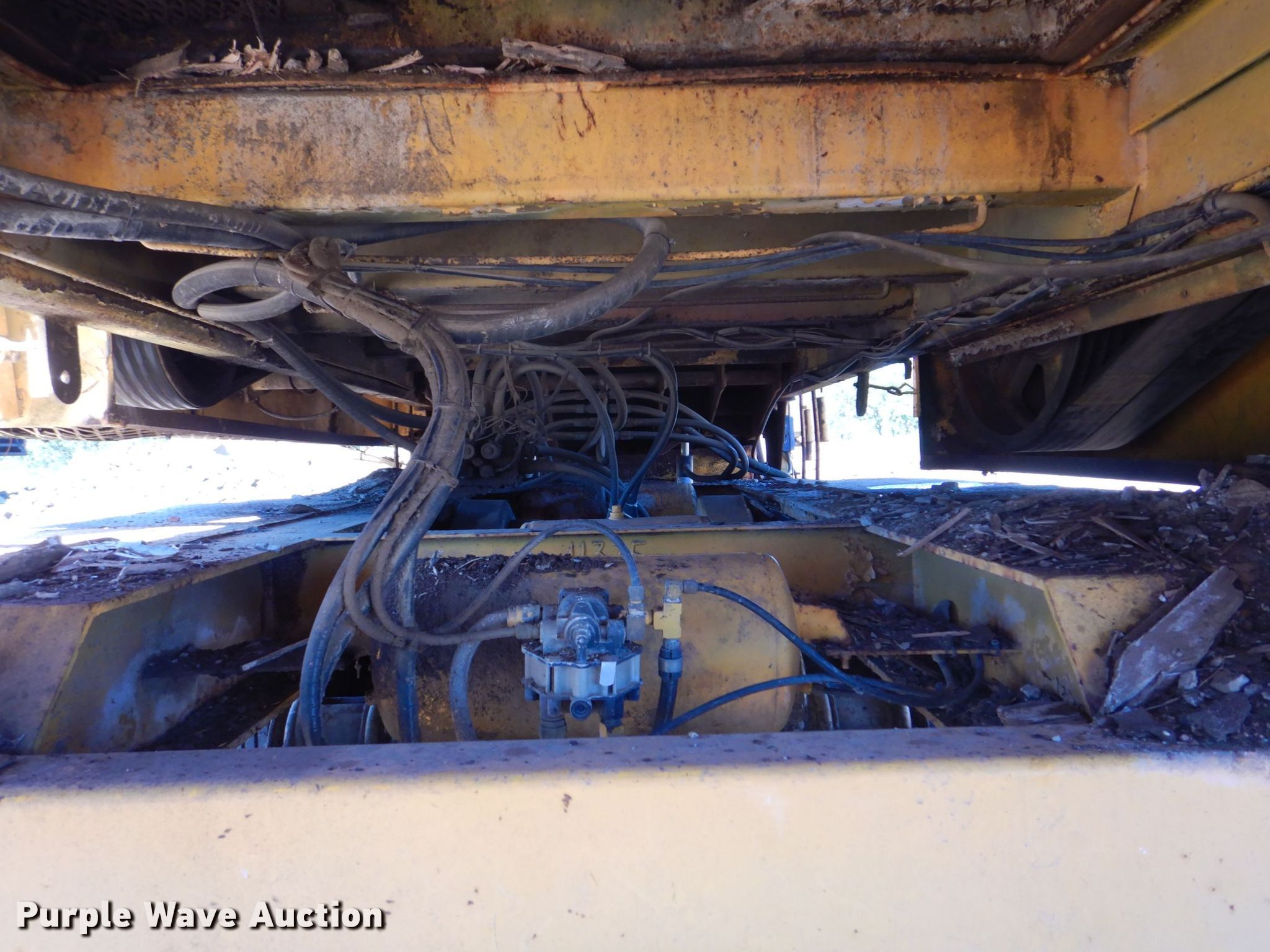 Rexworks Maxgrind 460G horizontal grinder. Serial: G40806. Engine Caterpillar 3406 , Cylinders: 6 , Fuel type: Diesel, Serial: 6TB13213. Chassis Triple axle, Air brakes, Spring suspension, Double landing gear. Features 18' L discharge , 60" W belt, 6" screen, Magnetic head pulley , Knuckle boom loader, Hopper 12' L x 7' 6" W x 4' D, Bolt on teeth, Hydraulic outriggers, Hydraulic lift cab. Tires Size: 215/75R17.5. Wiederholt Enterprises LLC. 30111 Roaster Rd. Cuba City, WI 53807