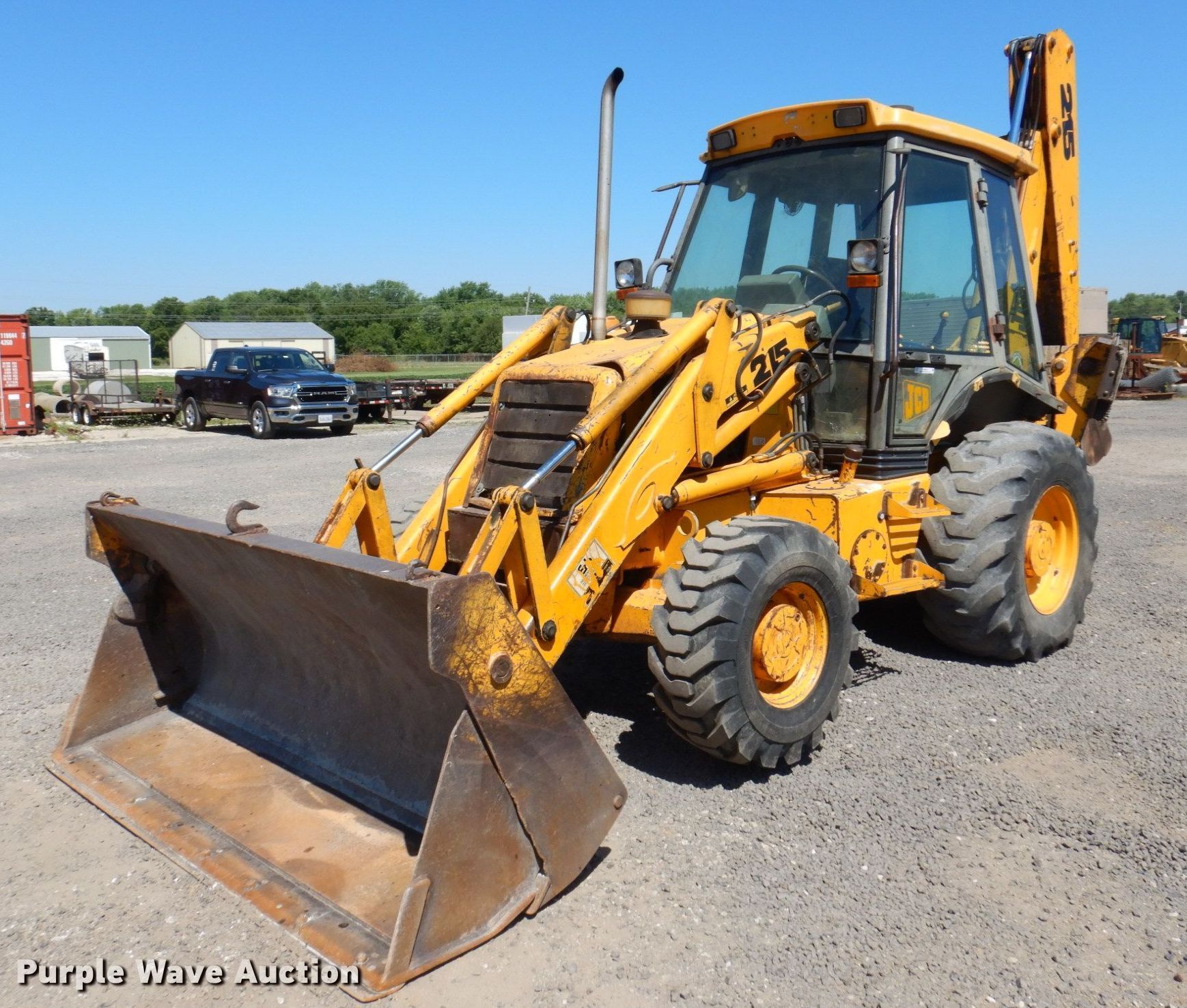 1994 JCB 215 backhoe. Hours: 2,769 on meter, Miles or hours may vary, unit still in use, Serial: 652162.Y. Engine Cylinders: 4, Fuel type: Diesel. Transmission Shuttle shift, 4F - 4R. Chassis Four wheel drive. Operators station Enclosed cab, Heat, Backhoe controls: Wobble stick / two stick. Features Loader Bucket Four-in-one, Width: 92", Backhoe Extendable stick, Auxiliary hydraulics, Bucket Width: 31", Cutting edge: Bolt-on, Teeth: 6.. Tires Front: 14-17.5, Rear: 19.5L-24. Notes Additional tire, Glass cracked, Dash warning indicator: Check alternator. Chuck Kinsel Trucking & Excavating. 1675 E Walnut St. Canton, IL 61520