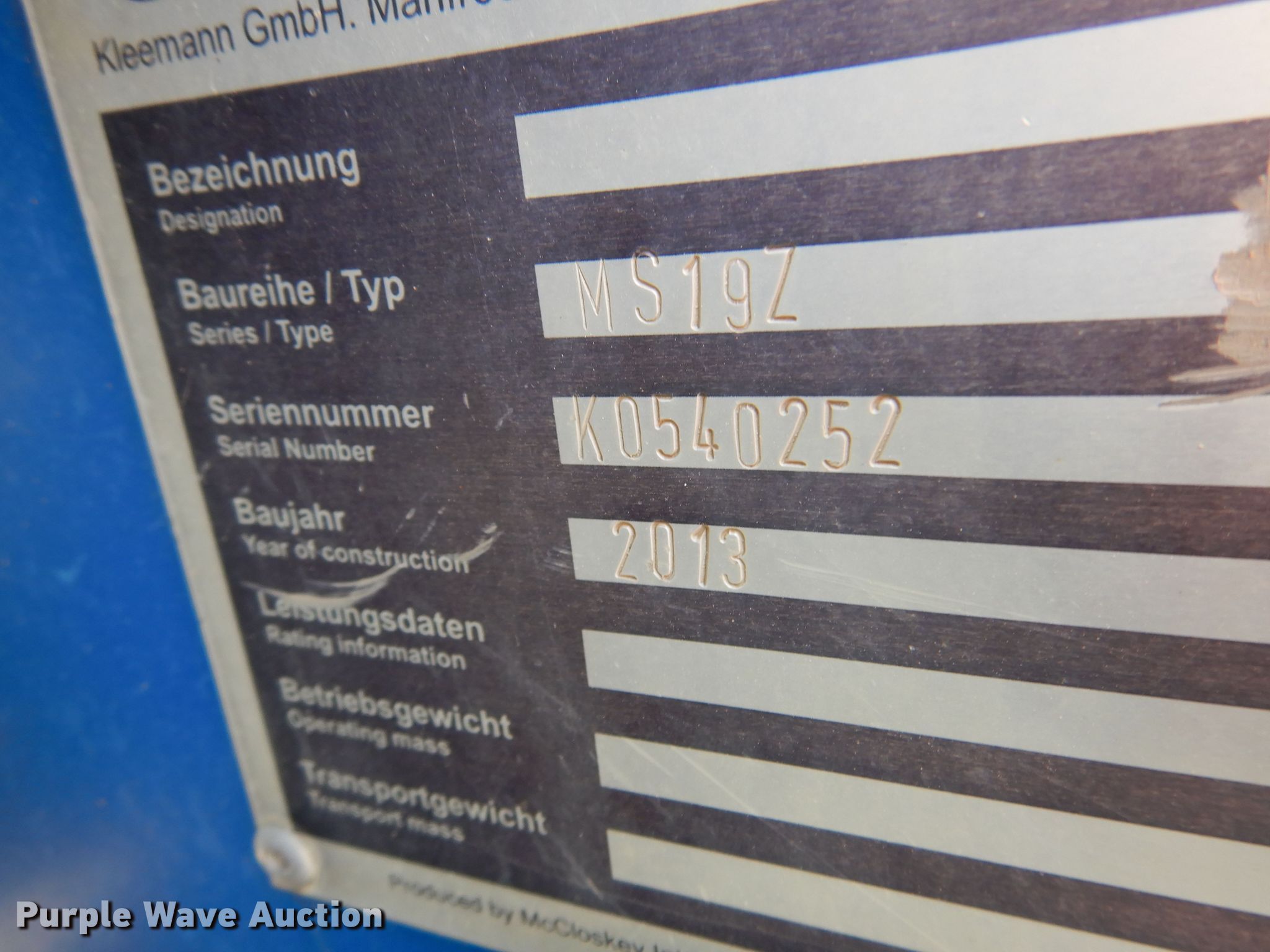 Purple Wave is selling a used Screen or Screening Plant in Kansas. This item is a 2013 Kleemann MS19Z screening plant with the following: Hours: 4,086 on meter, Serial: K0540252