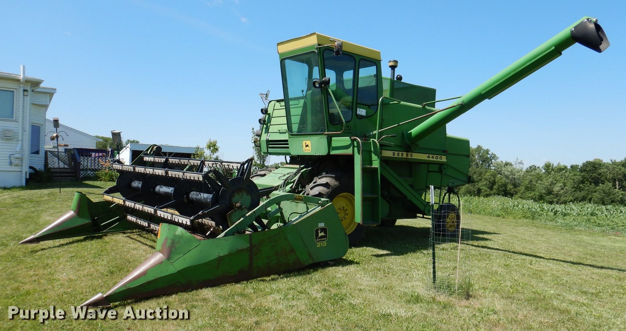 Purple Wave is selling a used Combine in Iowa. This item is a 1975 John Deere 4400 combine with the following: Engine hours: 3,829 on meter, Serial: 153977H