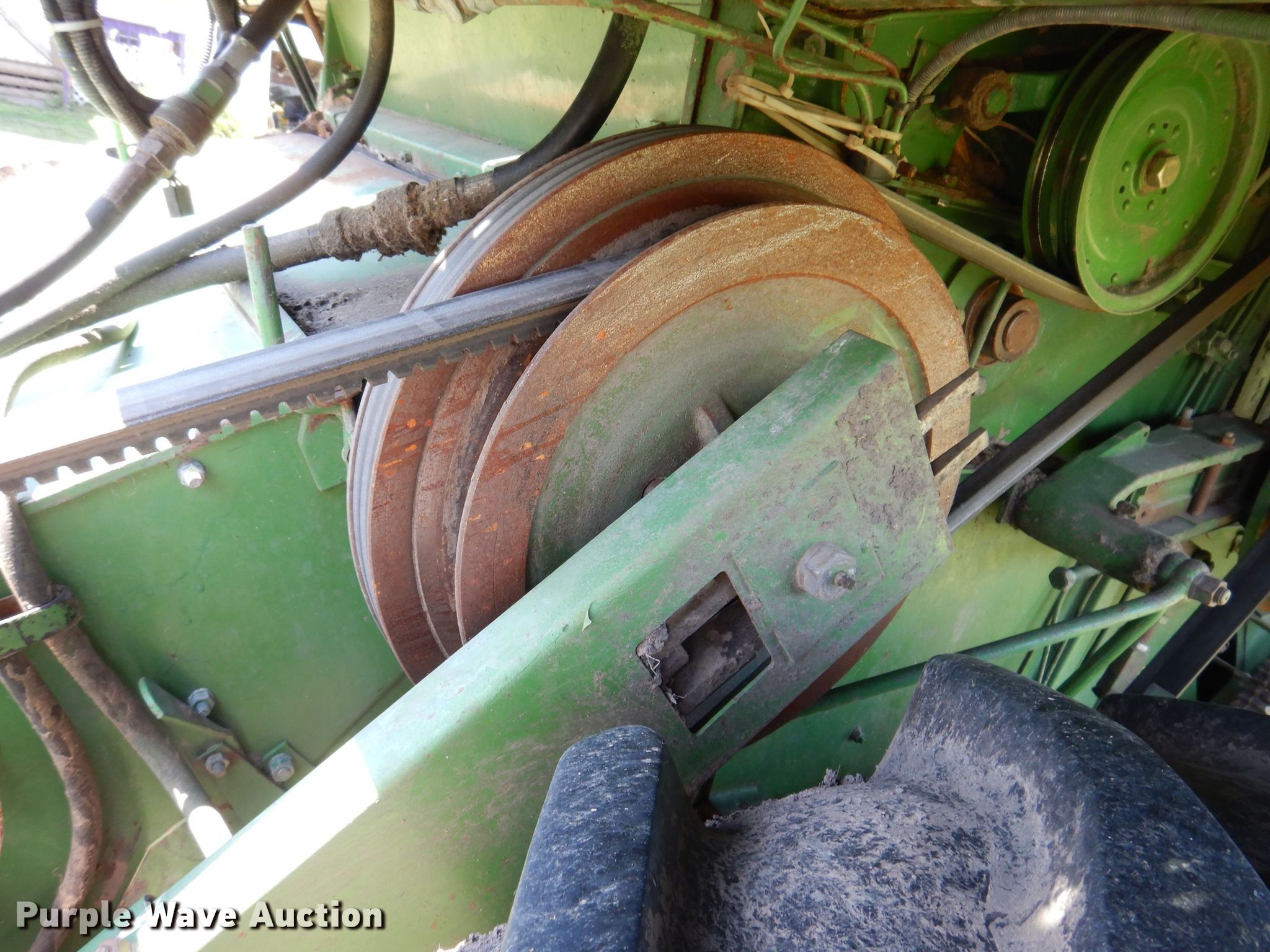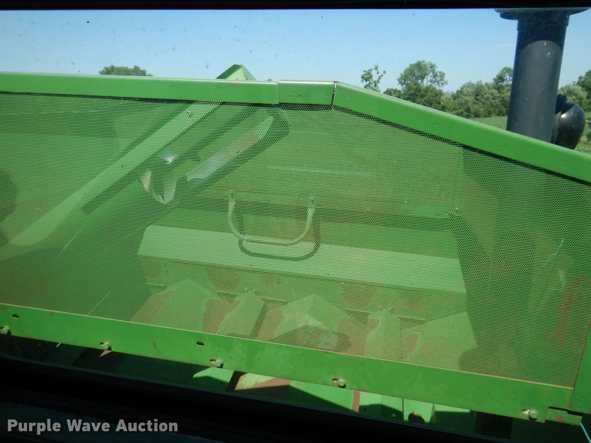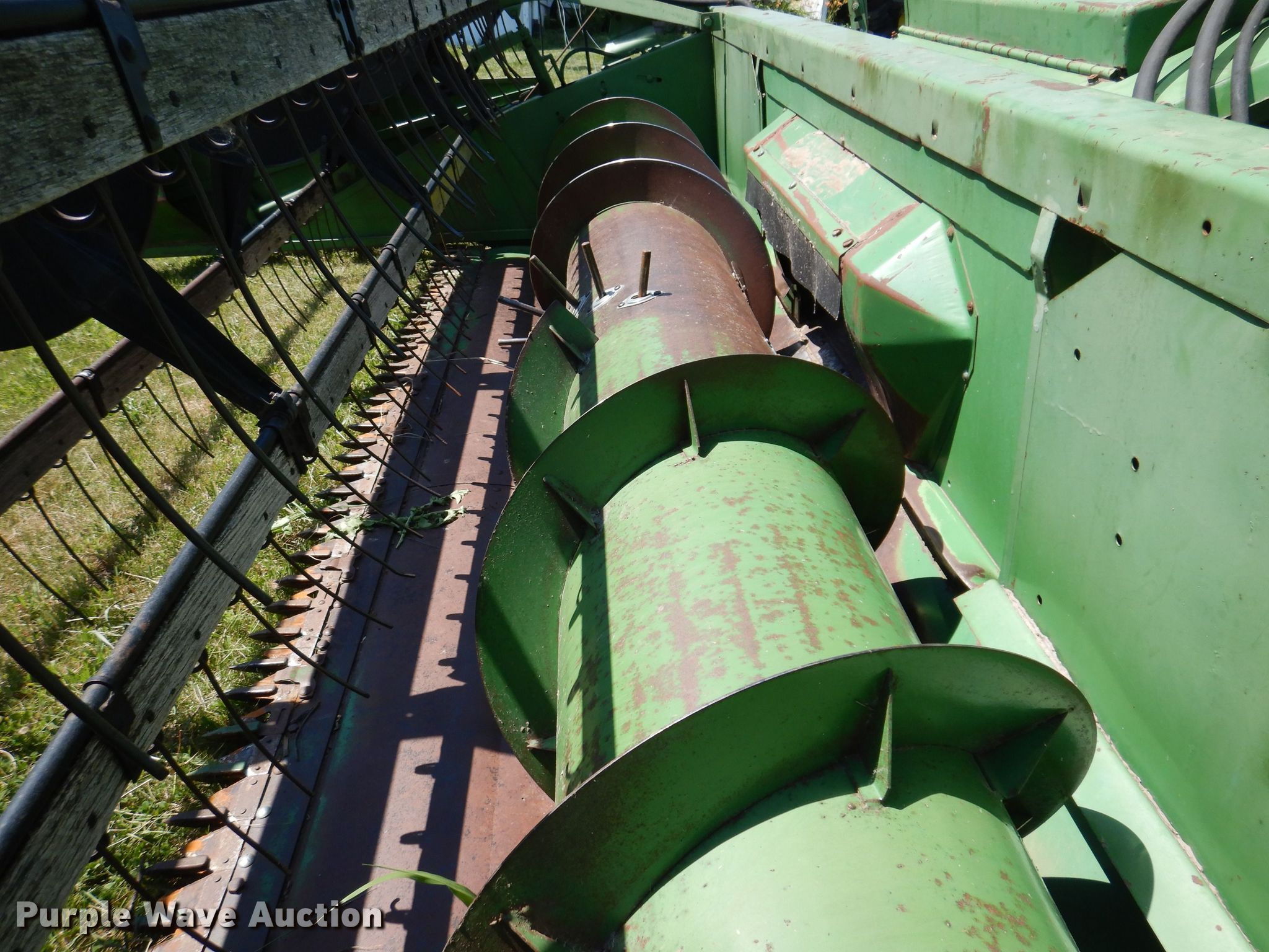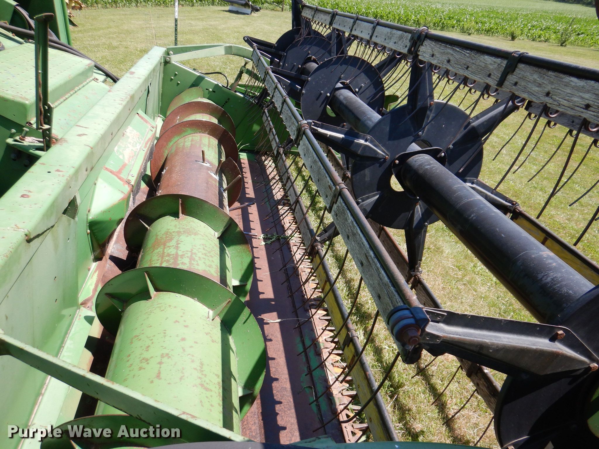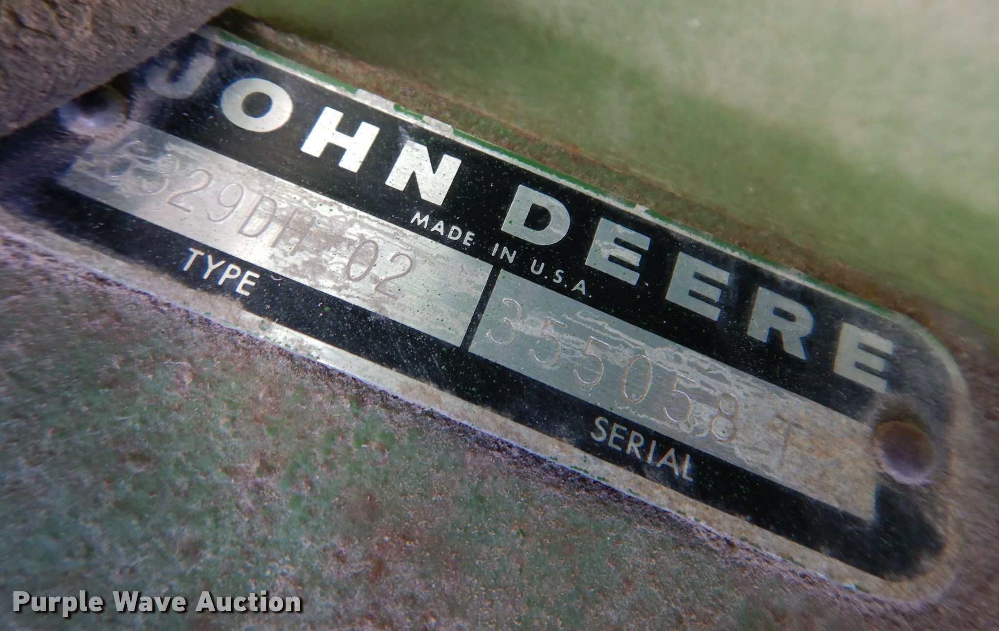 1975 John Deere 4400 combine. Engine hours: 3,829 on meter, Serial: 153977H. Engine John Deere, Serial: 355058T, Cylinders: 6, Fuel type: Diesel. Transmission Manual, 4F - 1R. Interior Heat. Features Chaff spreader, Unloading auger length: 11', Rigid head John Deere 213, Serial: H00200X586749, Reel: Bat, Finger Hydraulic reel height control, Drivelines: Dual. Tires Front: 18.4-26TZ19, Rear: 11L-16. 1690 Wind Wood Trail. Prole, IA 50229