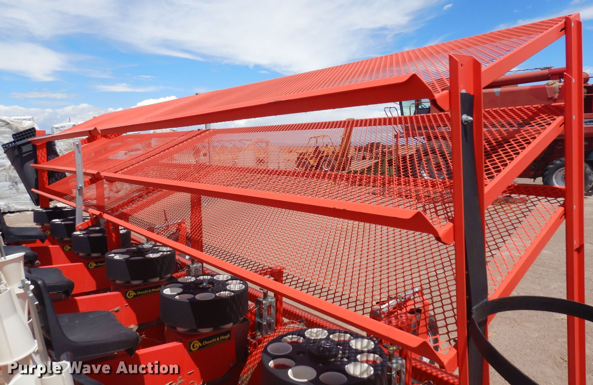2019 Checchi & Magli Trium 45 transplanter. Width: 18', Row units: 6, Row spacing: 34", Serial: 22574. Features Frame Hitch: Three point, Row units Closing system: Double Type: Cast, 10 cup carousel , 1.5" fertilizer intake. TXCO Holdings LLC. 11350 Lane 12 North. Hooper, CO 81136