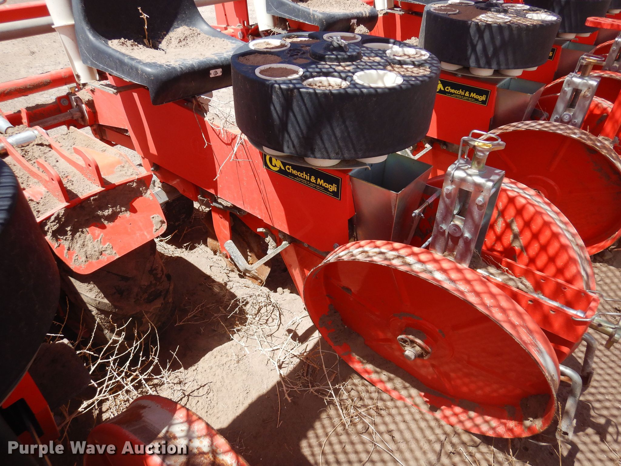 2019 Checchi & Magli Trium 45 transplanter. Width: 18', Row units: 6, Row spacing: 34", Serial: 22578. Features Frame Hitch: Three point, Row units Meter drive: Ground, No-till coulters, Closing system: Double Type: Cast, 10 cup carousel , 1.5" liquid fertilizer intake. TXCO Holdings LLC. 11350 Lane 12 North. Hooper, CO 81136