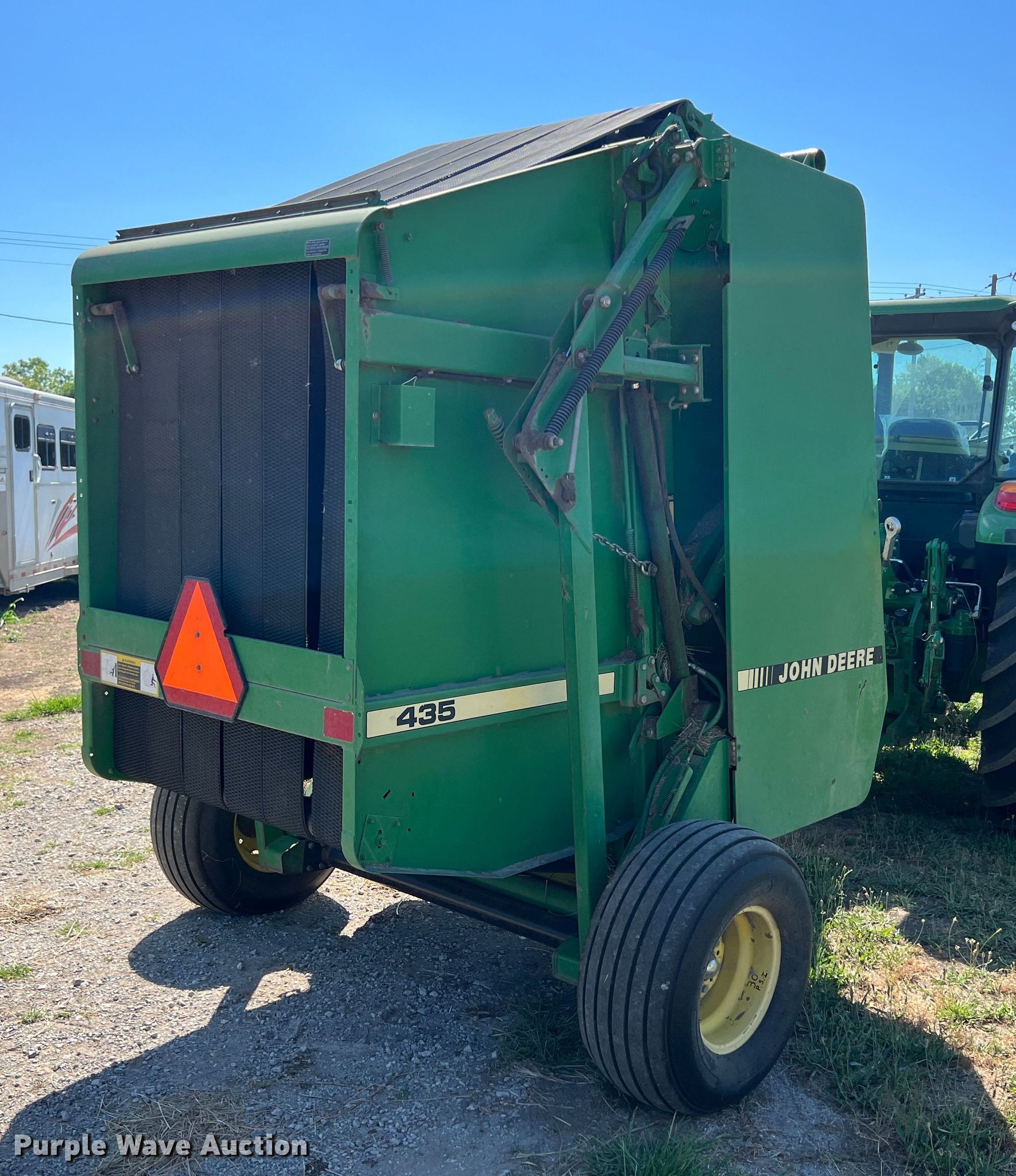 Purple Wave is selling a used Round Baler in Oklahoma. This item is a 1991 John Deere 435 round baler with the following: Serial: E00435X886521