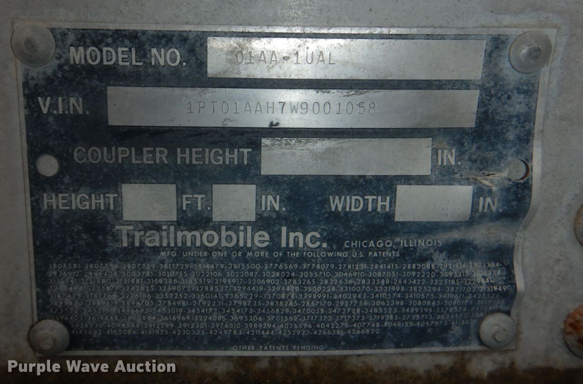 Purple Wave is selling a used Dry Van Trailer in Iowa. This item is a 1998 Trailmobile Inc. 01AA-1UAL dry van trailer with the following: VIN: 1PT01AAH7W9001058
