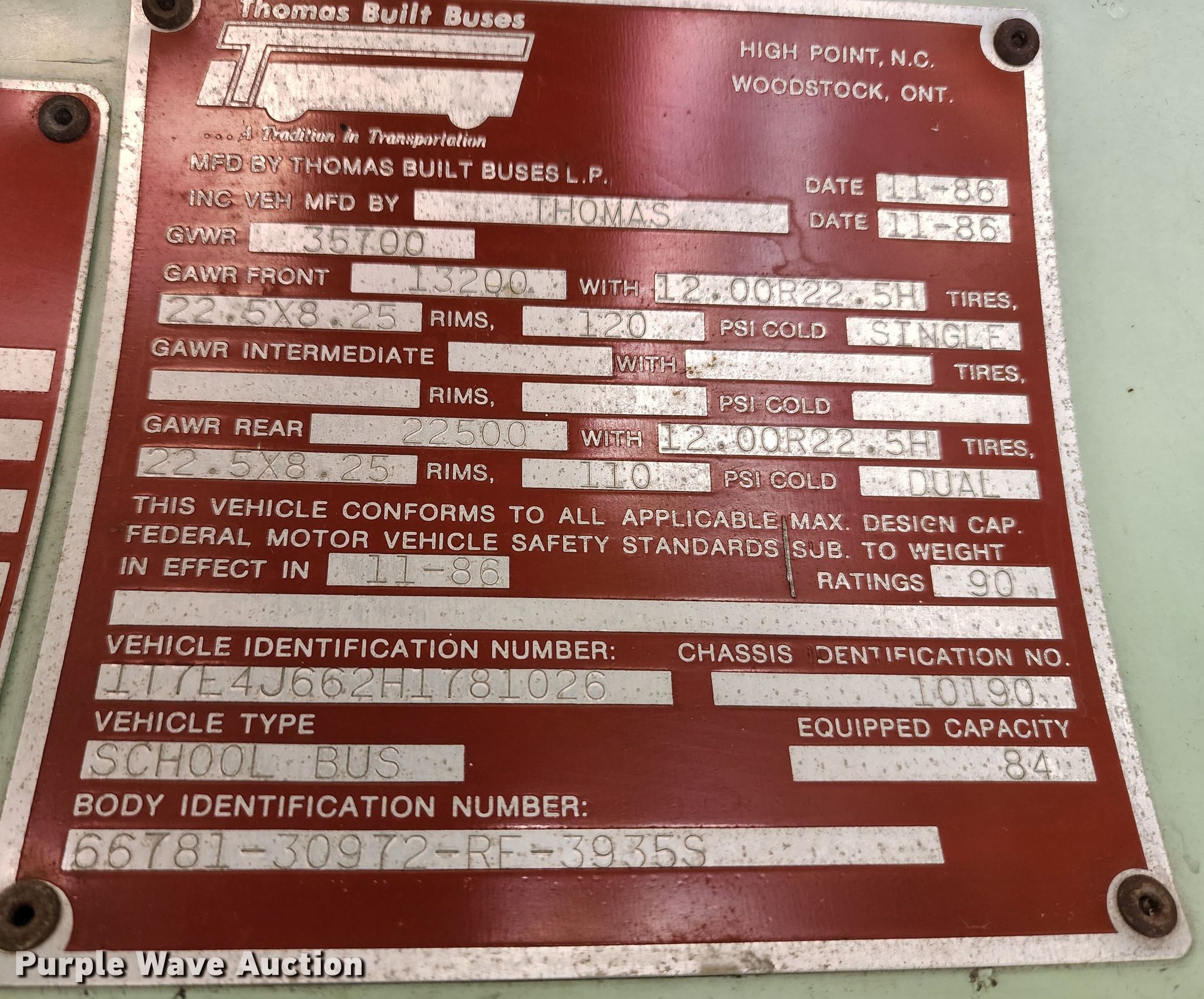 Purple Wave is selling a used RV or Camper in Missouri. This item is a 1987 Thomas RV with the following: Miles: 341,433 on odometer, Hours: 19,785 on meter, VIN: 1T7E4J662H1781026