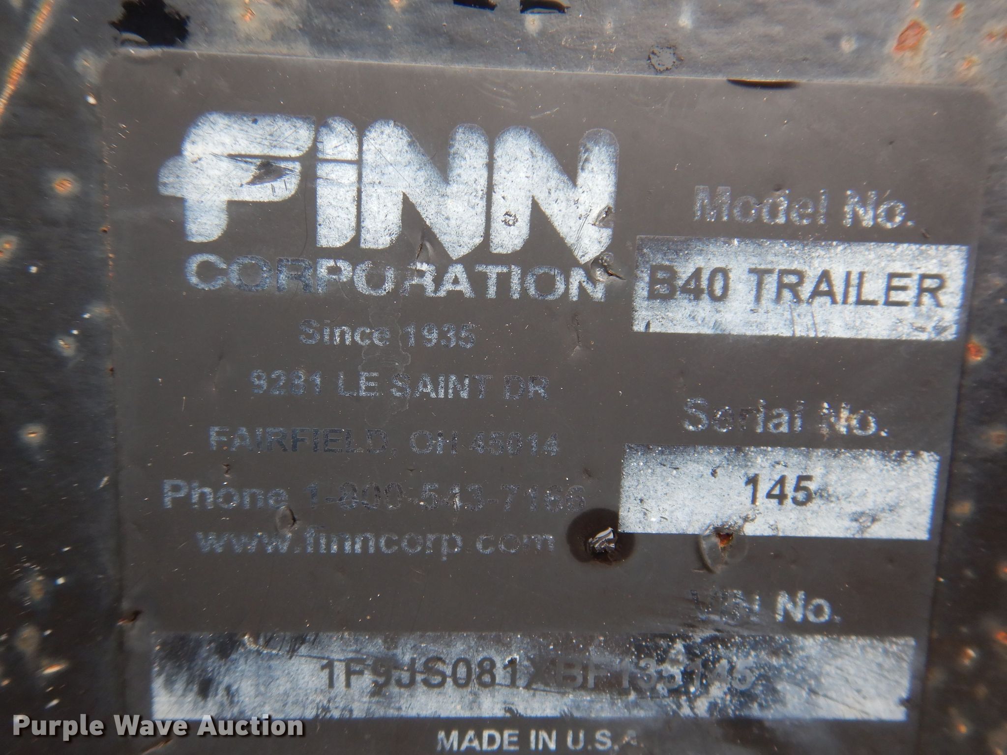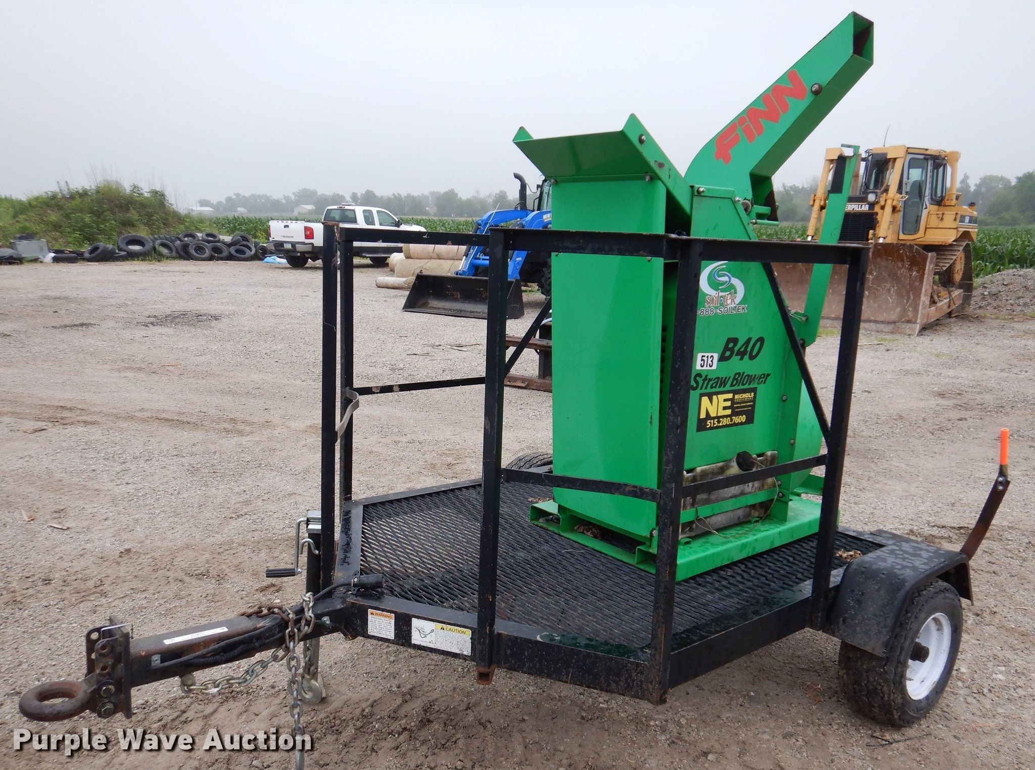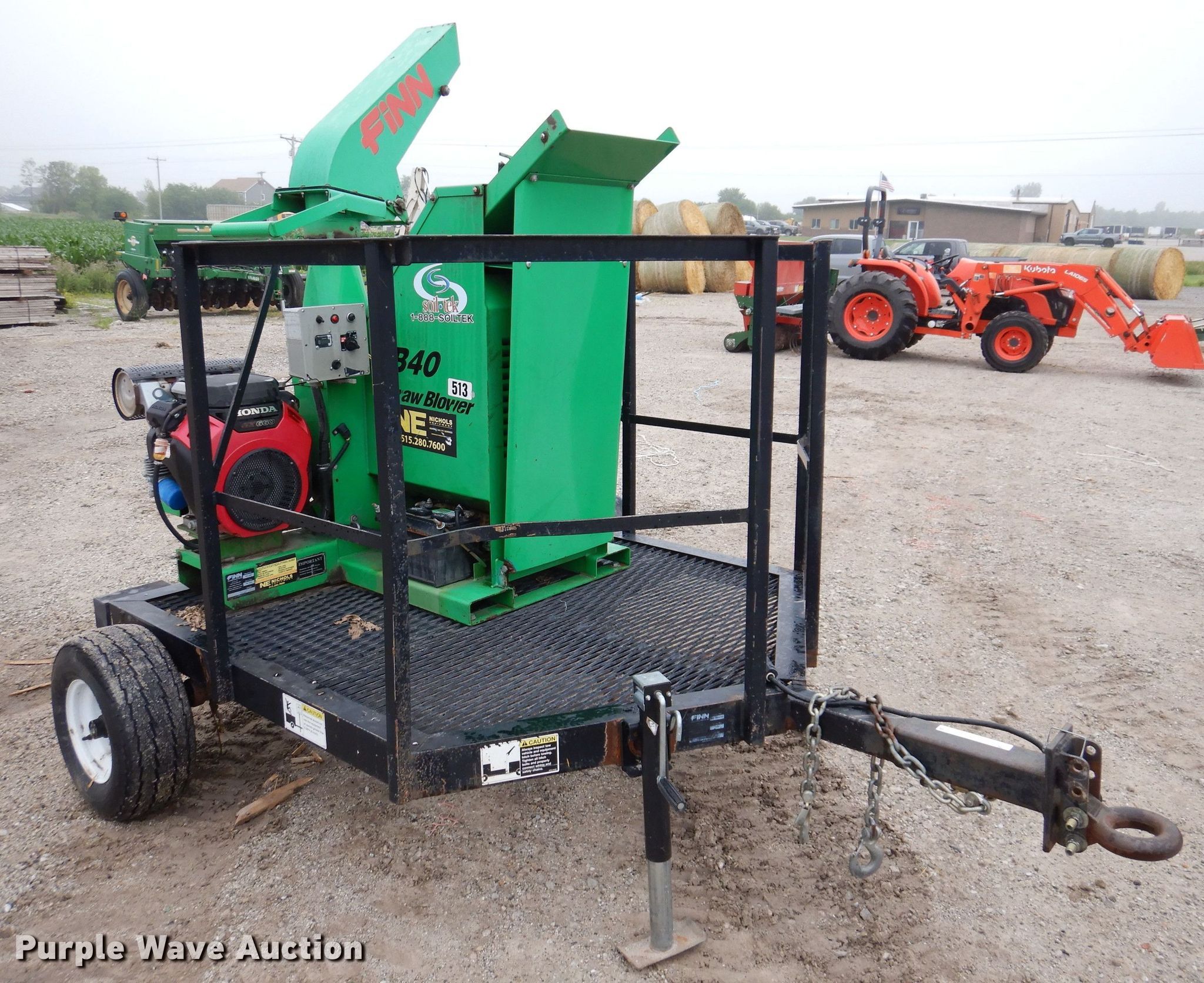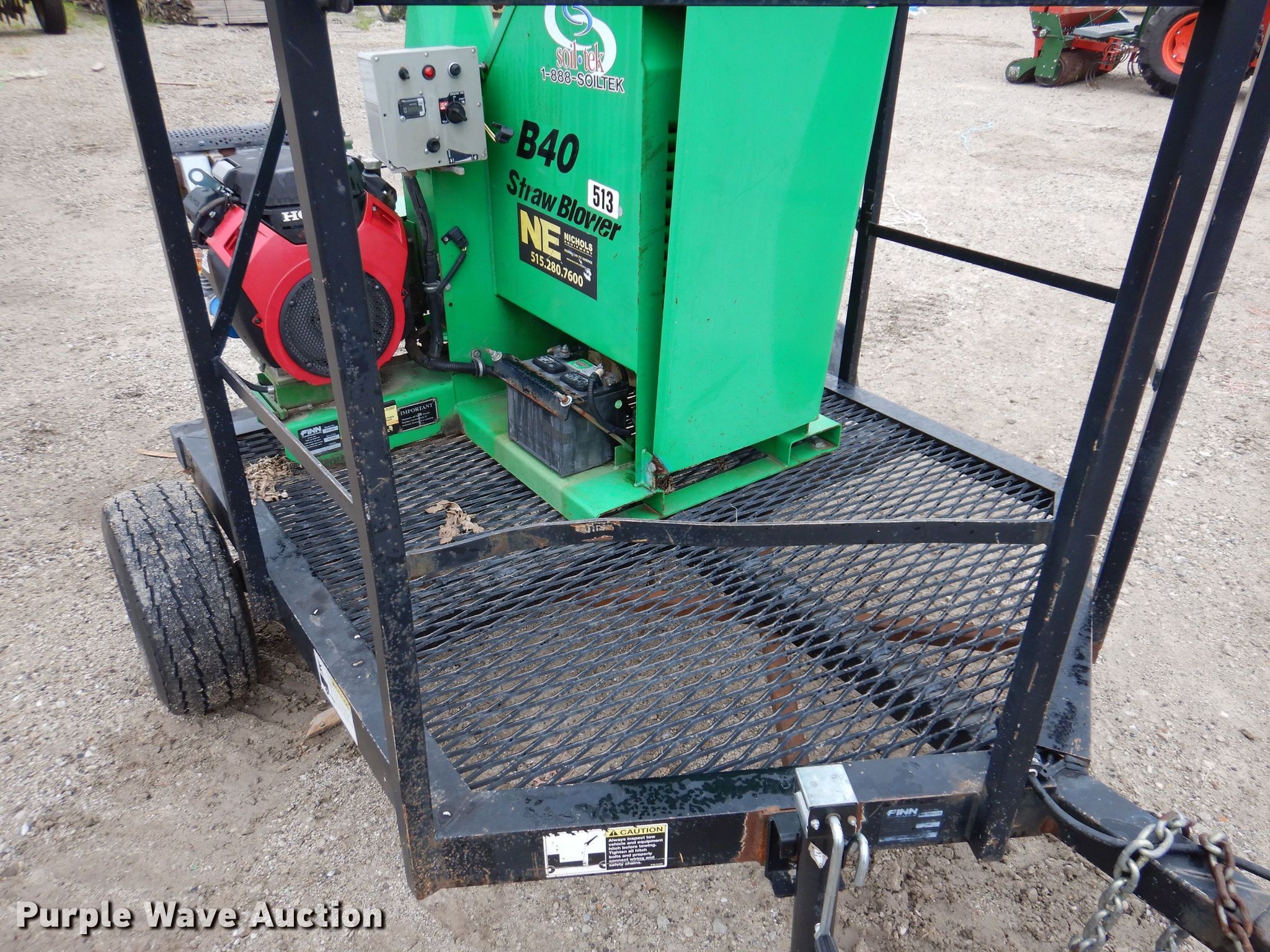 Finn B40-09A straw blower. Hours: 15 on meter, Serial: SB-1838. Engine Honda GX660, Cylinders: 2, Fuel type: Gas. Features Manual chute. 2011 Finn utility trailer VIN: 1F9JS081XBF135145. Dimensions Overall: 9' L x 6' 8" W , Deck: 6' L x 62" W. Chassis Hitch: Pintle, Landing gear: Single, Brakes: Electric. Tires Size: 20.5x8-10. Transfer of ownership documentation will be a bill of sale. GreenTech of Iowa. 1000 W. 6th Ave. Slater, IA 50244