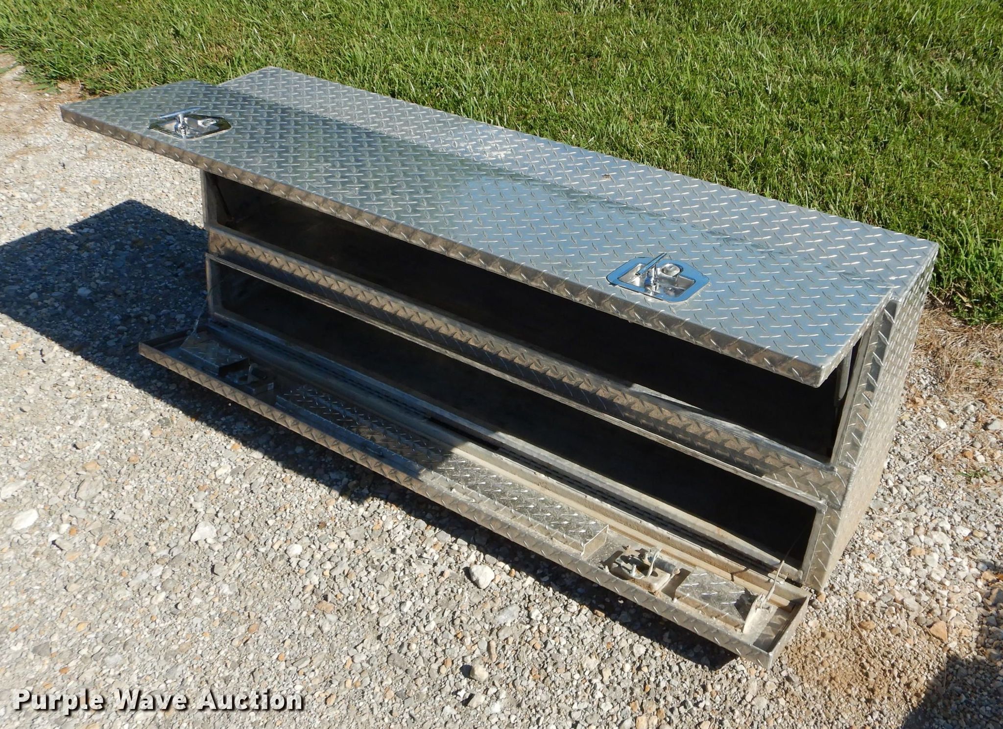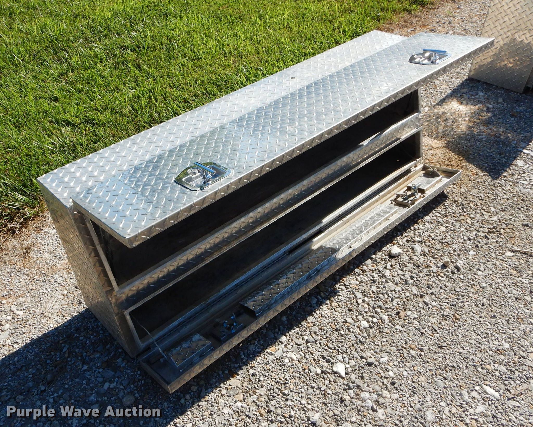 Purple Wave is selling a used Automotive Parts or Acces. in Kansas. This item is a (2) toolboxes with the following: Diamond plate, 60" L x 22" H, Contents not included