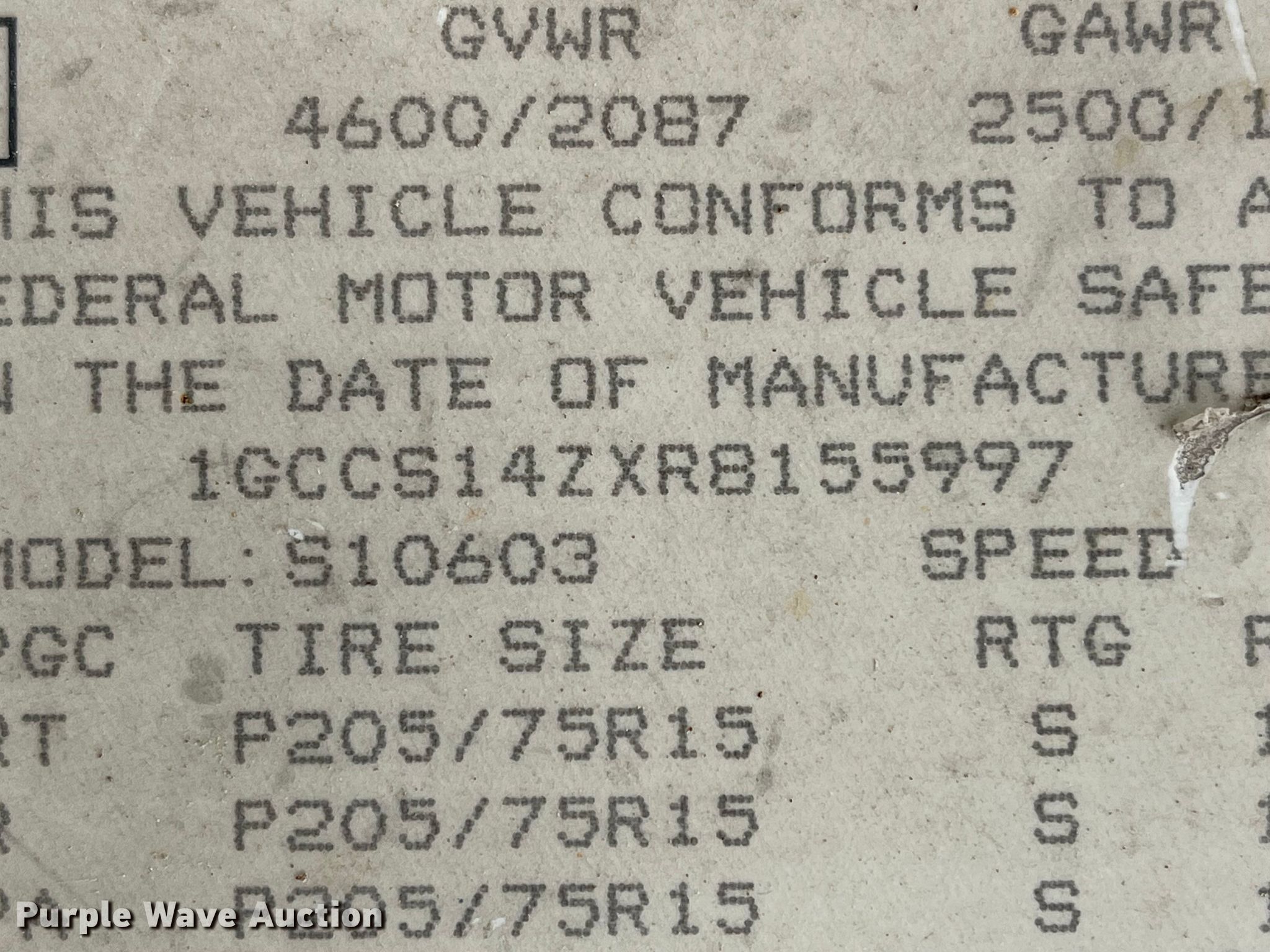 Purple Wave is selling a used Compact Pickup or Van in Arkansas. This item is a 1994 Chevrolet S10 pickup truck with the following: Miles: 166,598 on odometer, VIN: 1GCCS14ZXR8155997
