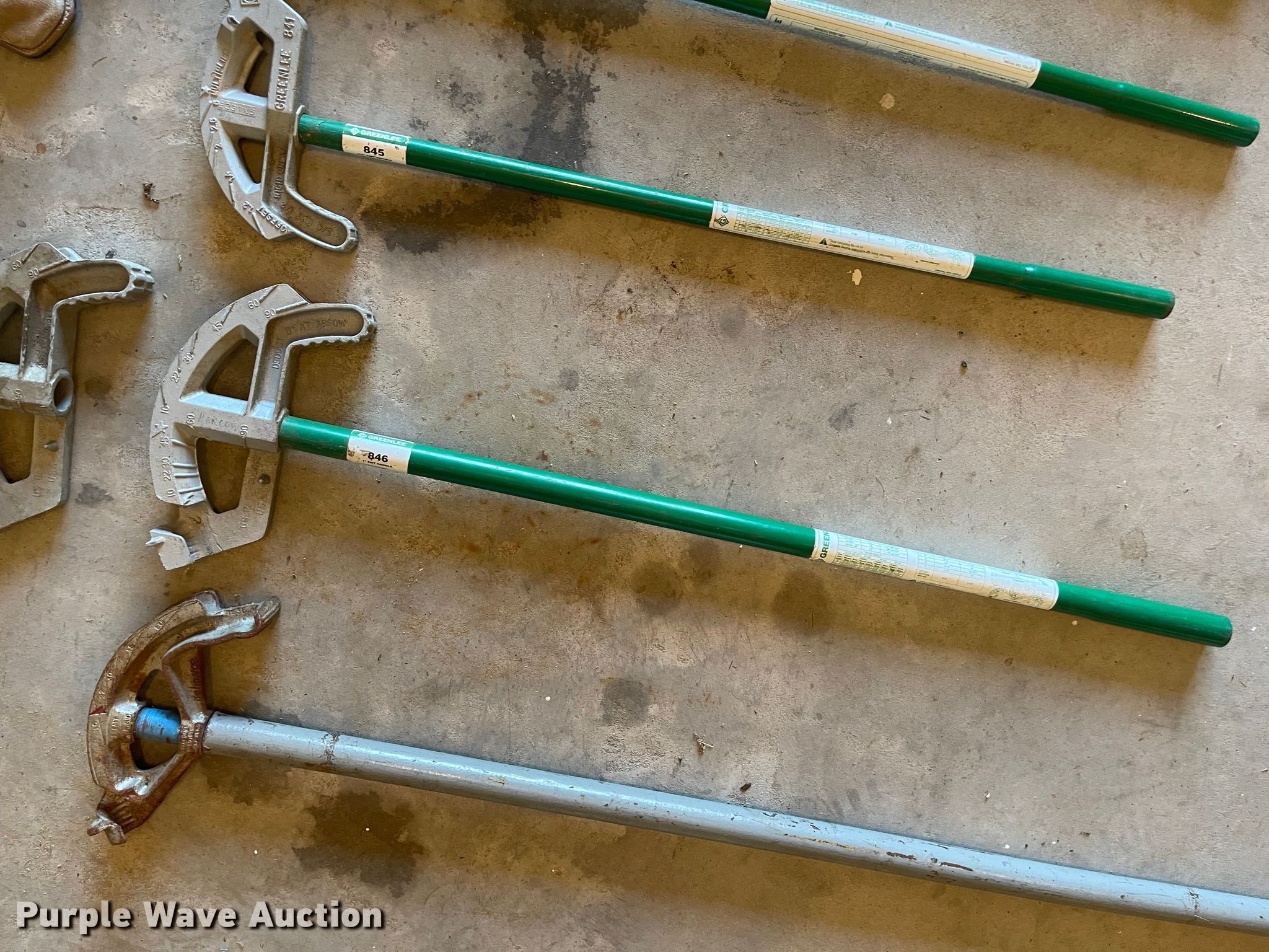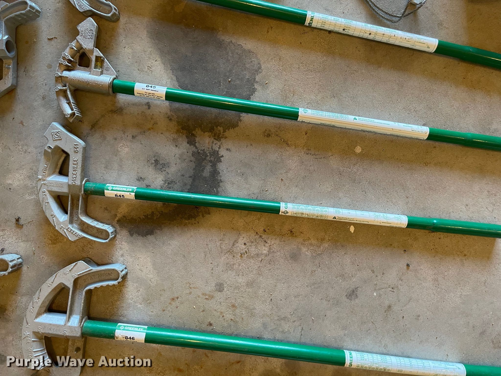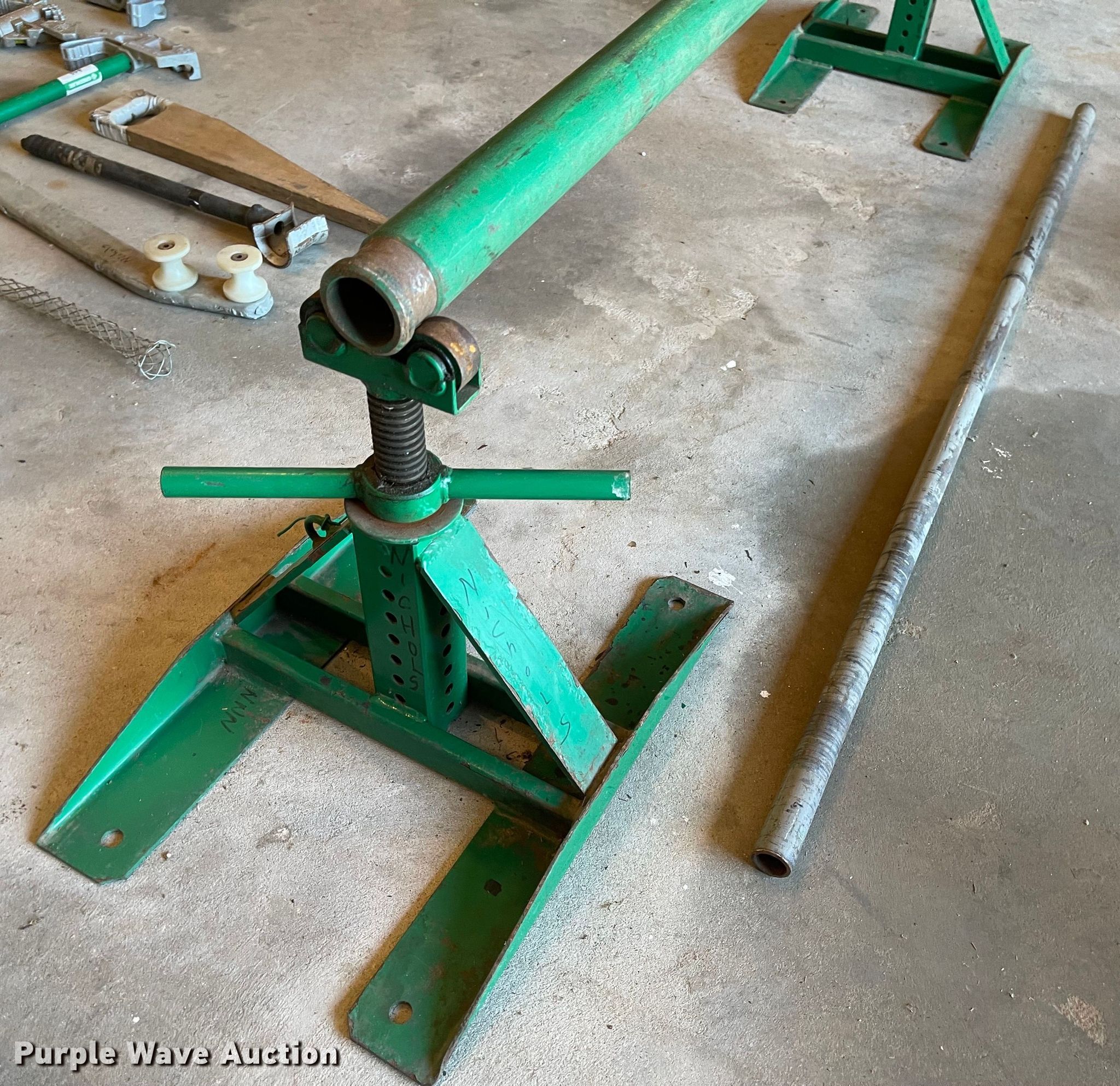 Purple Wave is selling a used Tools in Missouri. This item is a Tools with the following: Greenlee cable dispenser, Greenlee cable reel, Jack stands, Greenlee conduit benders, (2) 1/2", 3/4", 1", 1 1/4", 1/2" head, No handle, 1" head, No handle,, Cable bending tools, Albers Mfg Type PRL3 panelboard, 225 rated amps, 120/240V, Single phase, Three wire
