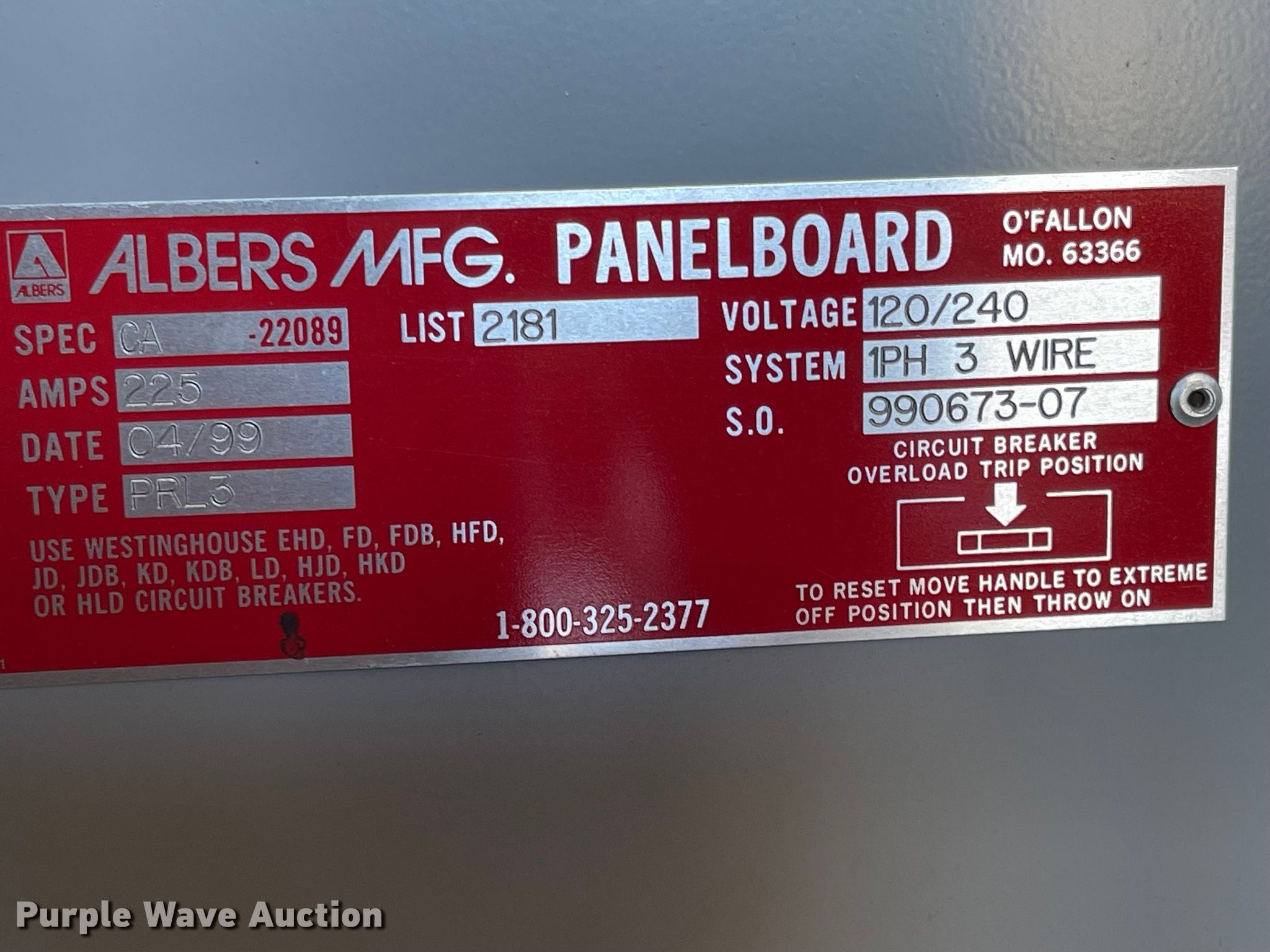 Tools. Greenlee cable dispenser, Greenlee cable reel Jack stands, Greenlee conduit benders (2) 1/2", 3/4", 1", 1 1/4", 1/2" head No handle, 1" head No handle, Cable bending tools, Albers Mfg Type PRL3 panelboard 225 rated amps, 120/240V, Single phase , Three wire. Randy Nichols. 3576 Highway Ab. Mansfield, MO 65704