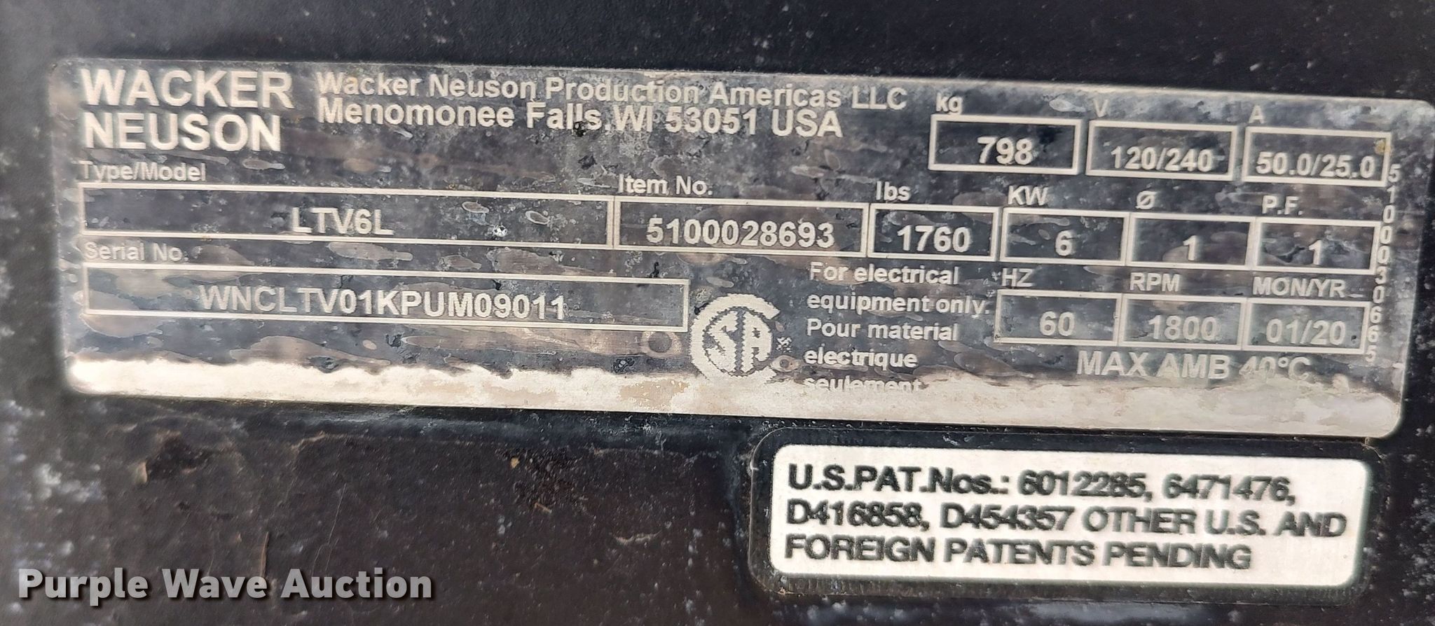 Purple Wave is selling a used Light Plant in Oklahoma. This item is a 2019 Wacker Neuson LTV6L light plant with the following: Hours: 1,126 on meter, VIN: 5XFLV0410LM000428