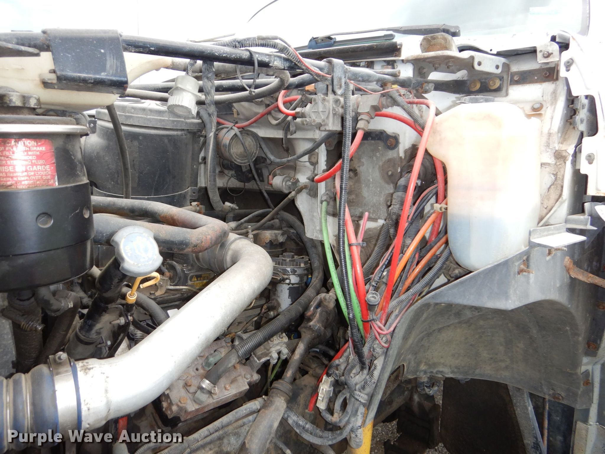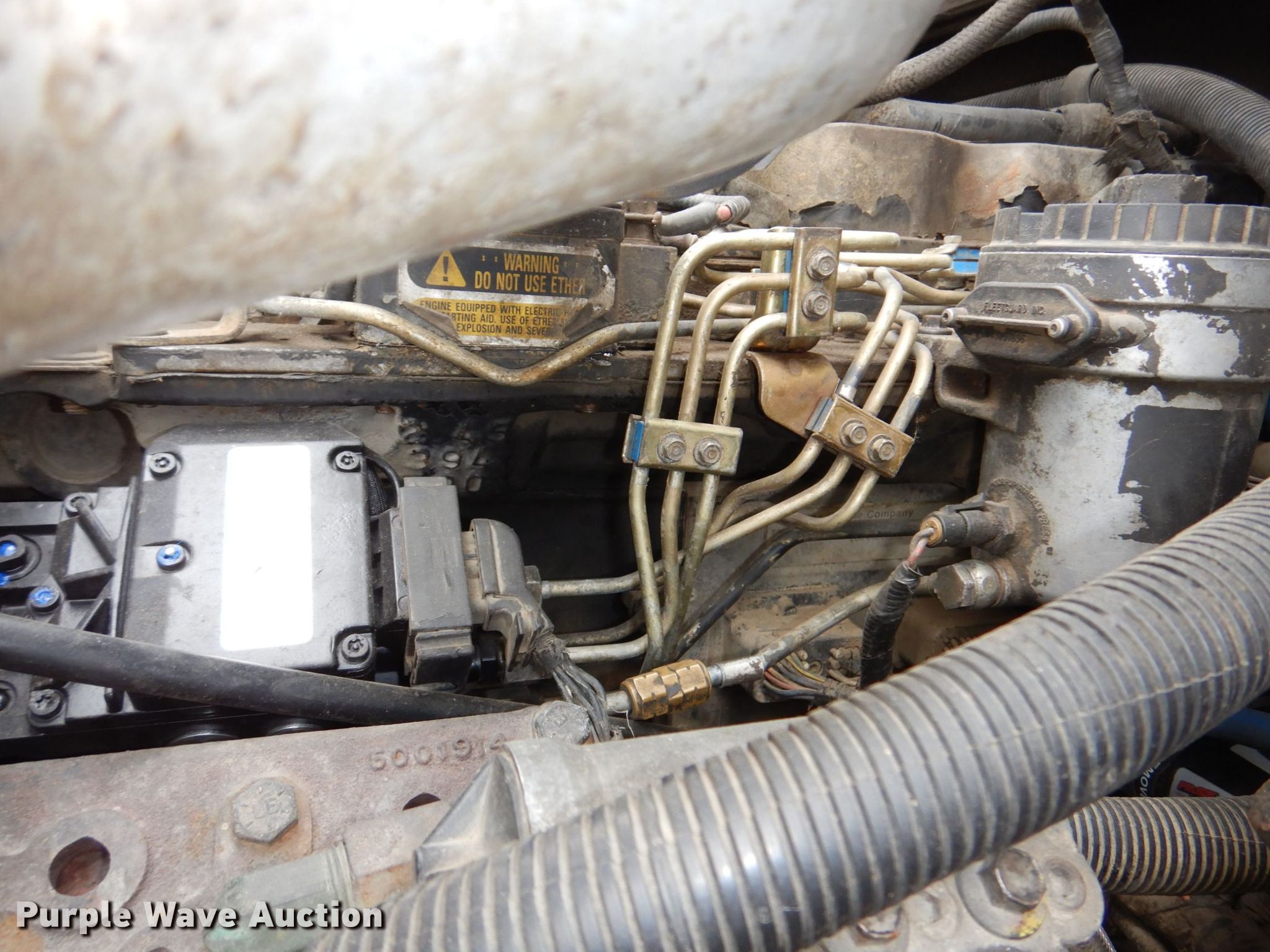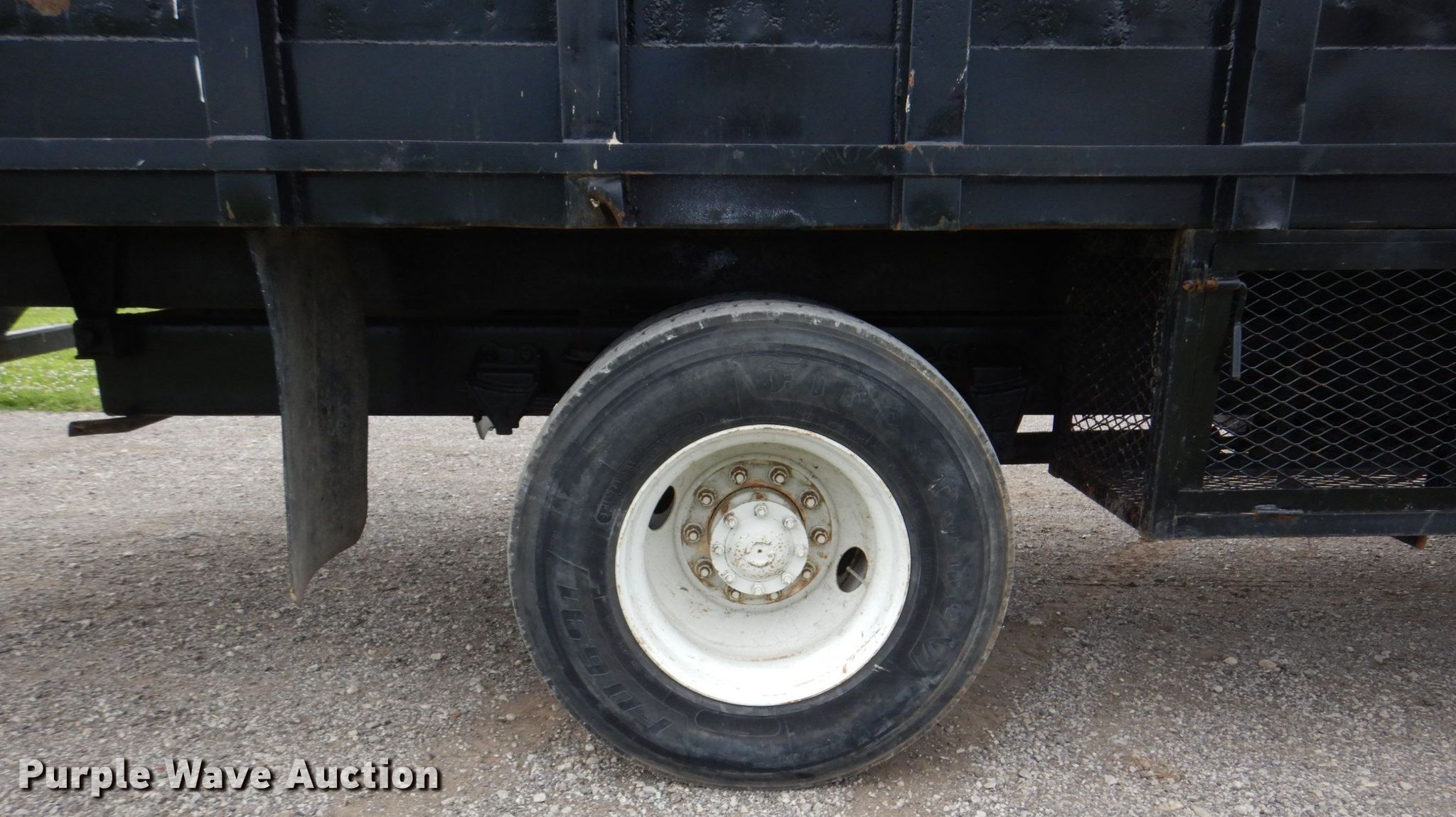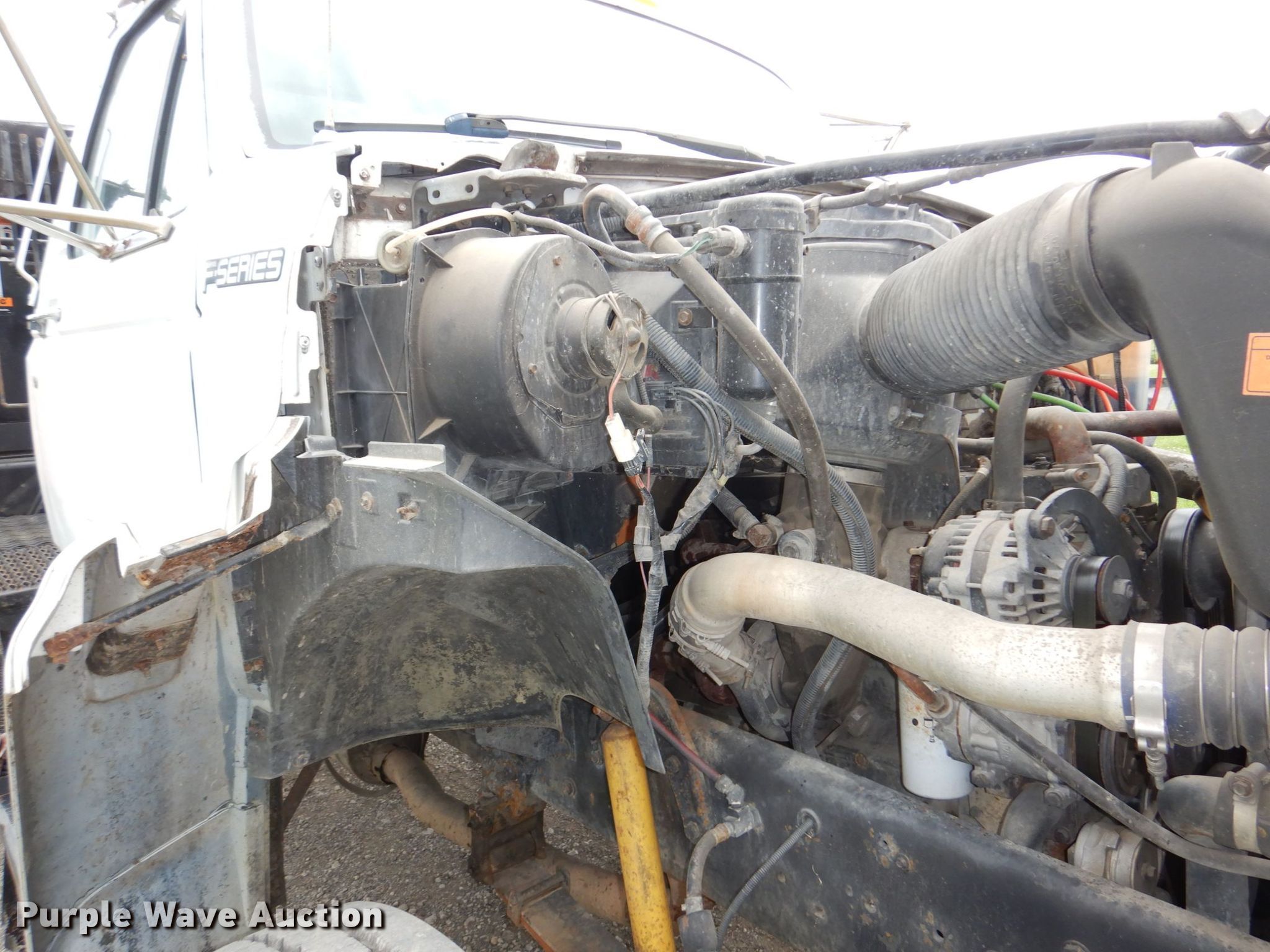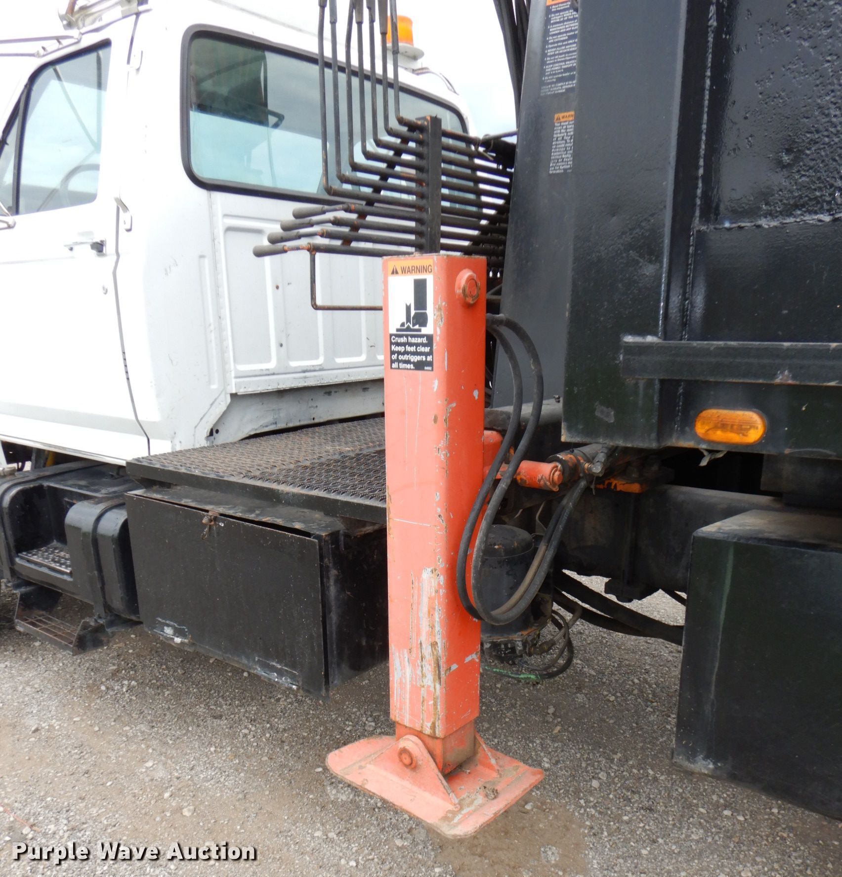 1999 Ford F800 crane truck. Miles: 146,859 on odometer, VIN: 3FEXF8014XMA03647. Engine Cummins ISB, Displacement: 5.9L, Cylinders: 6, Fuel type: Diesel, HP: 215. Transmission Manual, Speed: 6. Chassis Axles: Single, Suspension: Spring, Brakes: Air, PTO, Wheelbase: 241". Interior AC, Heat. Features Dump bed 18' L x 98" W, Side height: 62", Bed type: Steel, Roll tarp, Ram: Single , End gate: Manual, Crane Peterson Lightning , Boom length: 20'. Tires Size: 11R22.5. Notes Dash warning indicator: Check engine. Missouri title. Saw Tree Service. 4530 Kelsey Road Southeast. Saint Joseph, MO 64507