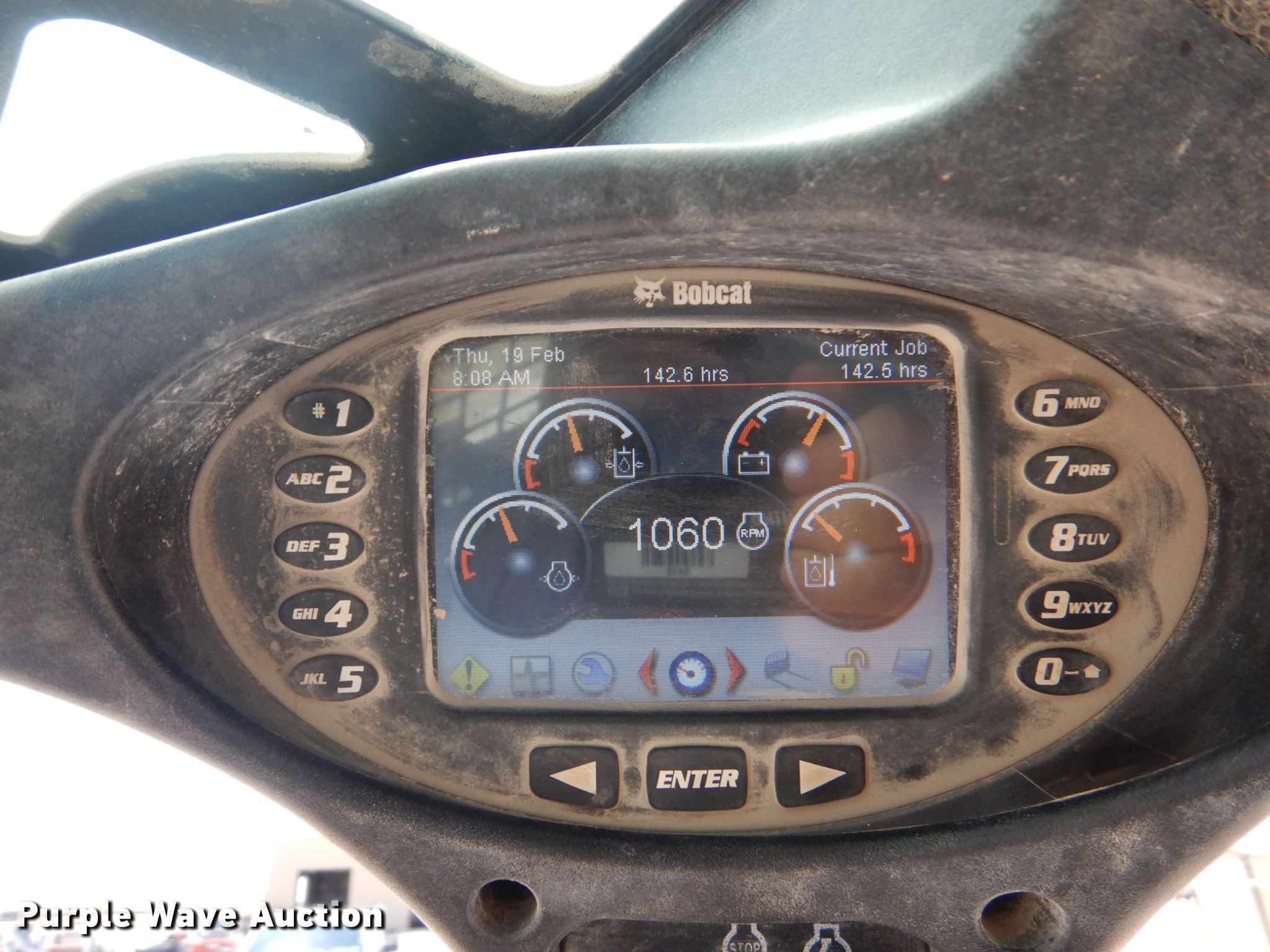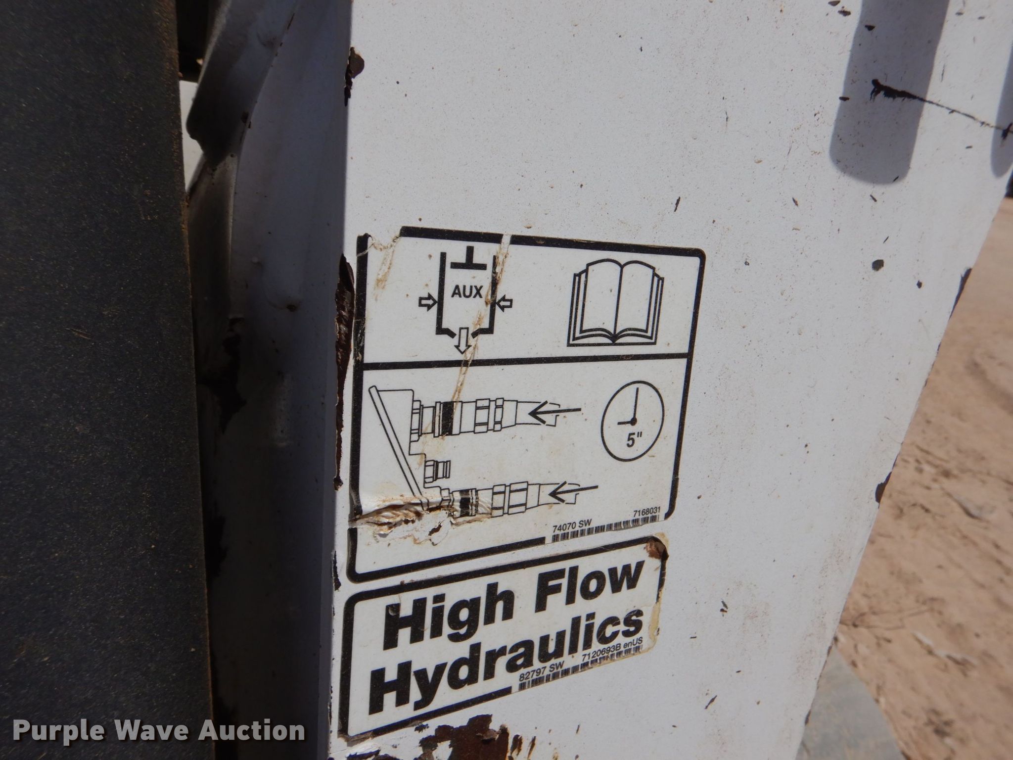 2019 Bobcat T870 tracked skid steer loader. Hours: 2,143 on meter, Serial: B47C13724. Engine Doosan, Serial: D34P8047957, Cylinders: 4, Fuel type: Diesel. Transmission Hydrostatic, Two speed travel. Operators station Enclosed cab, AC, Heat, Bucket control: Hand, Pattern changer, Electronic Monitoring System panel. Features Auxiliary hydraulics, Auxiliary electrical outlet, Quick coupler: Hydraulic. Tracks Brand: Bridgestone, Width: 17". Notes Door missing. Bobcat/CCE. 6111 E I-20. Midland, TX 79706