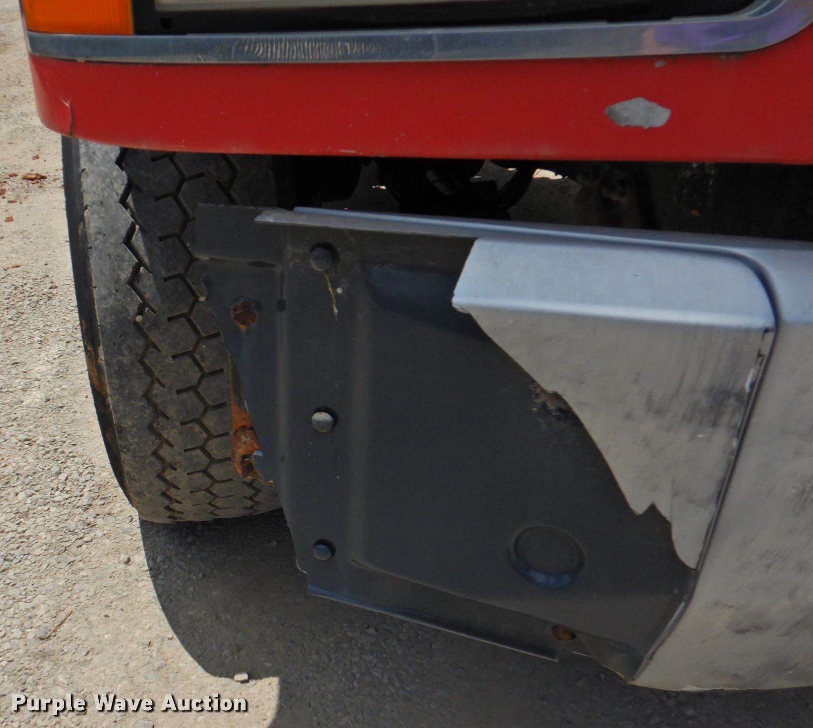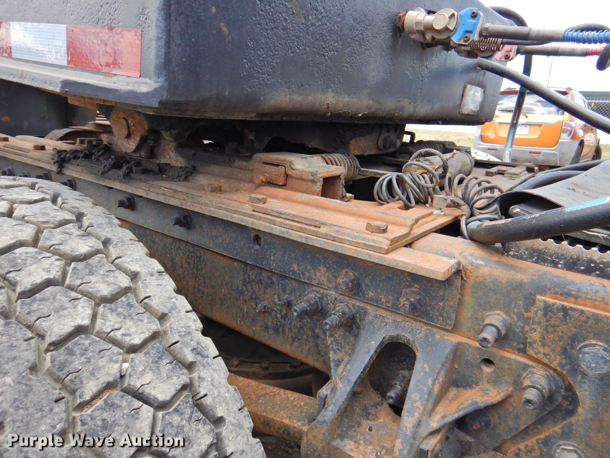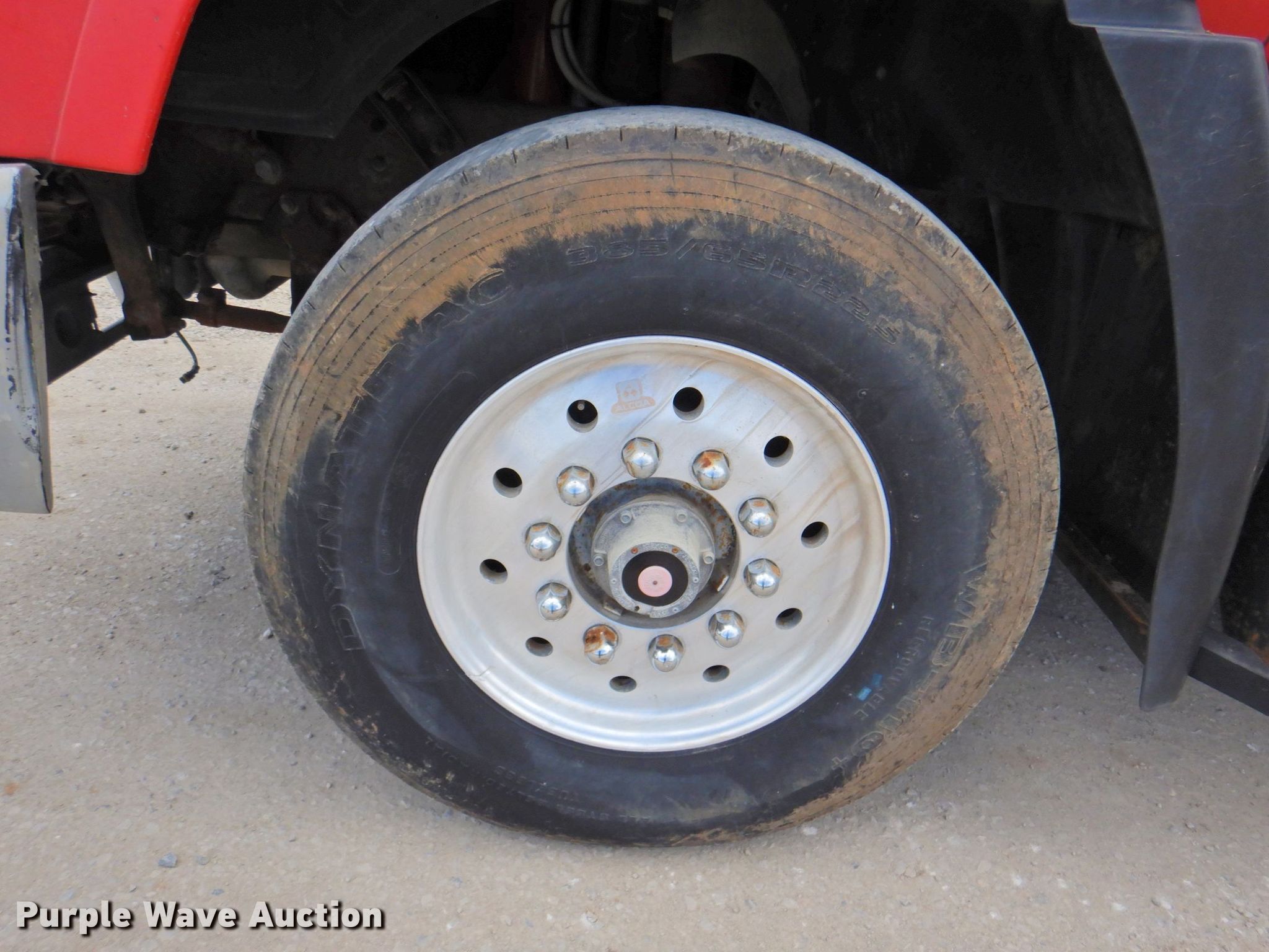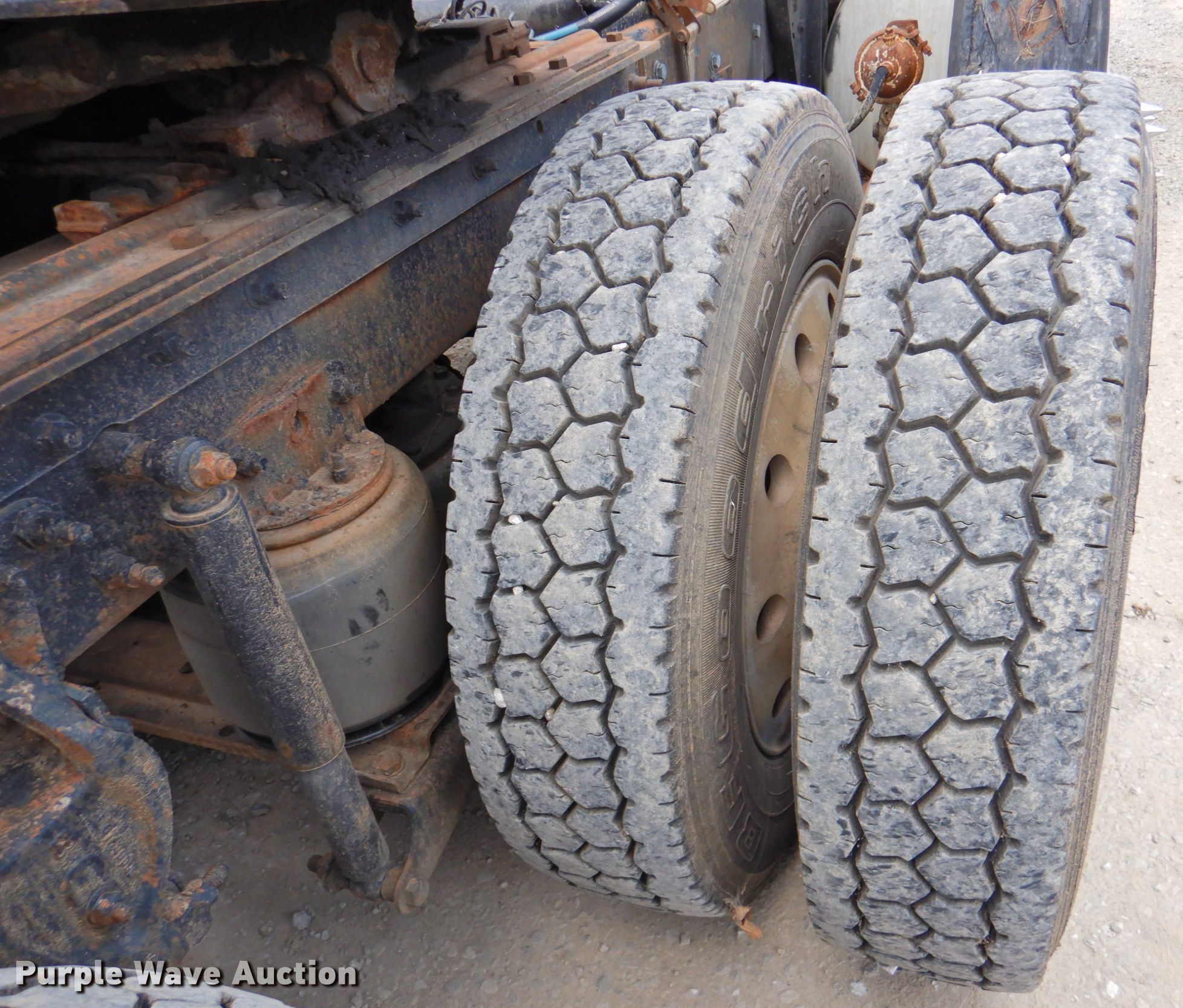 1996 Mack CH613 semi truck. Miles: 12,228 on odometer, Hours: 28,858 on meter, VIN: 1M1AA18Y8TW062846. Engine Mack E7-427, Displacement: 12.0L, Cylinders: 6, Fuel type: Diesel, HP: 427, Engine brake. Transmission Mack T2100, Manual, Speed: 10. Chassis Axles: Tandem, Pusher axle, Differential lock: Inter-axle, Suspension: Air Dump valves, Brakes: Air, PTO, Wet kit. Interior AC, Heat, Heated mirrors, Cruise control, Air ride cab. Features Deck plate: Aluminum, Fifth wheel type: Sliding, Fuel tank: Dual. Tires Front: 385/65R22.5, Rear: 275/80R24.5, Lift axle: 285/75R24.5. Notes Windshield chipped or cracked. Kansas title. Miller Excavating, Inc.. 211 West Dennis Avenue. Olathe, KS 66061
