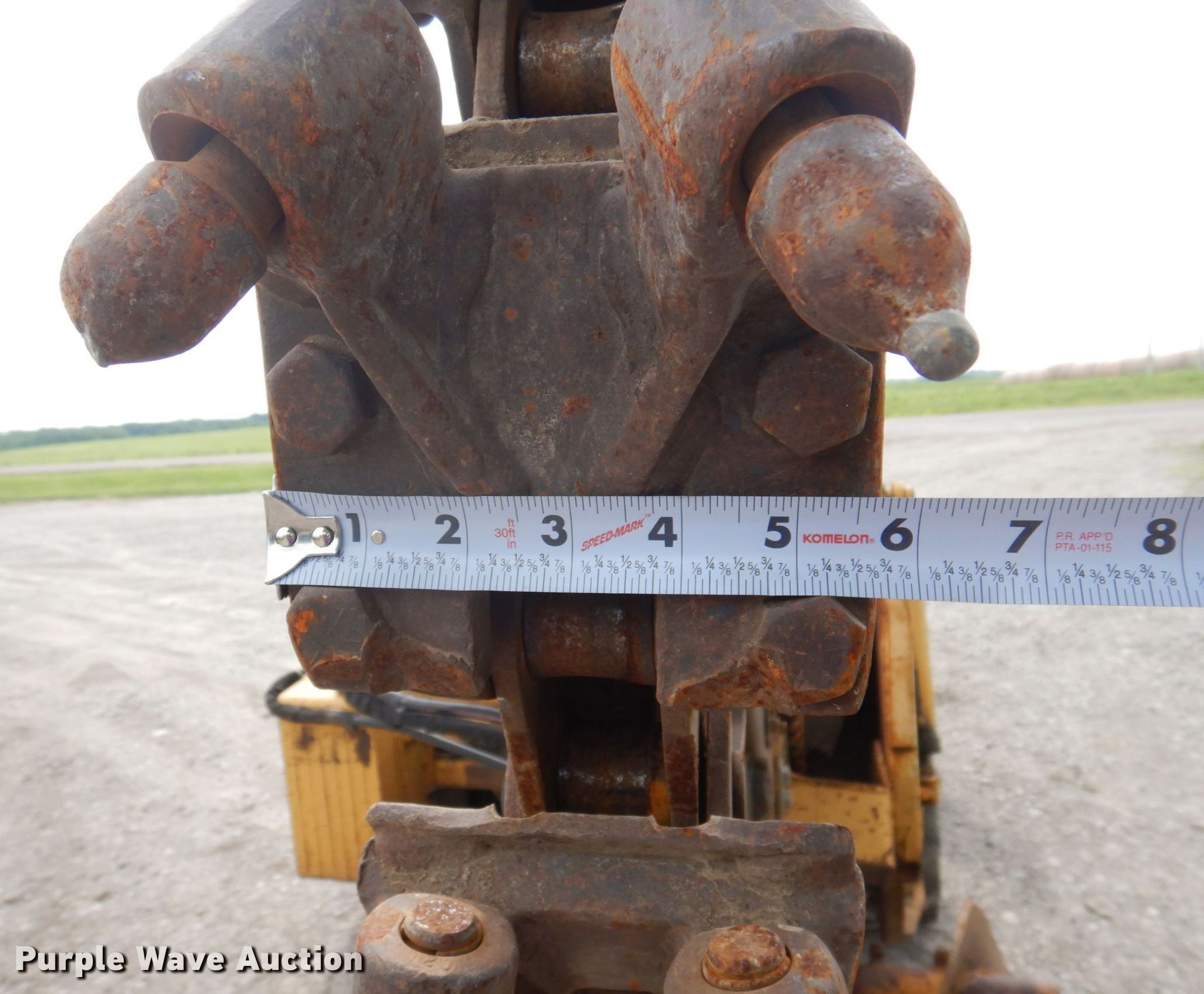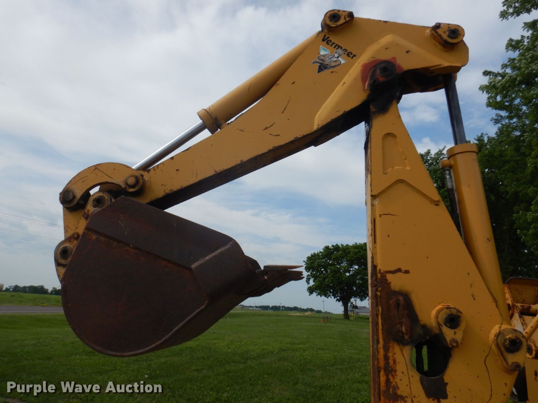 1995 Vermeer V5750 trencher. Hours: 2,410 on meter, Serial: 1VRM082Z6S1000111. Engine Deutz F4L1011, Cylinders: 4, Fuel type: Diesel. Transmission Hydrostatic, Differential lock, Four wheel steer. Features Trencher Model: TR5750, Serial: 1VRM07015S1000110, Estimated dig depth: 72", Side shift, Teeth: Rock, Hydraulic crumber, Backhoe Model: B600, Serial: 1VRP080B2S1000111, Bucket width: 18", Backfill blade Width: 64". Tires Size: 31x15.50-15. Notes Hydraulic leak on left outrigger, Hydraulic leak underneath machine, Non-operational differential lock pedal. Turney Transfer. 812 Northeast A Highway. Lathrop, MO 64465