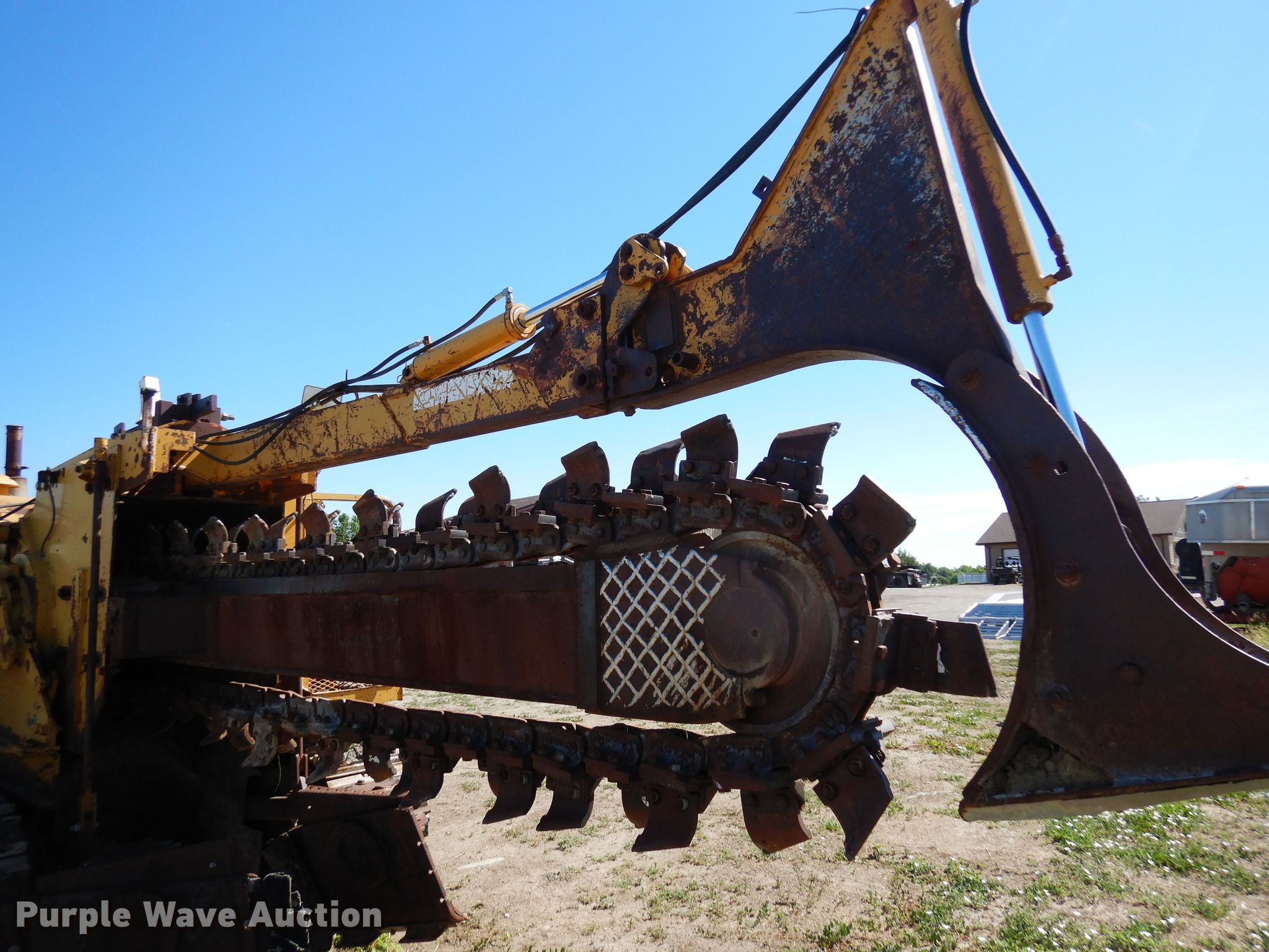 1991 Vermeer T655 trencher. Hours: 7,425 on meter, Serial: 1VRE26078M1000103. Engine Caterpillar 3304B, Cylinders: 6, Fuel type: Diesel. Transmission Hydrostatic. Features Trencher Estimated dig depth: 132", Teeth: Dirt, Hydraulic crumber, Conveyor Width: 23". Tracks Width: 21", Steel, Grouser pads: Double, Track pads: Rubber. Notes Starter solenoid issues. First National Bank of Gordon. Chadron, NE 69337