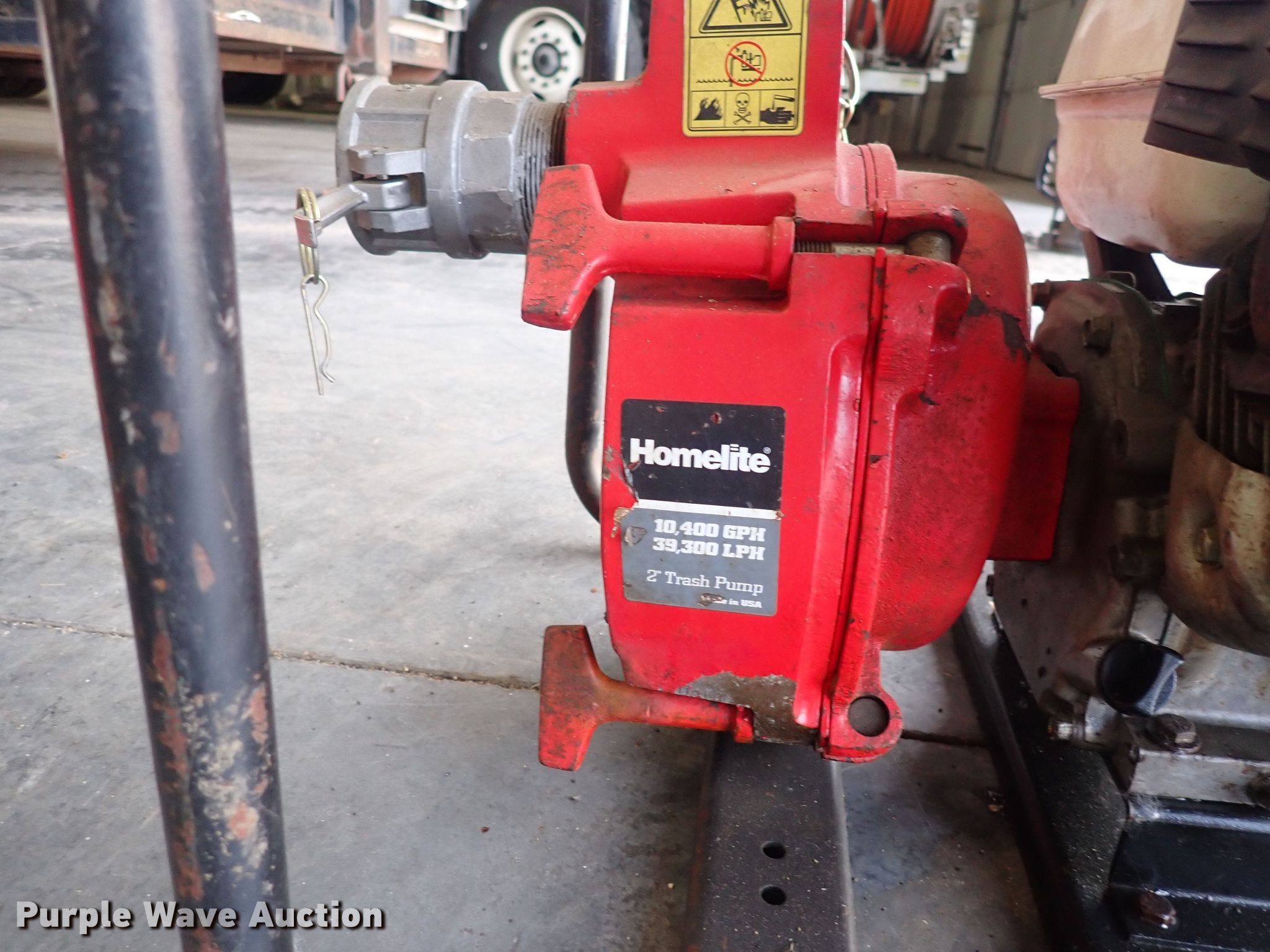 Purple Wave is selling a used Pump in Kansas. This item is a (2) trash pumps with the following: Homelite, Honda gas engine, Discharge: 2", Briggs & Stratton gas engine, Discharge: 3"