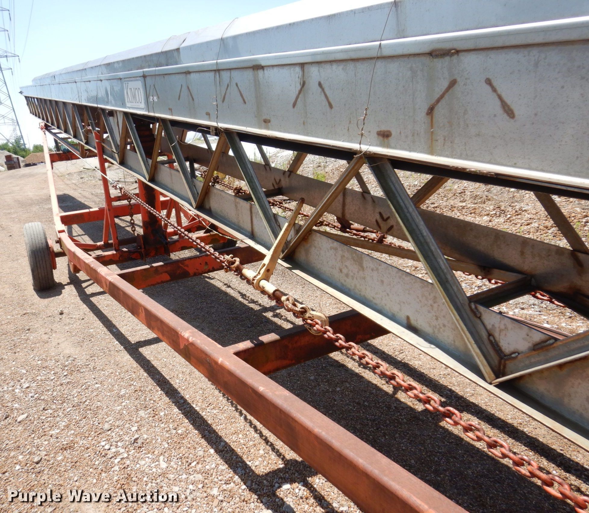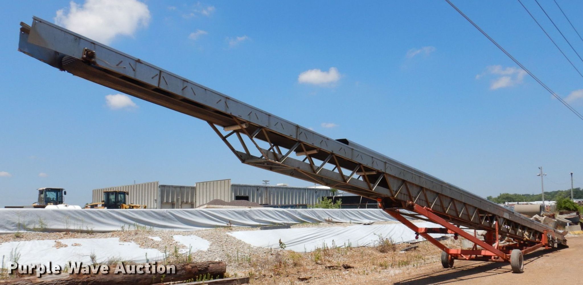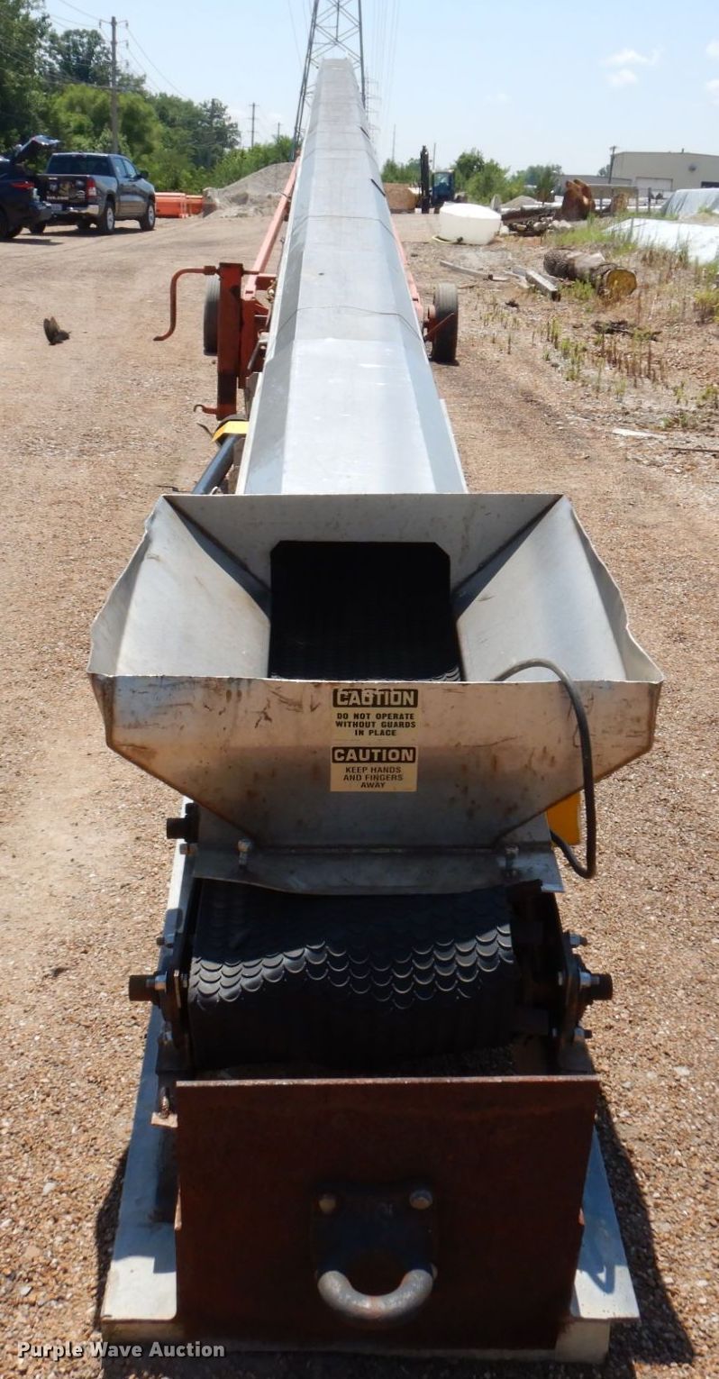 Purple Wave is selling a used Conveyor in Missouri. This item is a Kimco KC18885SS conveyor with the following: PTO: 540, Conveyor, Length: 85', Width: 16", Hydraulic lift