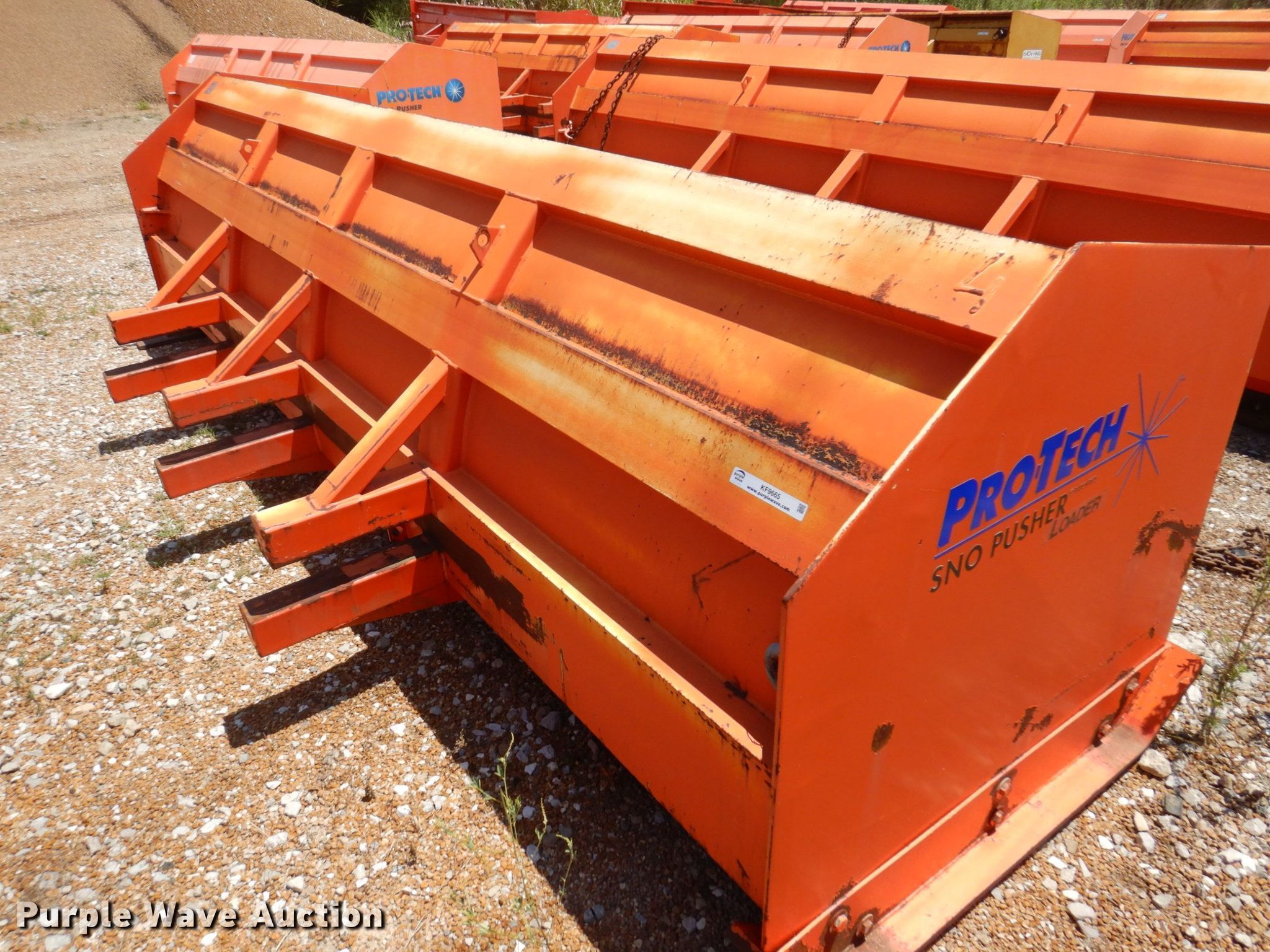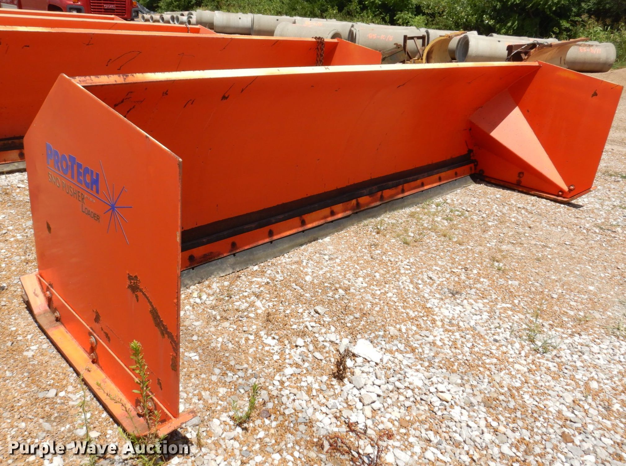 Purple Wave is selling a used Wheel Loader Attach. in Missouri. This item is a Pro Tech SP14L wheel loader snow pusher with the following: Serial: 37242, Width: 14', Cutting edge: Bolt-on
