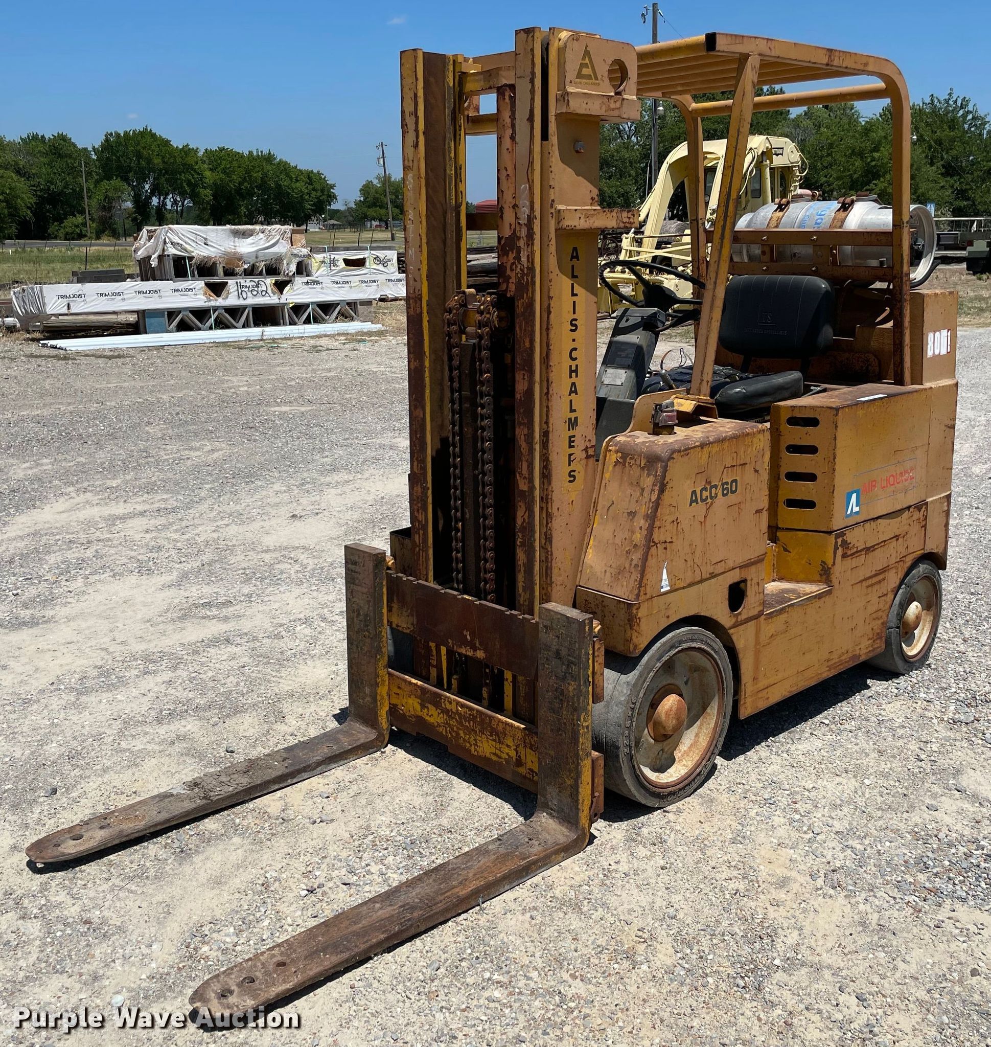 Purple Wave is selling a used Warehouse Forklift in Texas. This item is a Allis-Chalmers ACC600PS forklift with the following: Hours: 1,772 on meter, Serial: APE113080