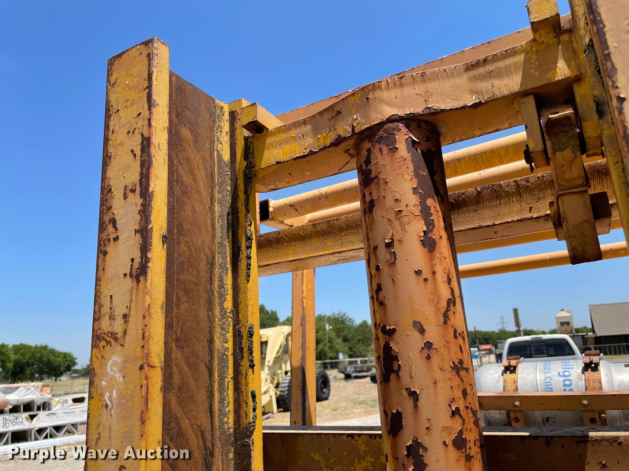 Allis-Chalmers ACC600PS forklift. Hours: 1,772 on meter, Serial: APE113080. Engine Cylinders: 6, Fuel type: LPG LP bottle: Included. Transmission Powershift. Operators station Canopy. Features Maximum lift capacity: 5,900 lbs, Maximum lift height: 122", Mast stages: 2, Mast tilt, Fork length: 42". Tires Front: 22x8x16, Rear: 18x6x12. 604 E Bells Blvd. Bells, TX 75414