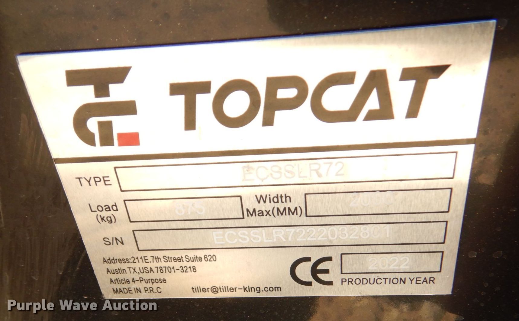 2022 TopCat ECSSLR72 72"W skid steer landscape rake has sold in Mexia, Texas for $3850. Item KV9966 sold on August 11th, 2022.