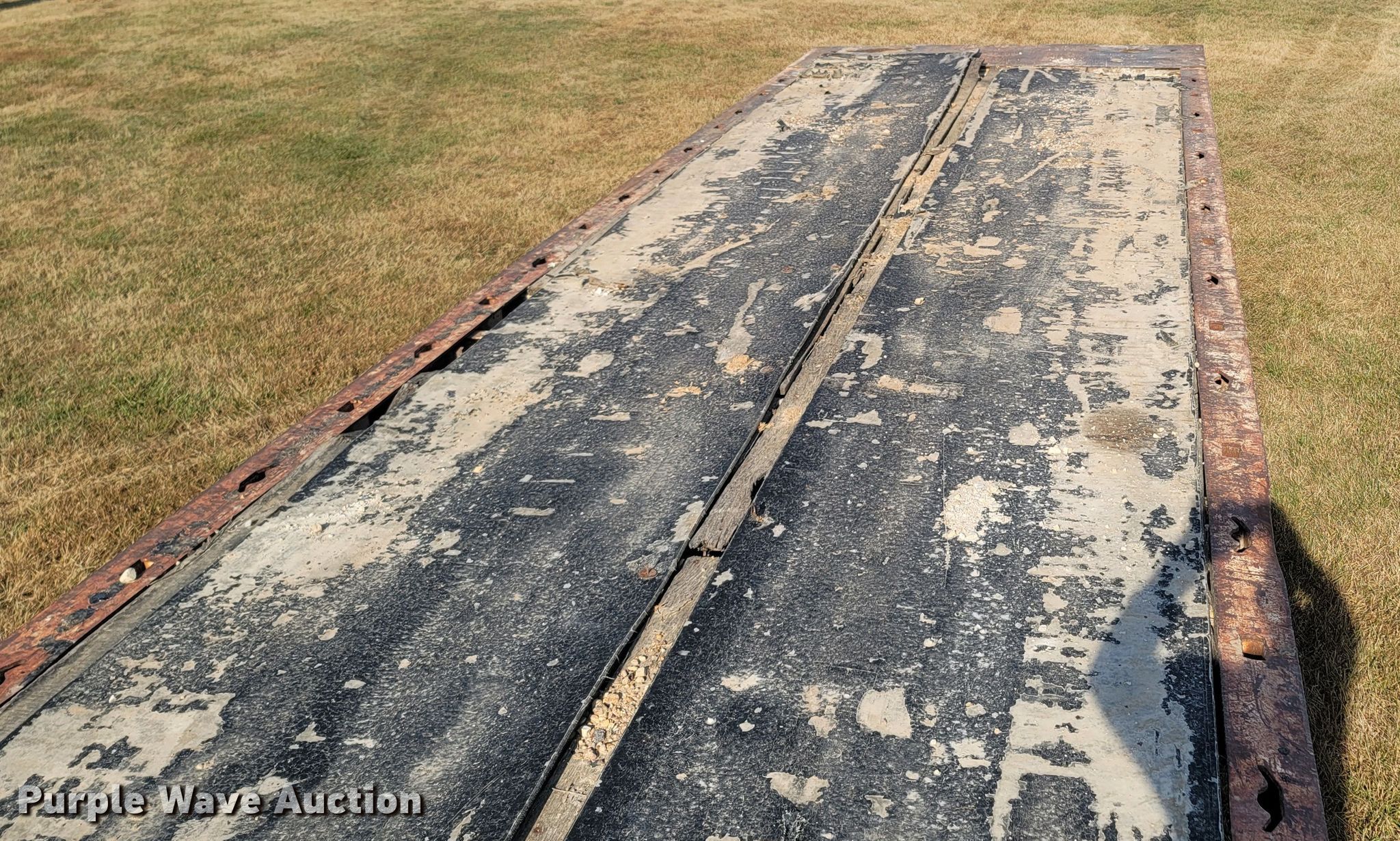 1998 Landoll Hauloll tilt deck equipment trailer. VIN: 1LH660UH8W1008811. Dimensions Overall: 50' L x 102" W, Deck: 40' L x 102" W, Top deck length: 10', Deck height: 36". Features Deck type: Wood, Winch Braden, Hydraulic controls: Manual. Chassis Landing gear: Dual, Suspension: Air, Brakes: Air, Axles: Tandem. Tires Size: 235/75R17.5. Missouri title. Title has a lien that will be released following the close of the auction. Title distribution may be delayed up to 30 days from verification of funds. Patrick B Wyatt Construction. St. James, MO 65559