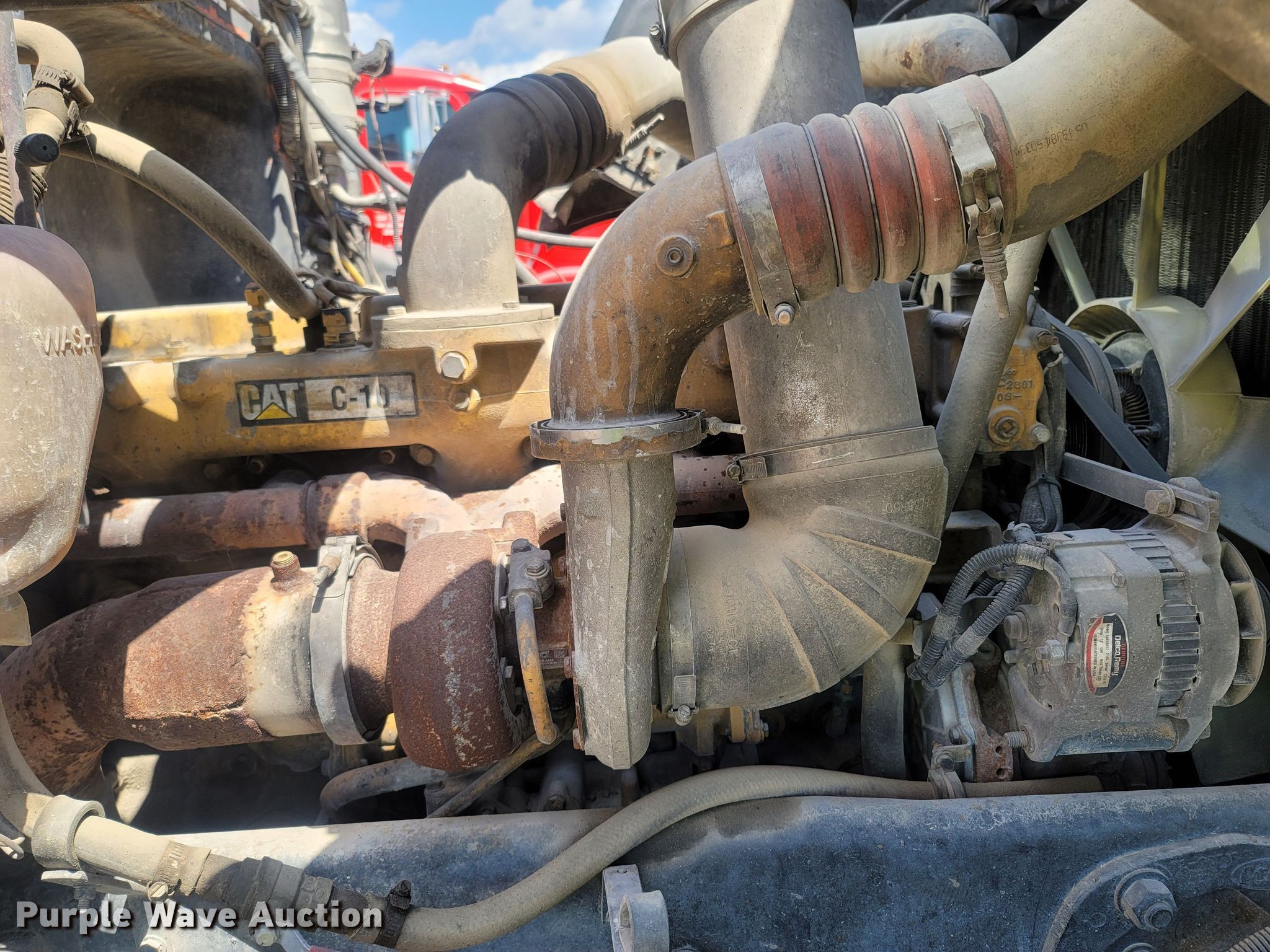 1997 Peterbilt 357 ready mix truck. Hours: 8,331 on meter, Miles: Unknown, VIN: 1NPALT0X6VD438413. Engine Caterpillar C10, Displacement: 10.3L, Cylinders: 6, Fuel type: Diesel. Transmission Eaton Fuller, Manual. Chassis Double frame, Axles: Tandem, Differential lock: Full, Suspension: Walking beam, Brakes: Hydraulic, GVWR: 64,000 lbs FAWR: 18,000 lbs, IAWR: 23,000 lbs, RAWR: 23,000 lbs. Interior AC, Heat. Features Mixer McNeilus, Capacity: 10.5 cu.yd., Discharge: Rear, In-cab controls, Rear drum controls, Chute Extensions: 3, Chute type: Steel.. Tires Front: 425/65R22.5, Rear: 11R22.5. Notes Windshield chipped or cracked, Non-operational AC, Non-operational hood, spring and cable need replaced. Missouri title. Bolivar Ready Mix. 1601 S Killingsworth Ave. Bolivar, MO 65613