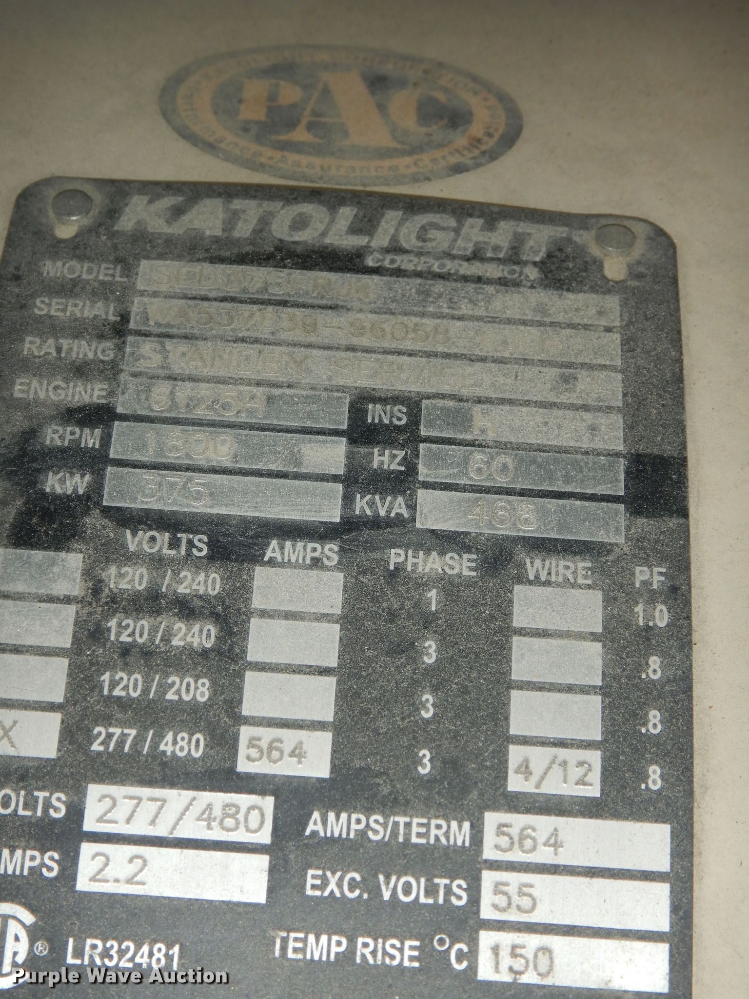 Purple Wave is selling a used Generator Set in Kansas. This item is a 2004 Katolight SP Series generator with the following: Serial: WA5378390104