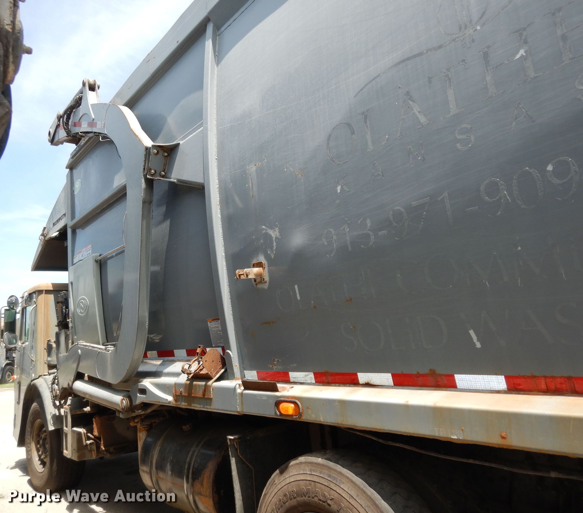 Purple Wave is selling a used Refuse Truck in Kansas. This item is a 2015 Mack LEU633 Mammoth refuse truck with the following: Hours: 2,526 on meter, Miles: Unknown, VIN: 1M2AU14C0FM002329