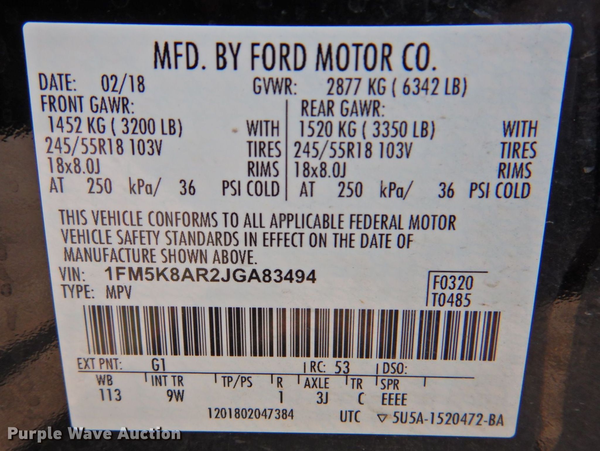 2018 Ford Explorer Police Interceptor SUV. Miles: 81,100 on odometer, VIN: 1FM5K8AR2JGA83494. Engine Displacement: 3.7L V6 DOHC, Cylinders: 6, Fuel type: Gas. Transmission Automatic, All wheel drive. Interior AC, Heat, Seat: Power driver, Power windows, Power locks, Cruise control, Backup camera. Tires Size: 245/55R18. Kansas title. Edwardsville Police Department. 690 S 4th St. Kansas City, KS 66111