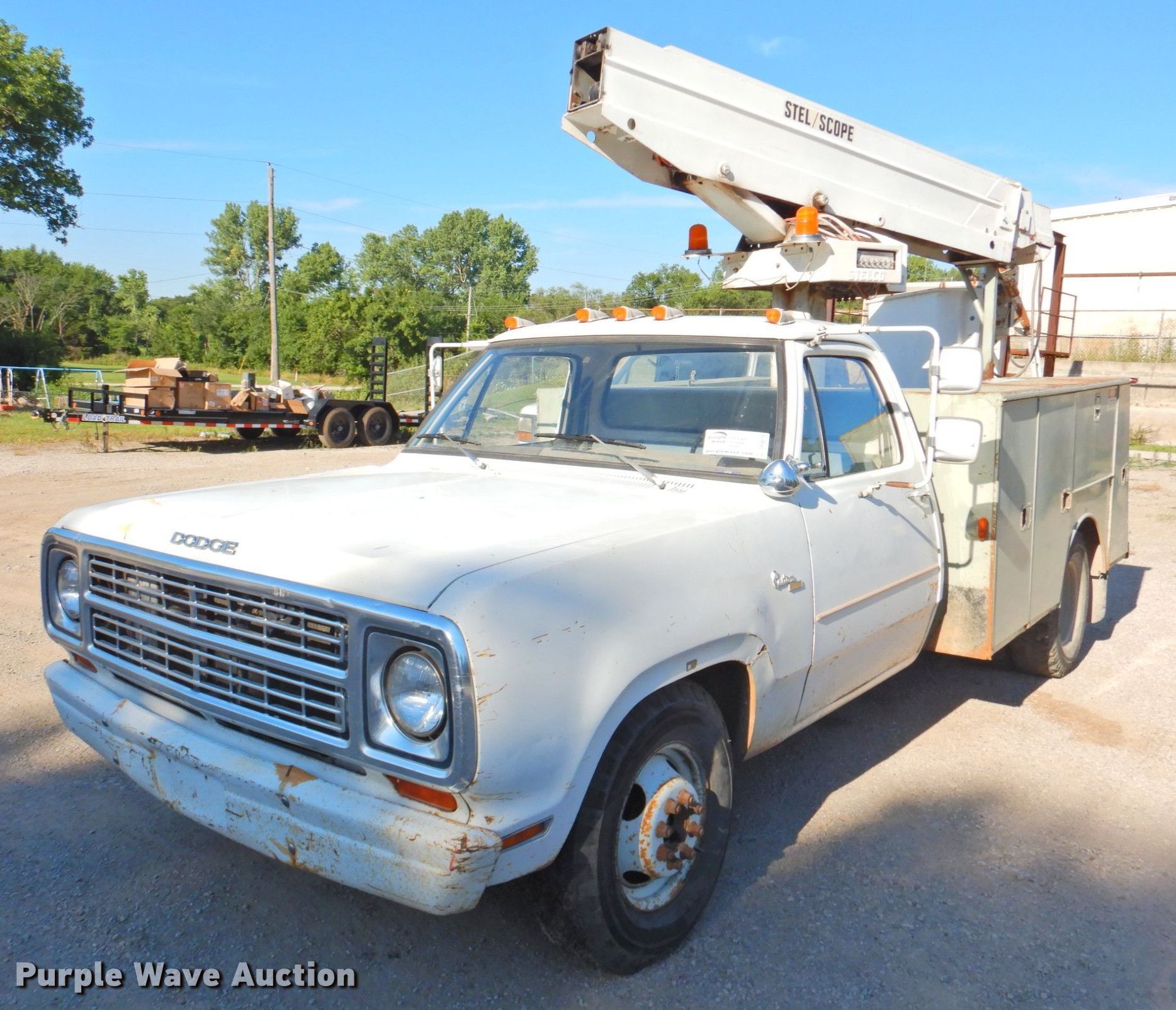 Purple Wave is selling a used Bucket Truck in Kansas. This item is a 1979 Dodge D40 bucket truck with the following: Miles: 61,989 on odometer, VIN: D41CT9S226885